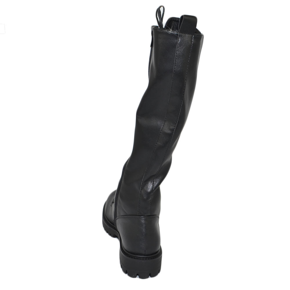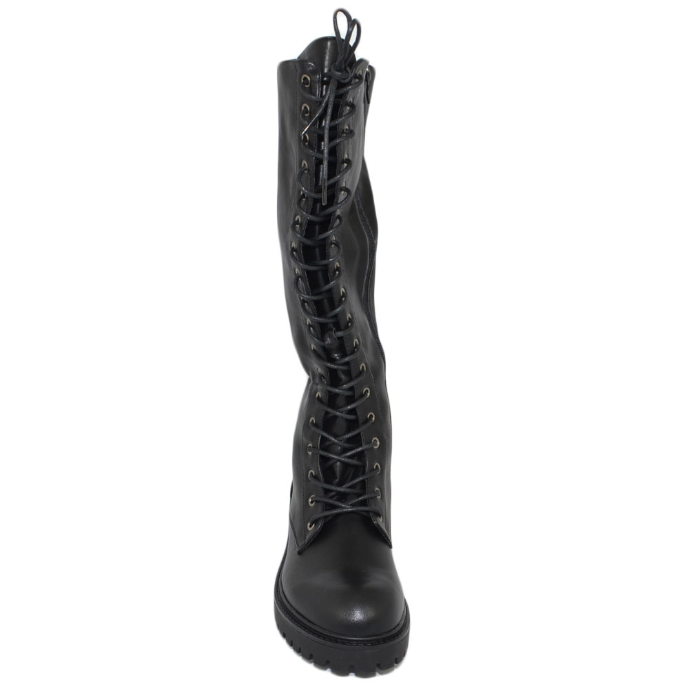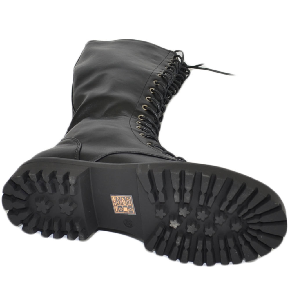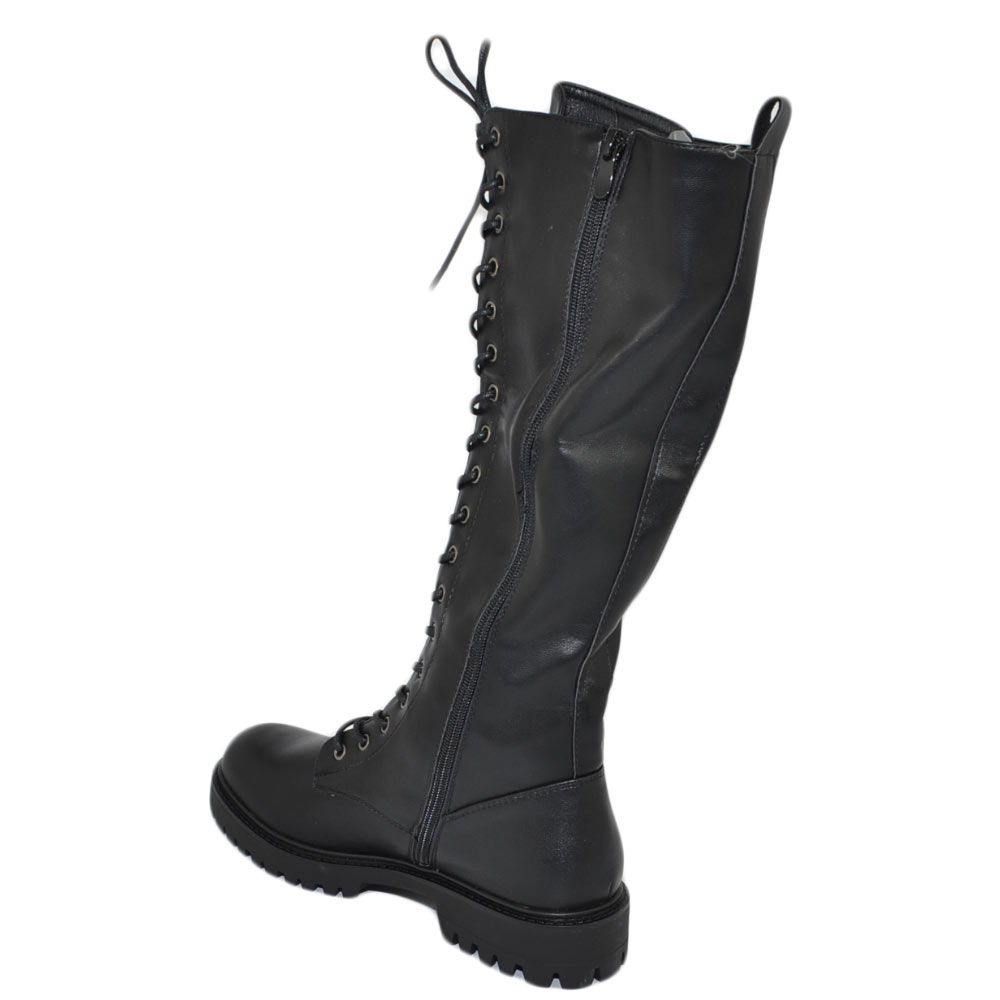Stivali anfibi donna alto al ginocchiocon zip fondo suola carrarmato comodo zeppa lacci lunghi moda aderente elastico