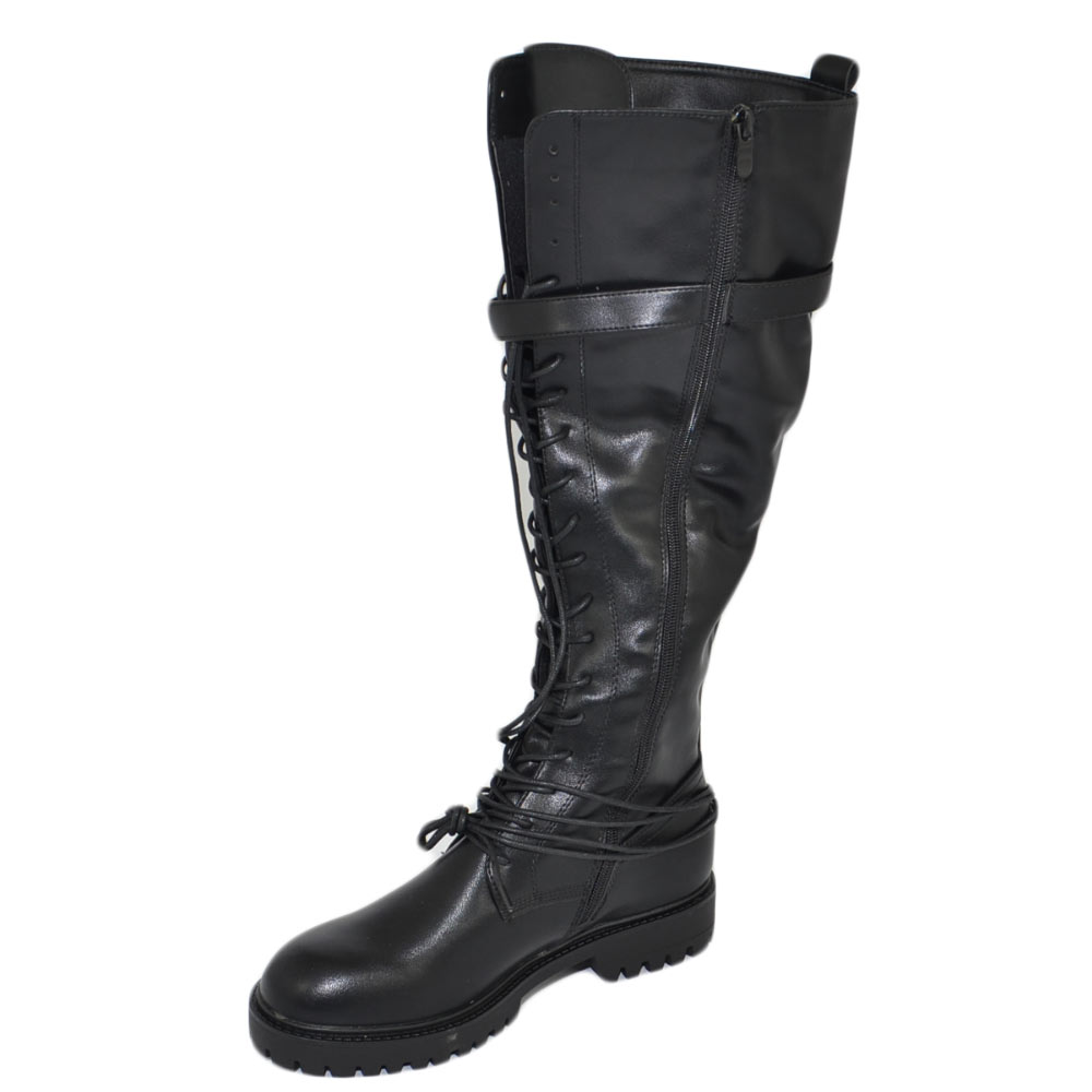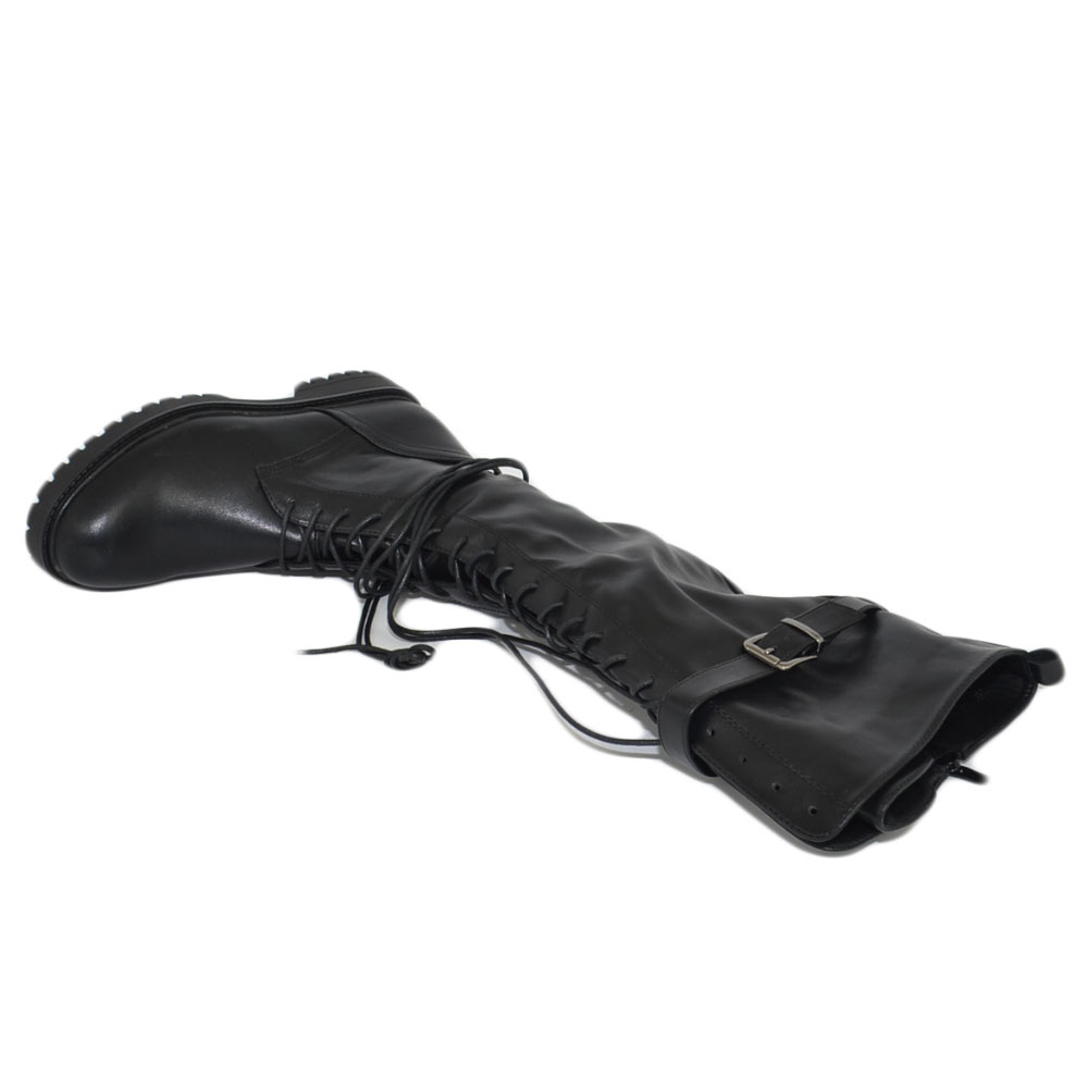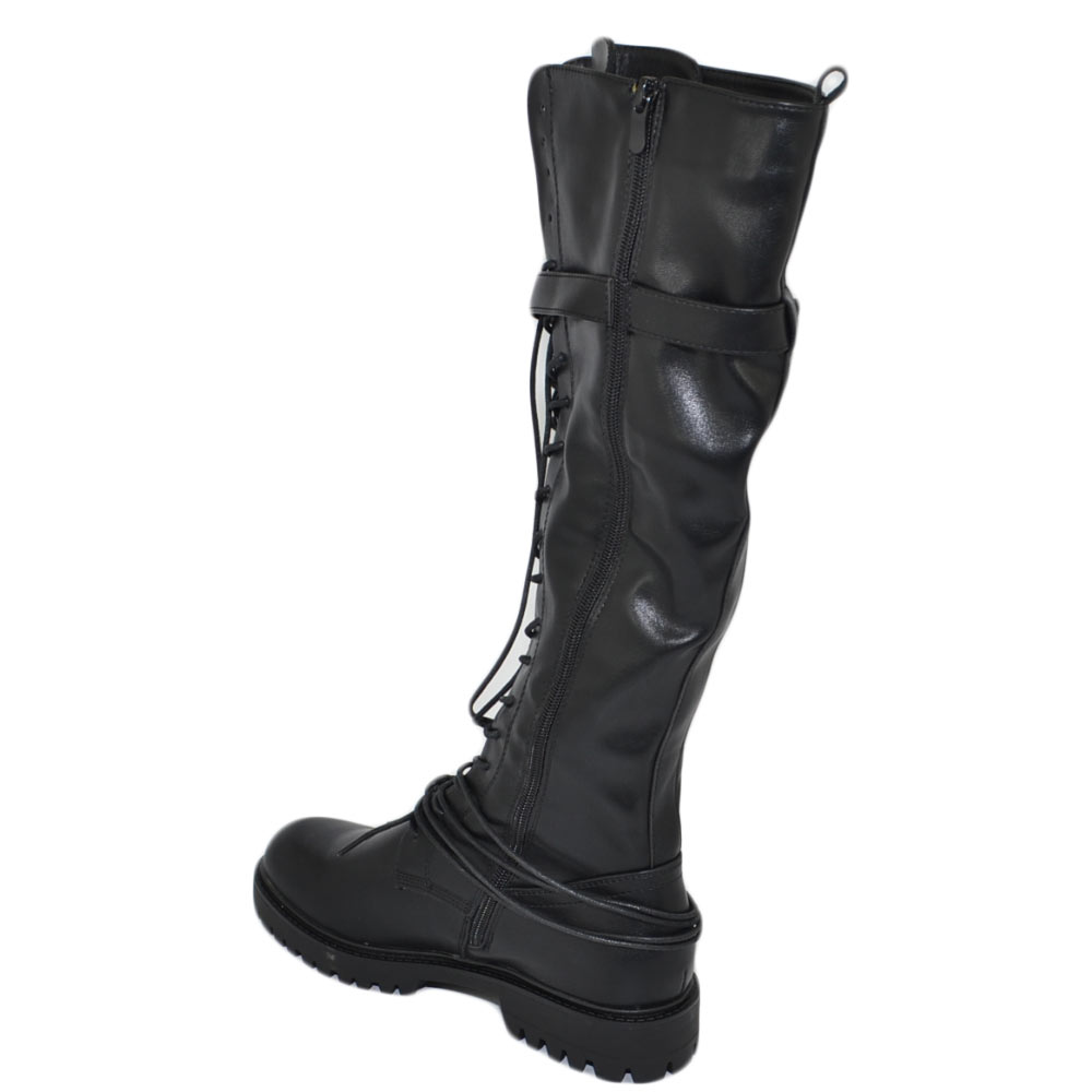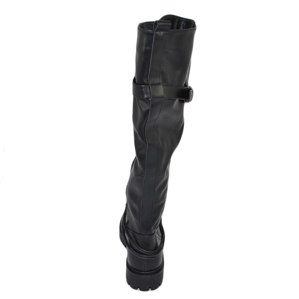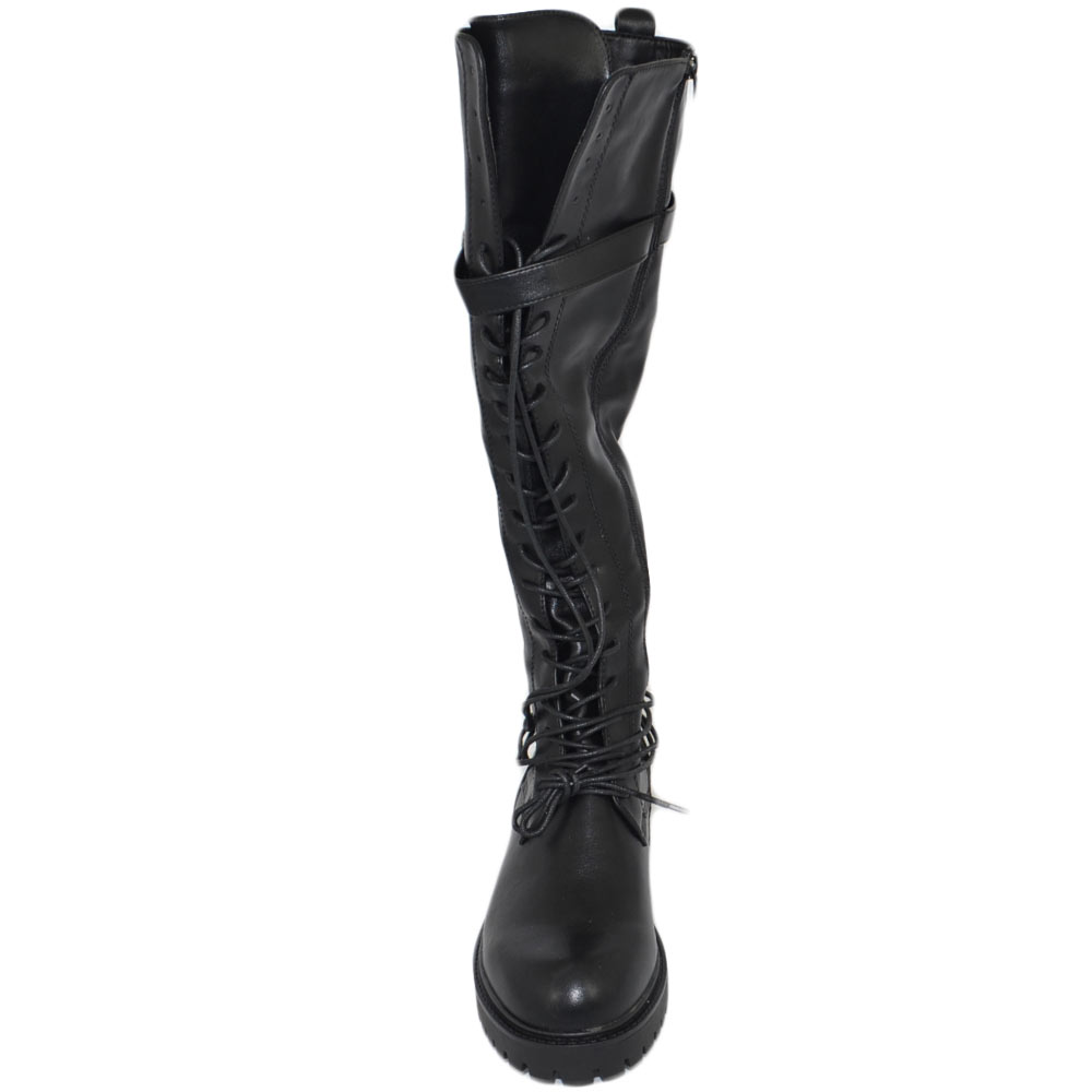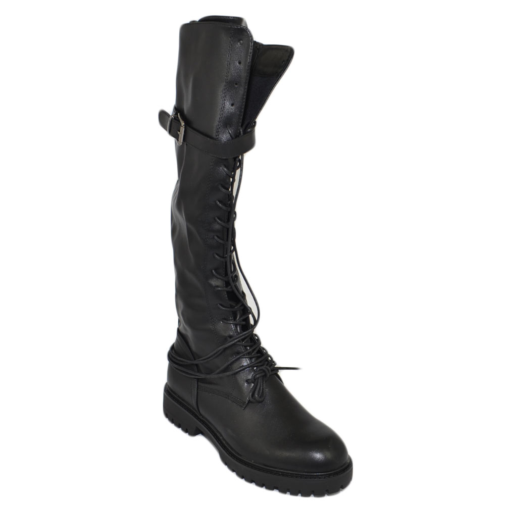 Stivali anfibi donna alto ginocchio fibbia zip fondo suola carrarmato comodo zeppa lacci lunghi moda aderente elastico