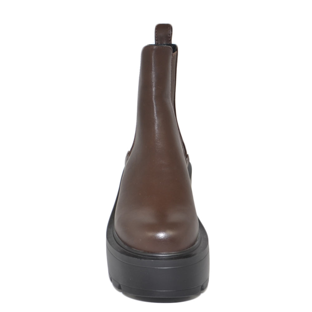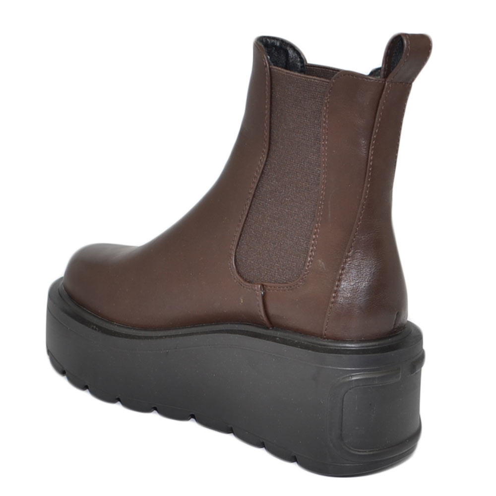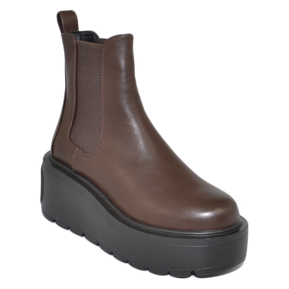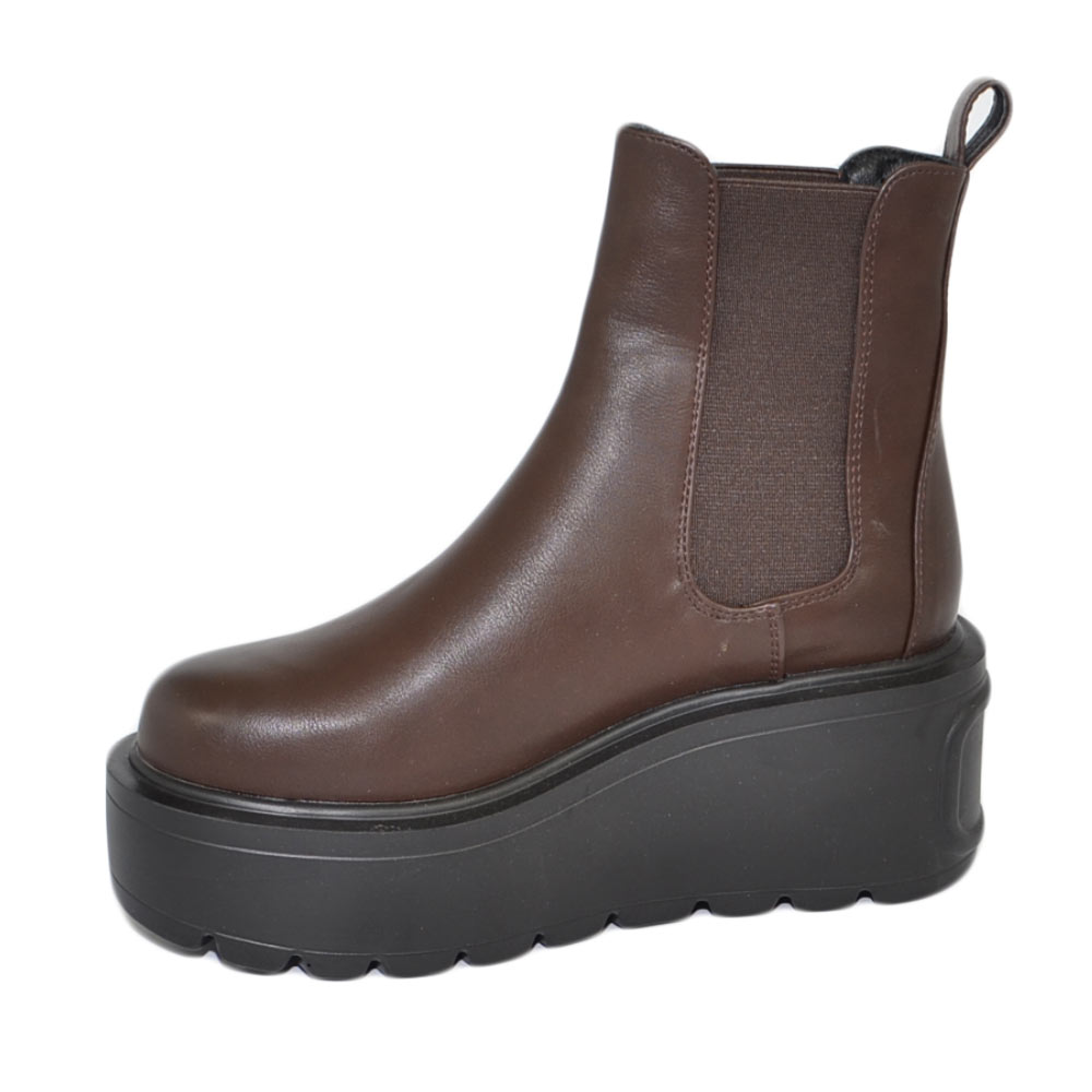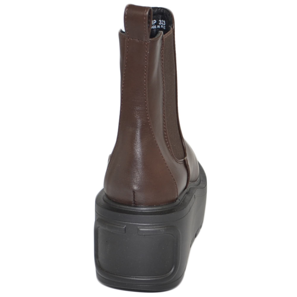 Stivaletto donna marrone chelsea beatles combat zeppa alta pelle elastico alla caviglia moda