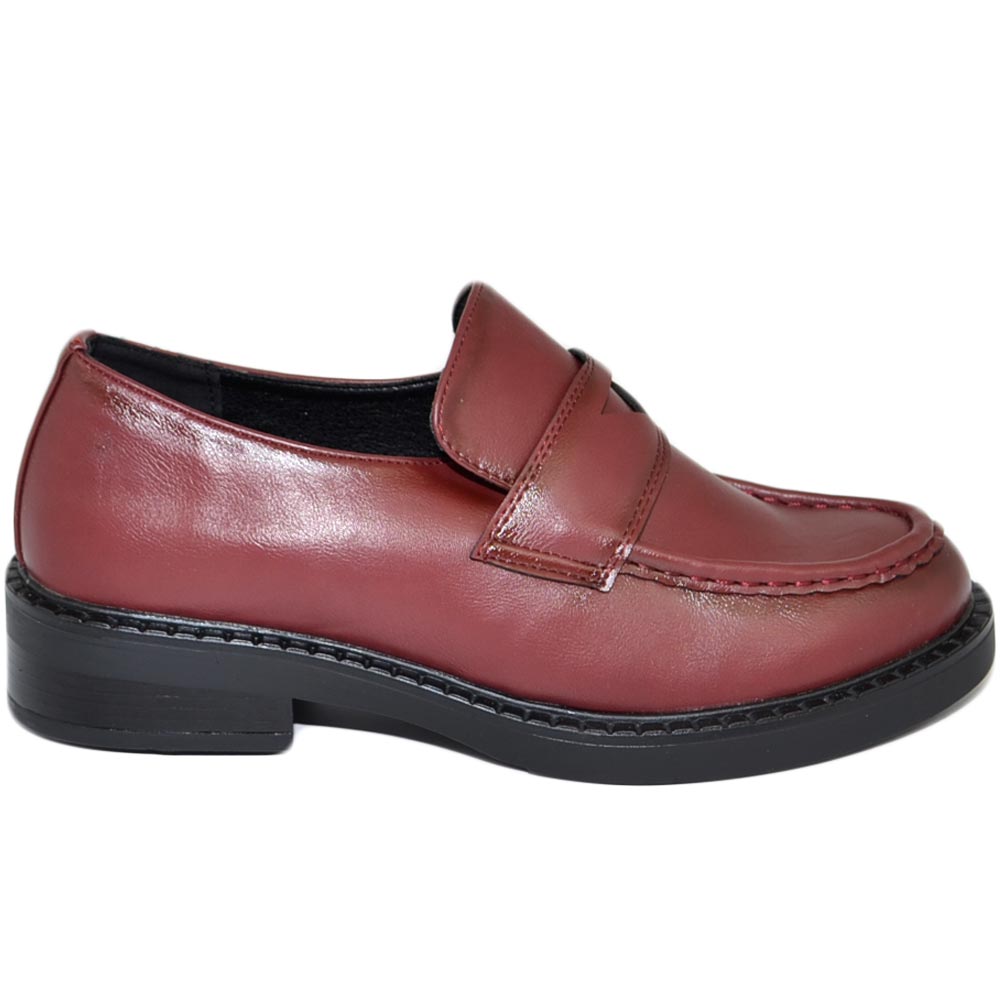 Mocassini donna college bordeaux marsala bendina suola gomma light moda tendenza