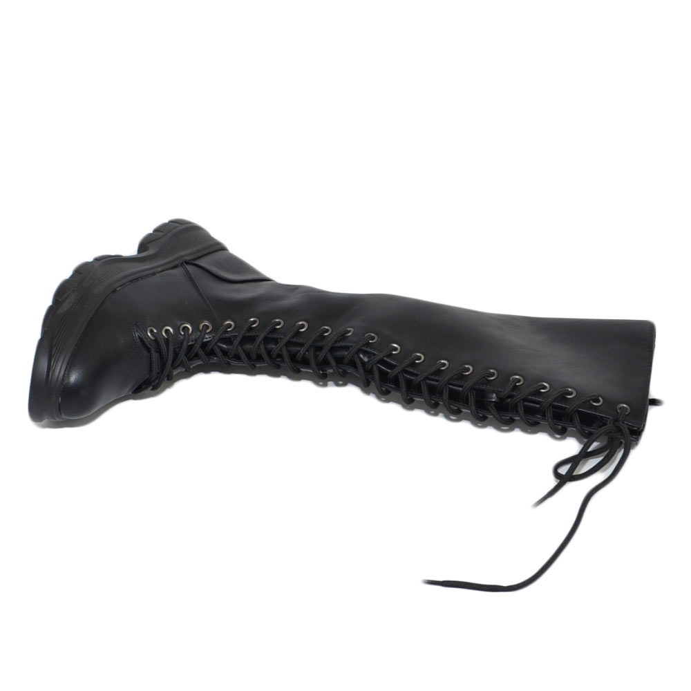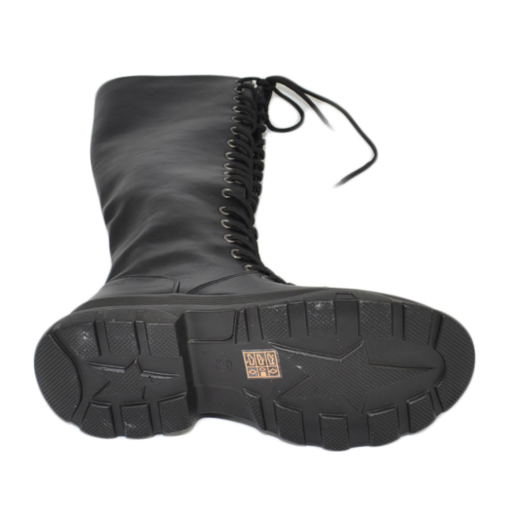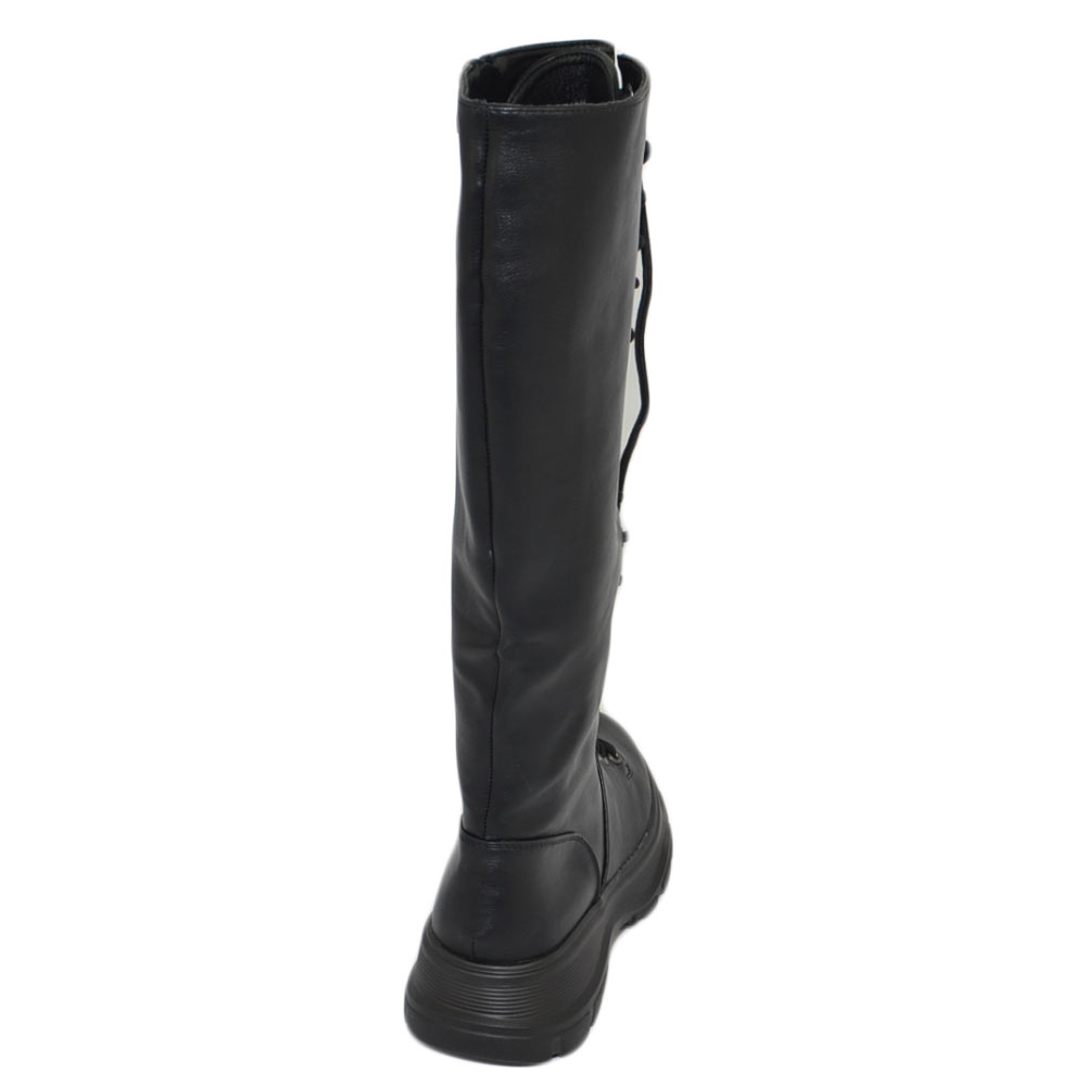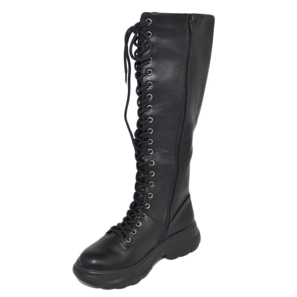 Stivali anfibi donna alto al ginocchio nero zip suola carrarmato comodo zeppa lacci moda aderente regolabile