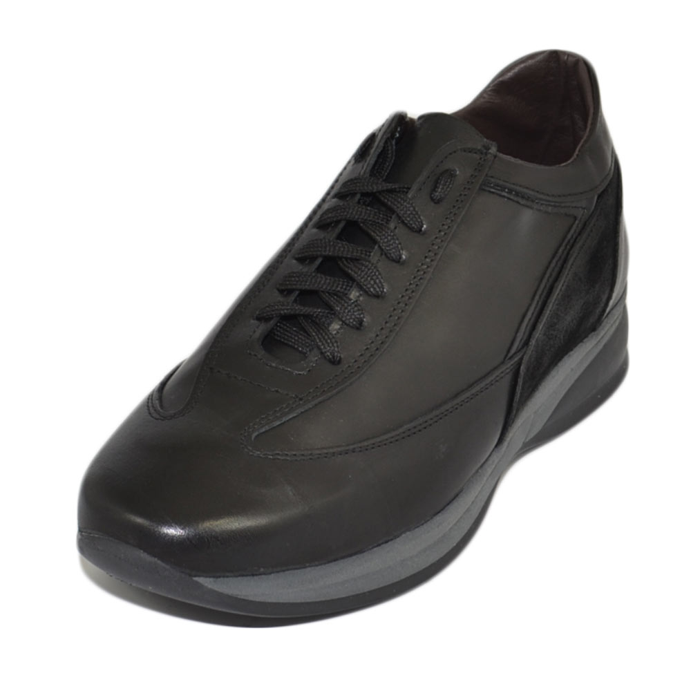 Scarpe uomo calzature linea comfort eleganti nero made in Italy in vera pelle nappa camoscio gomma anatomica lacci