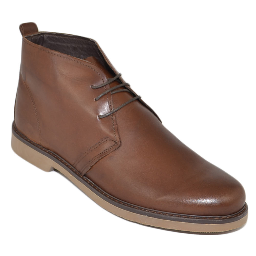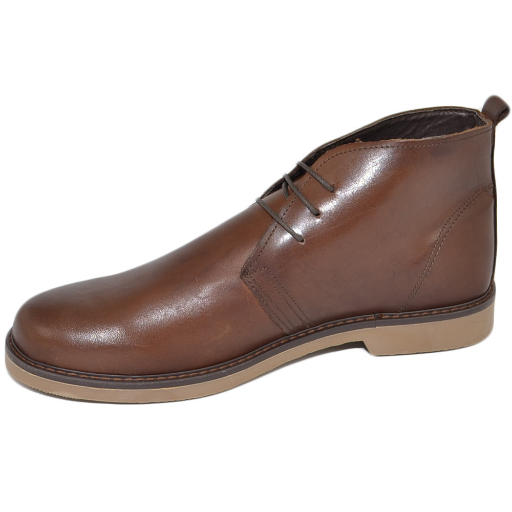 Polacchino uomo invernale in vera pelle morbida marrone comfort con gomma sottile da professionista handmade in italy