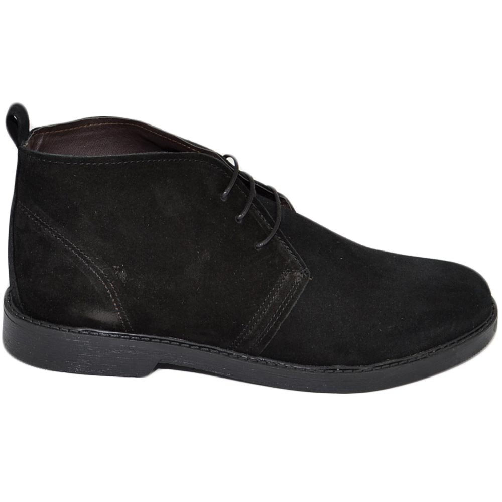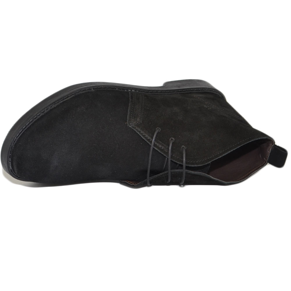Polacchino uomo invernale in vera pelle camoscio nero comfort con gomma sottile da professionista handmade in italy
