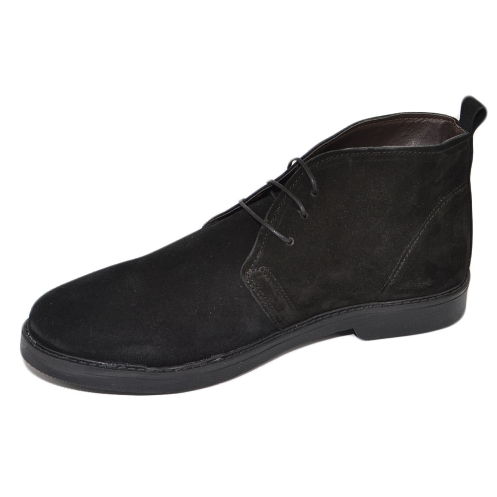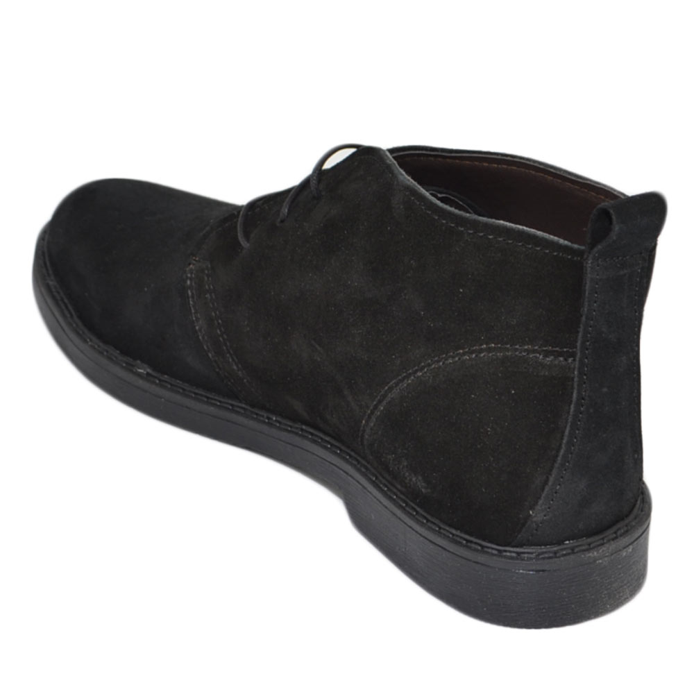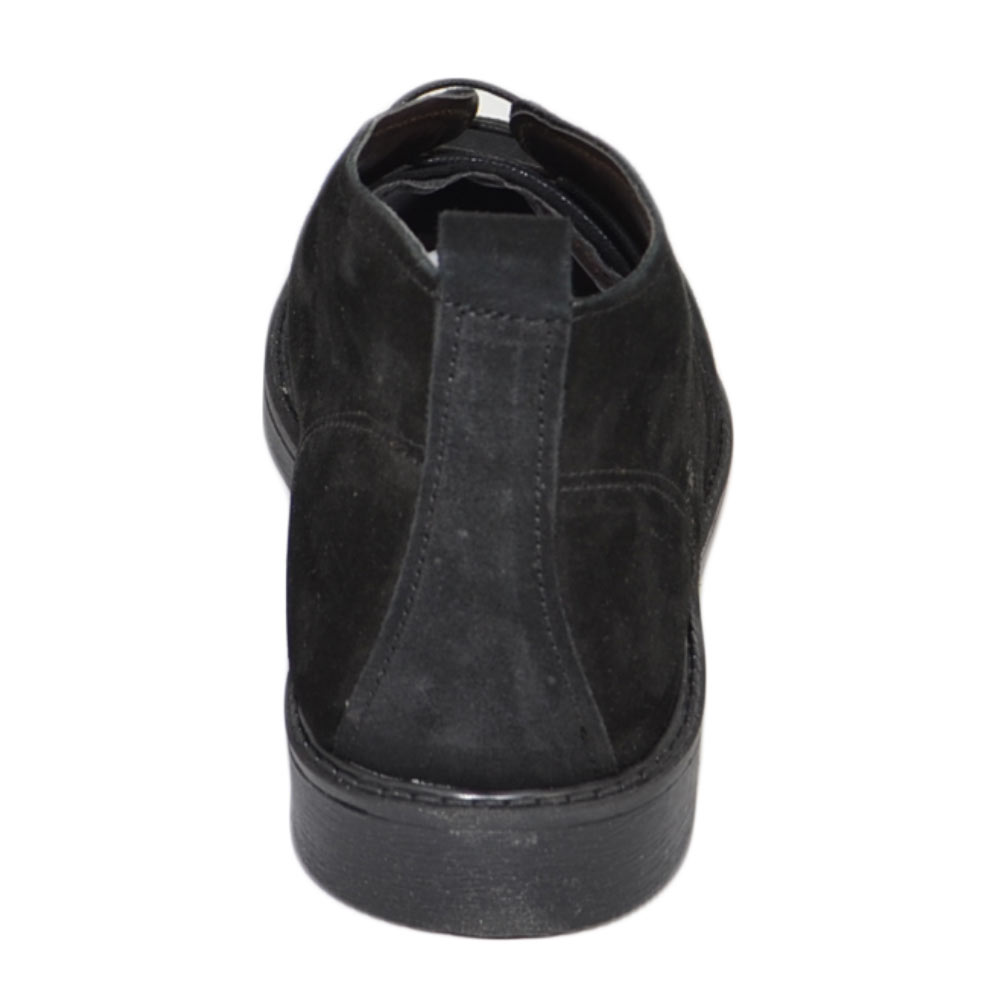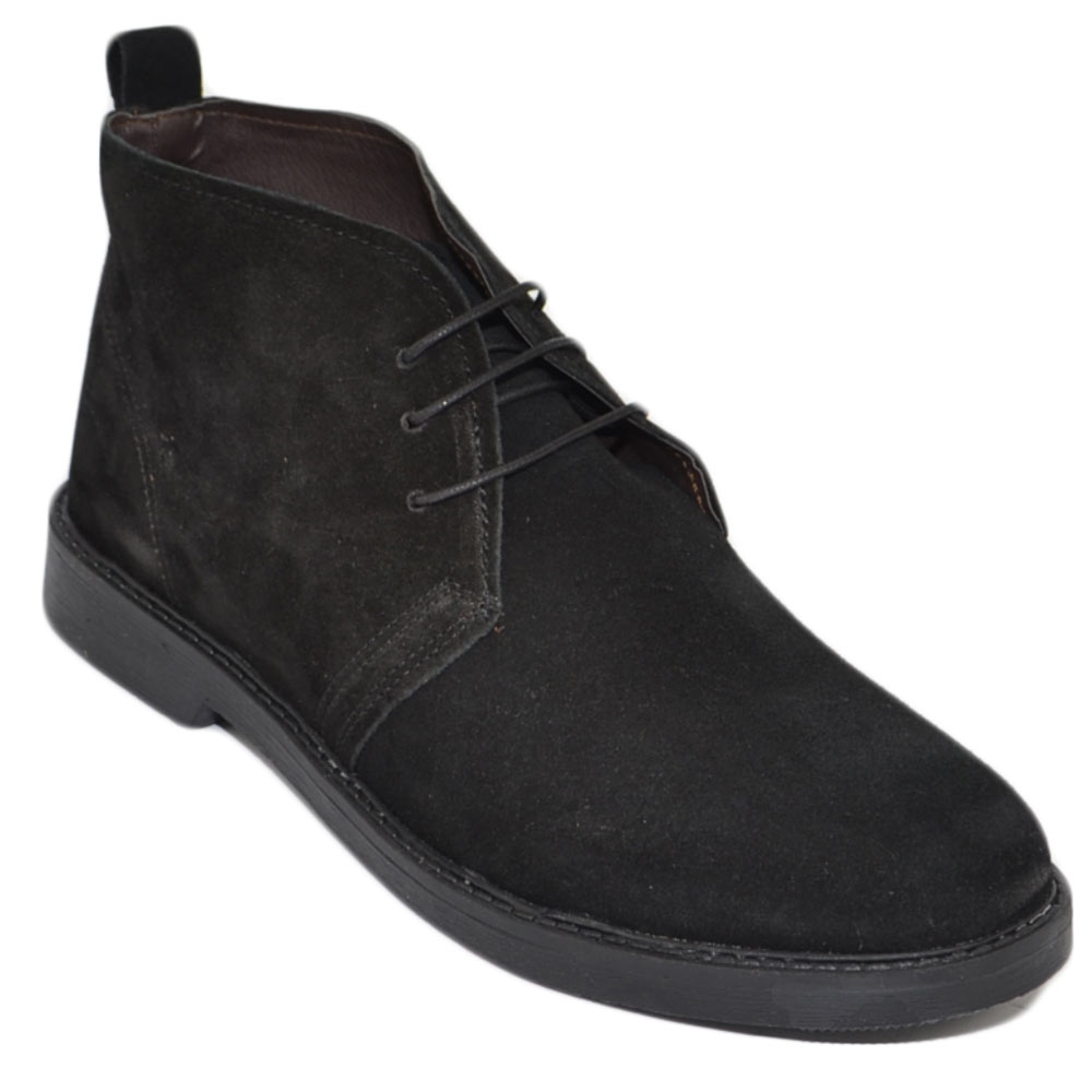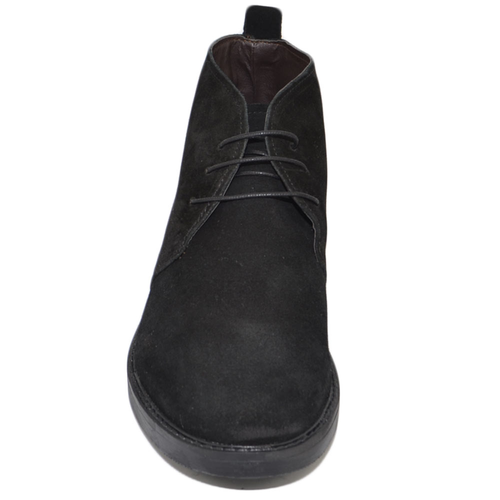 Polacchino uomo in vera pelle camoscio nero spazzolato alla caviglia comfort gomma sottile handmade in italy.