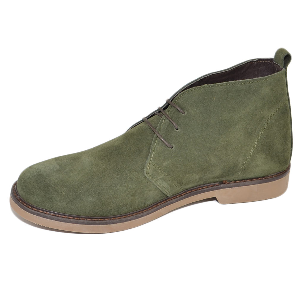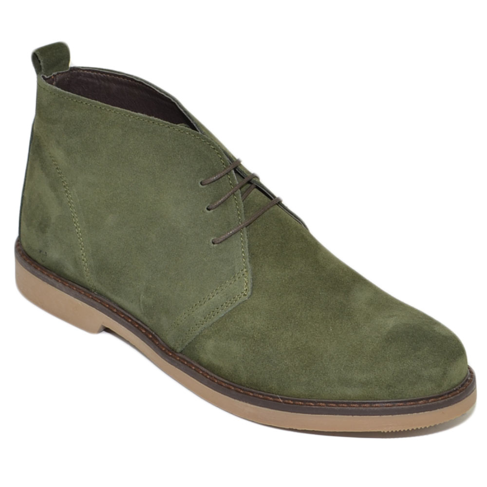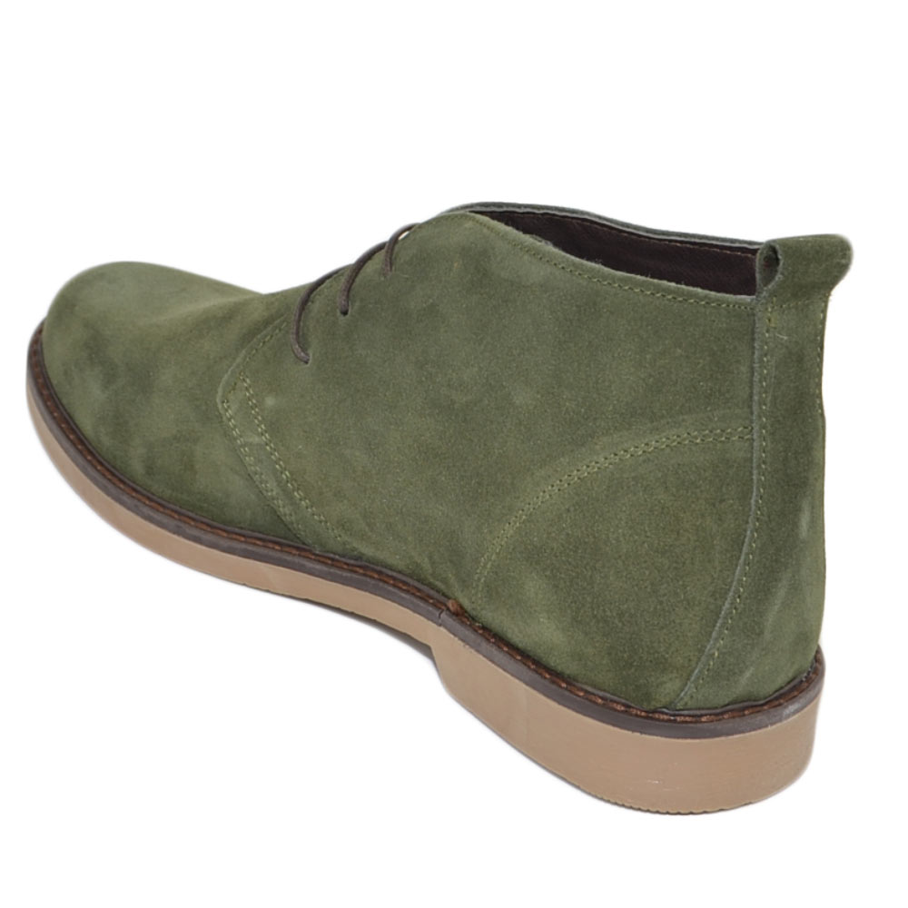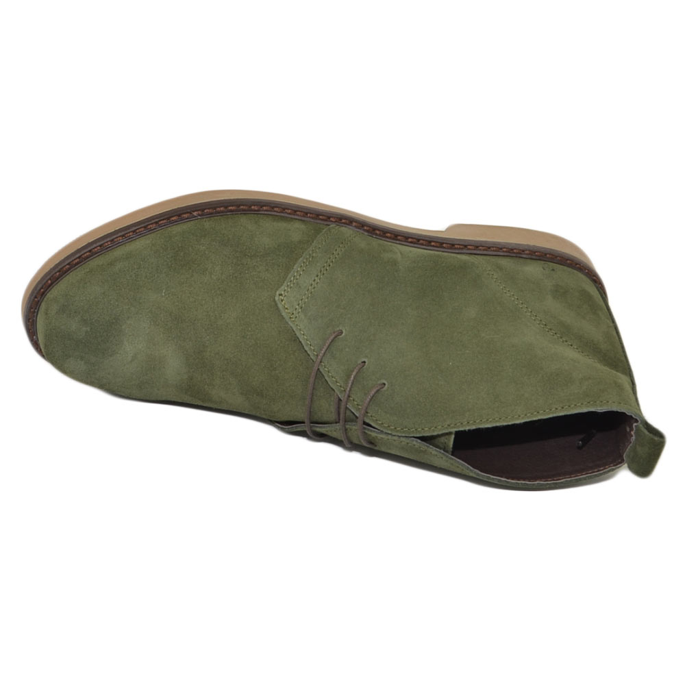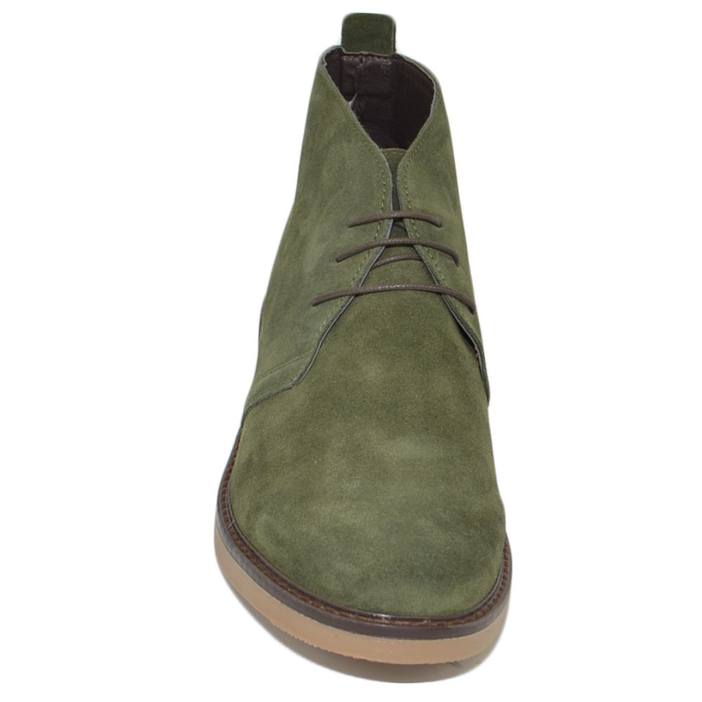 Polacchino uomo invernale in vera pelle camoscio verde comfort con gomma sottile da professionista handmade in italy