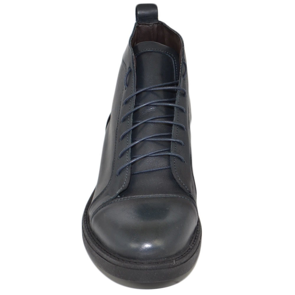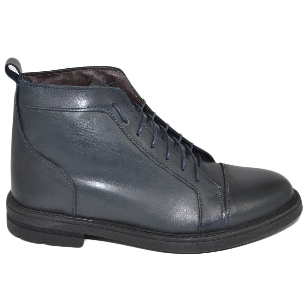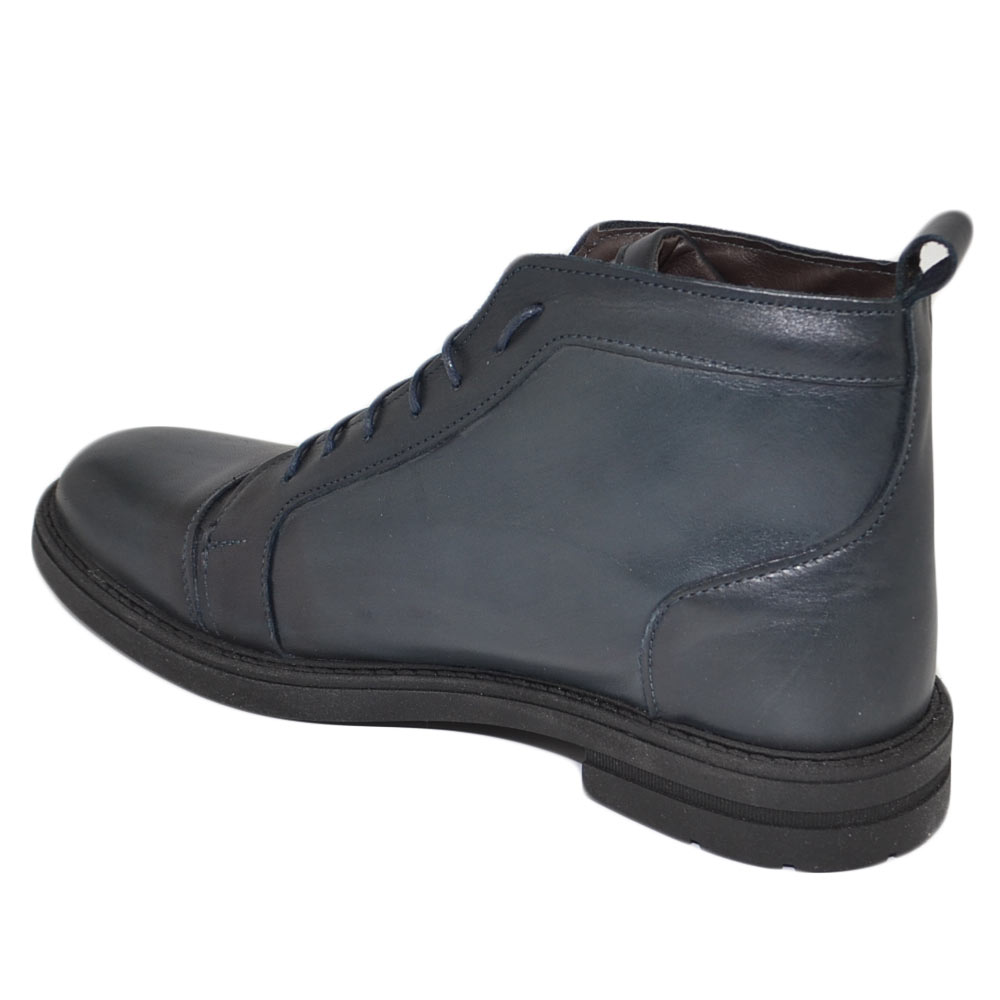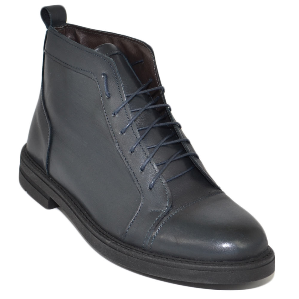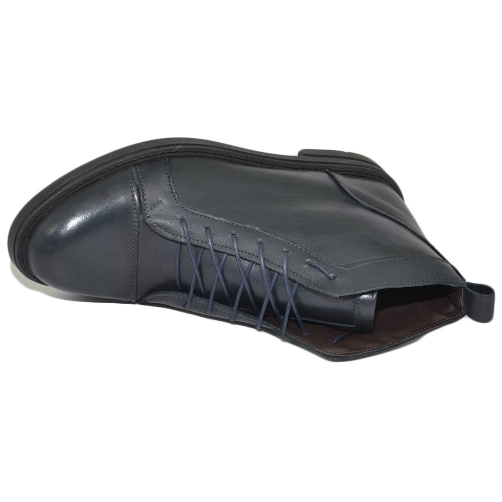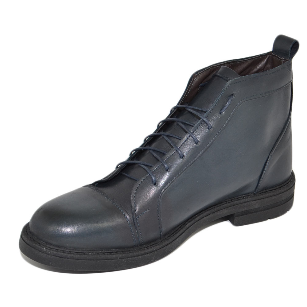 Stivaletto uomo anfibio Beatles lacci vera pelle nappa blu morbido fondo gomma light comfort moda basic made in Italy