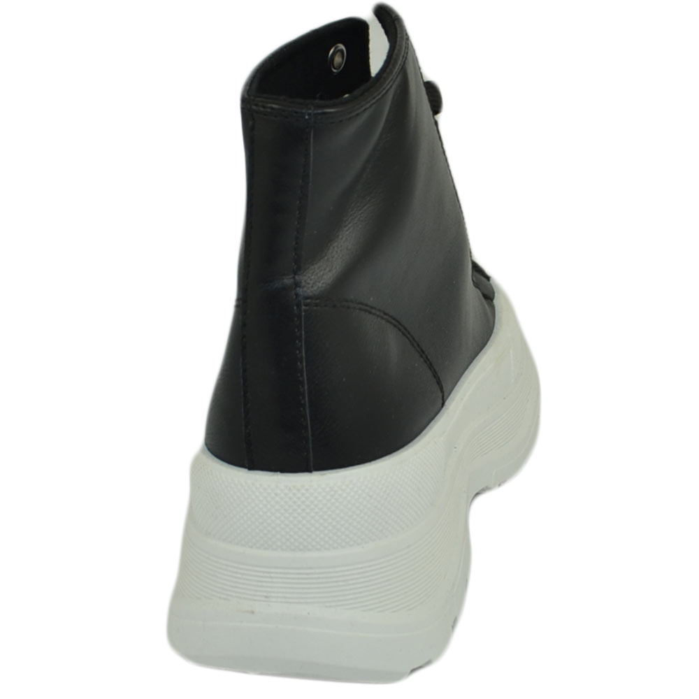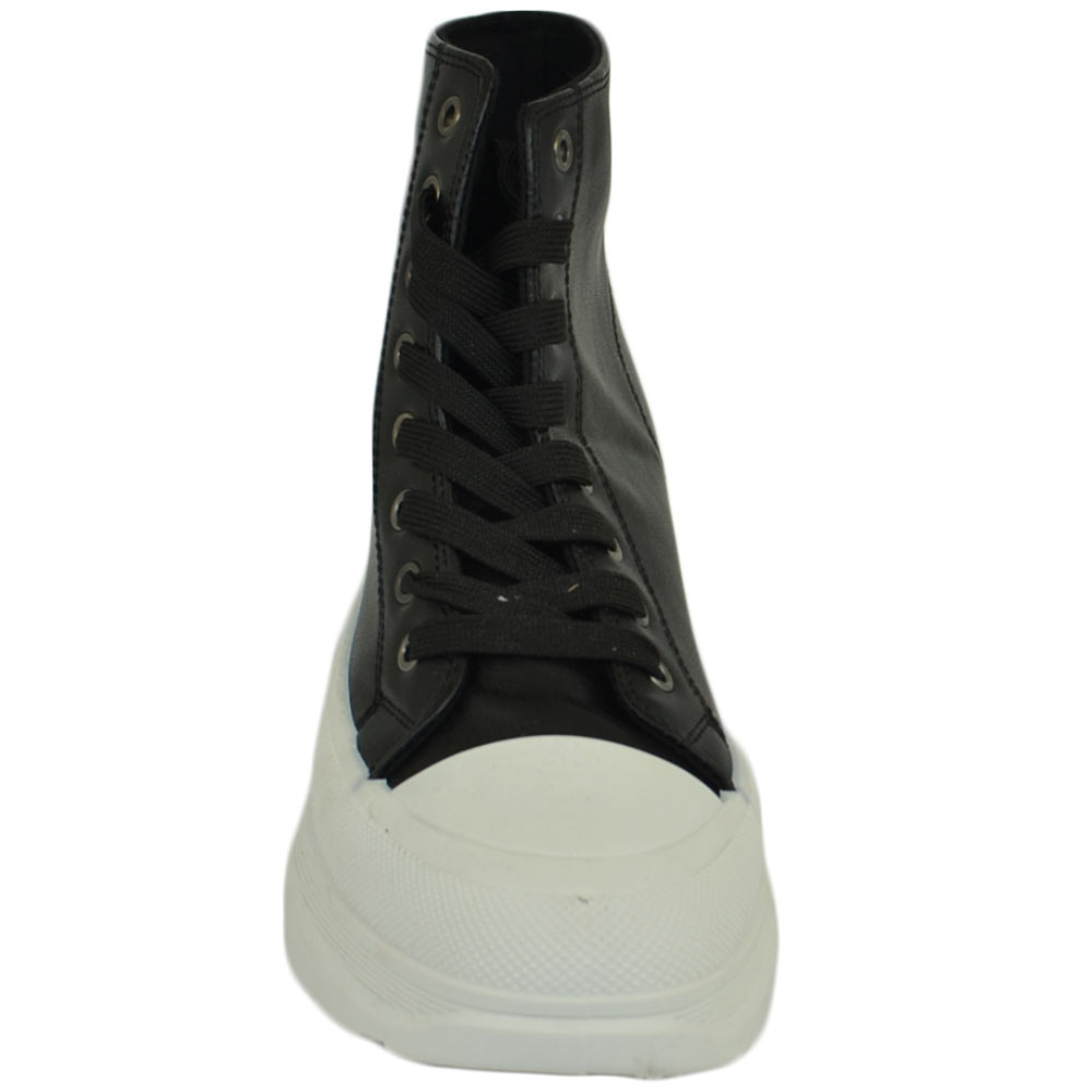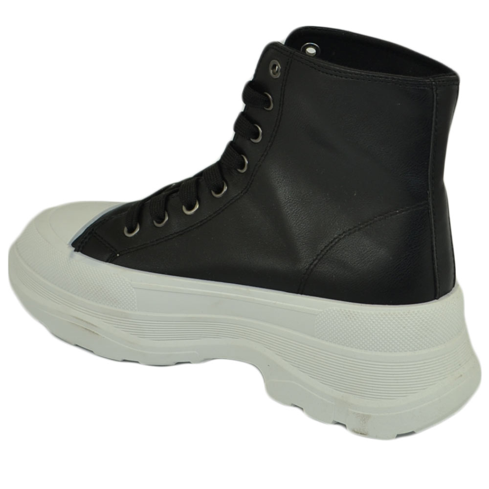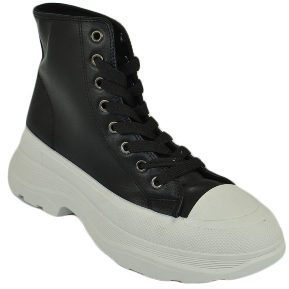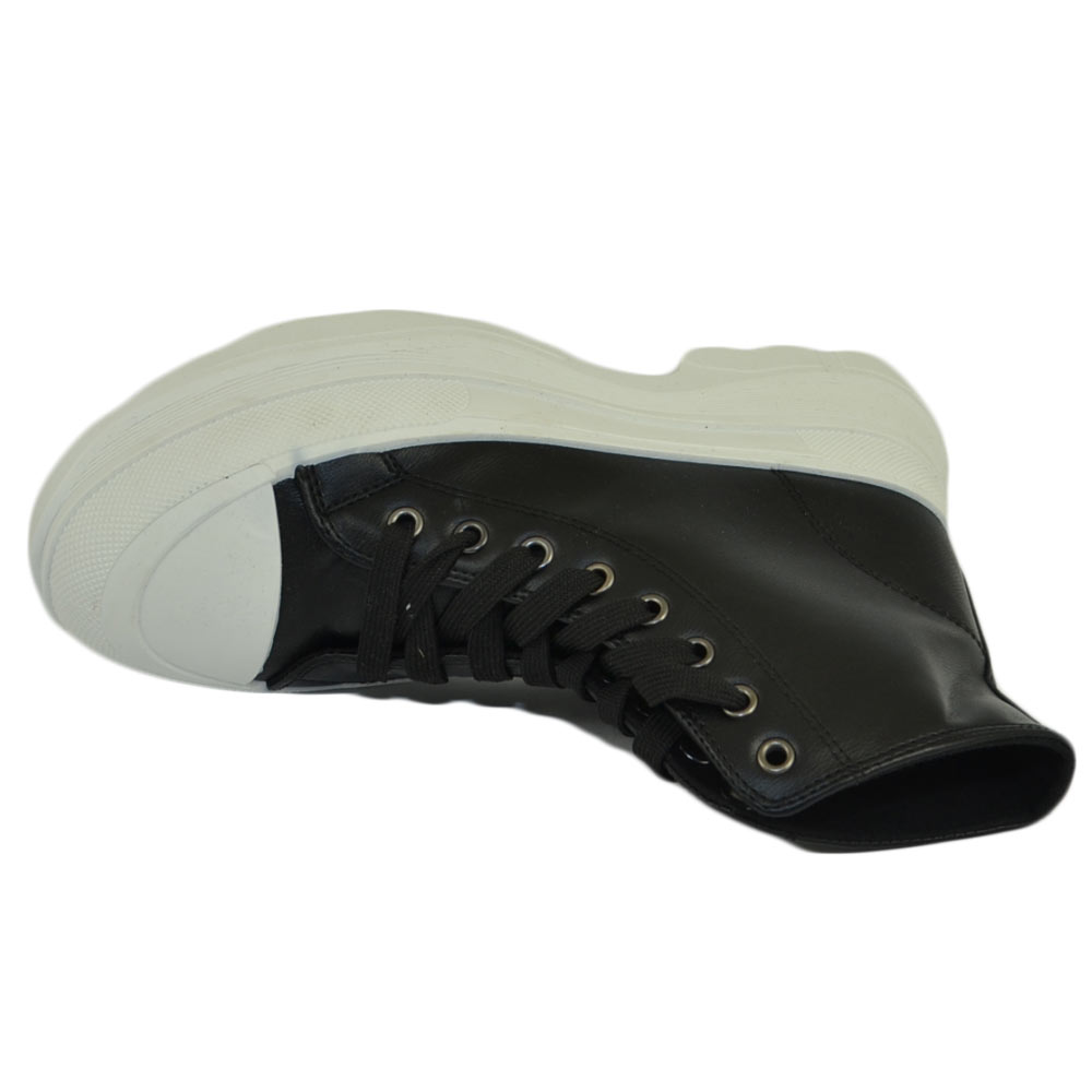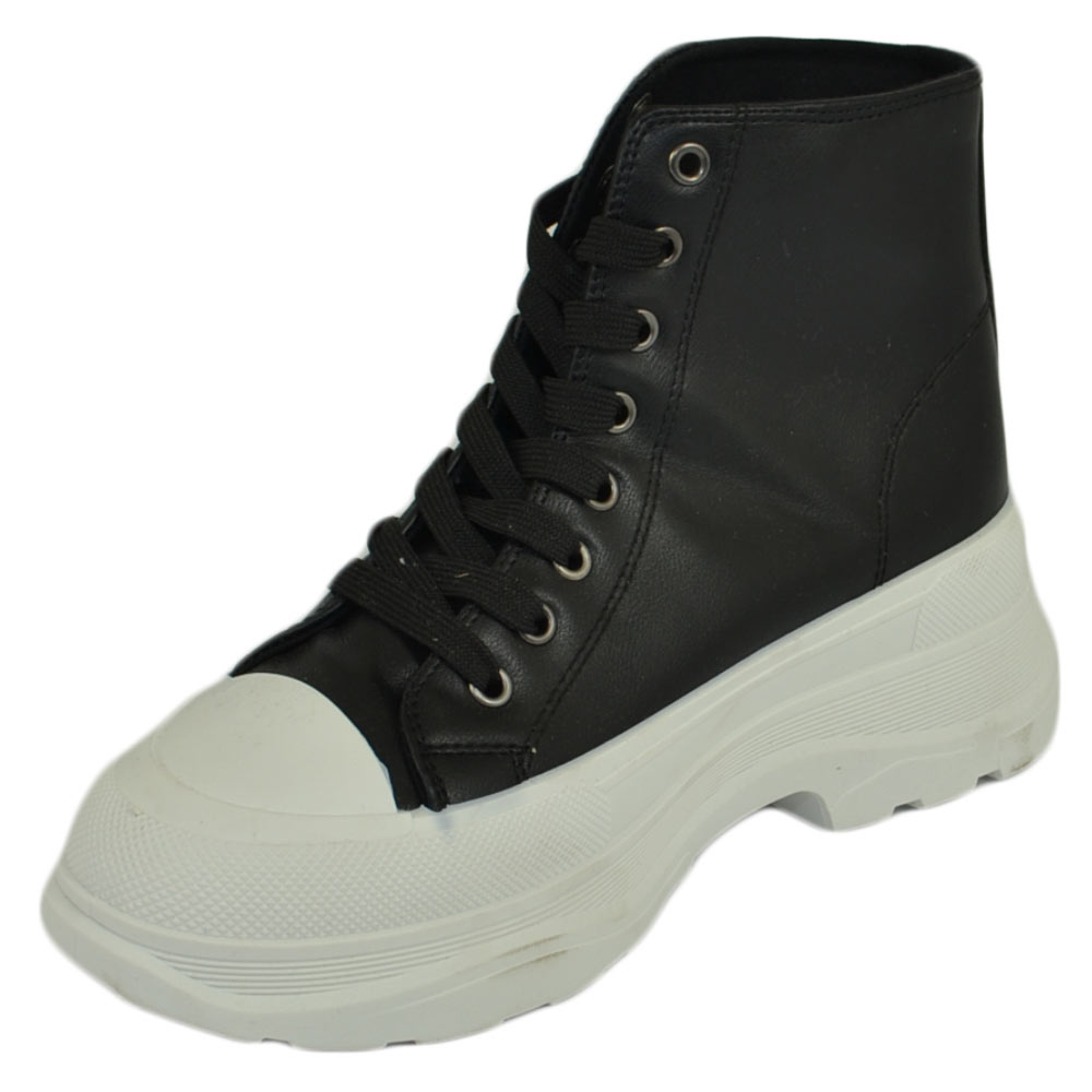 Sneakers alta donna stivaletto nero punta bianca gomma platform ondulata lacci moda tendenza street