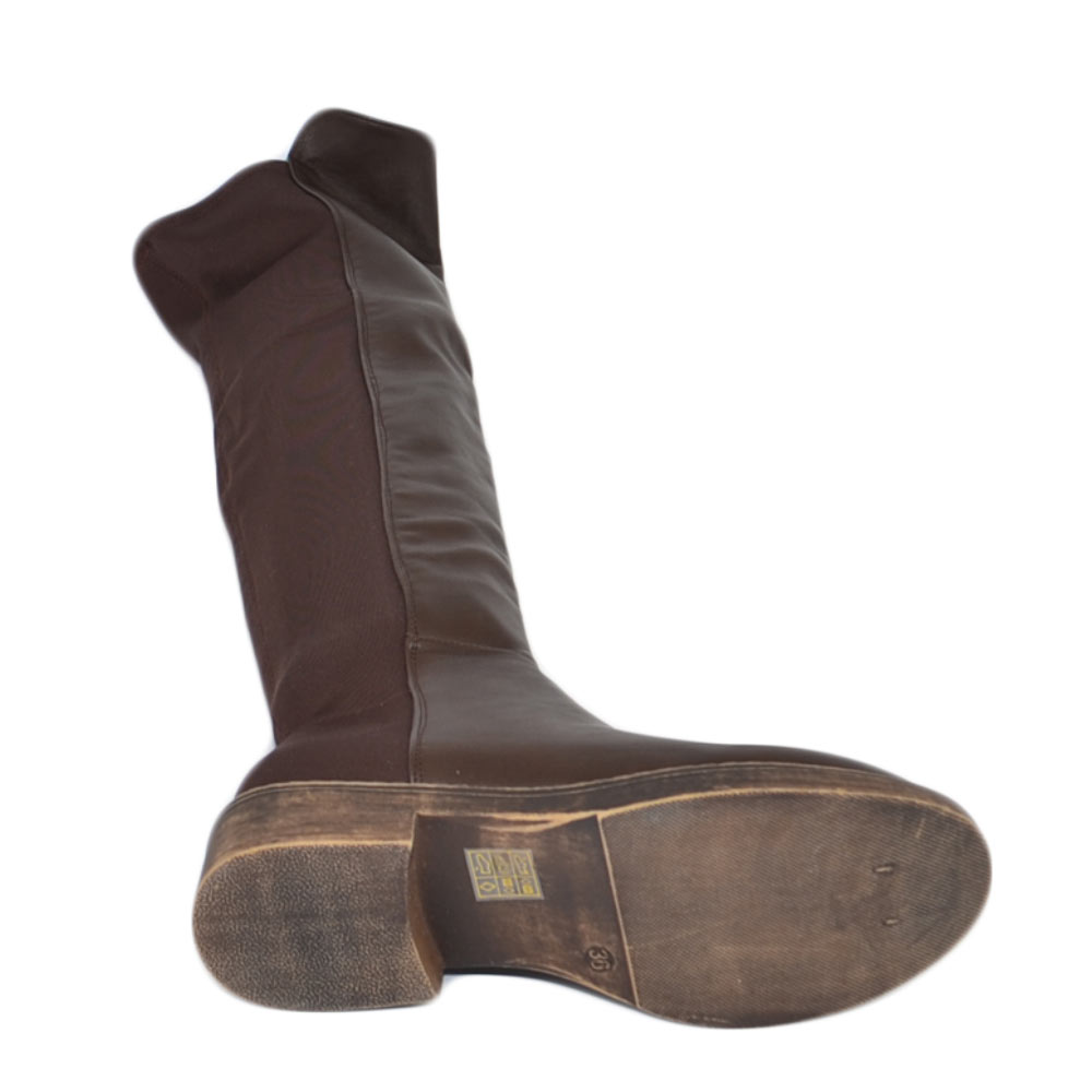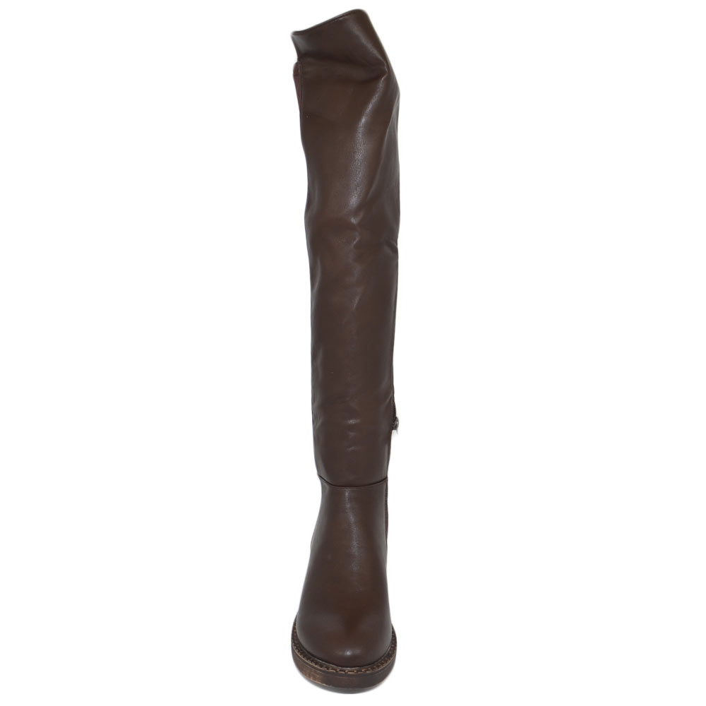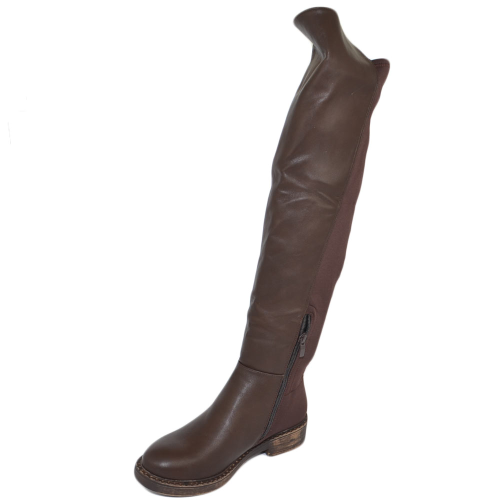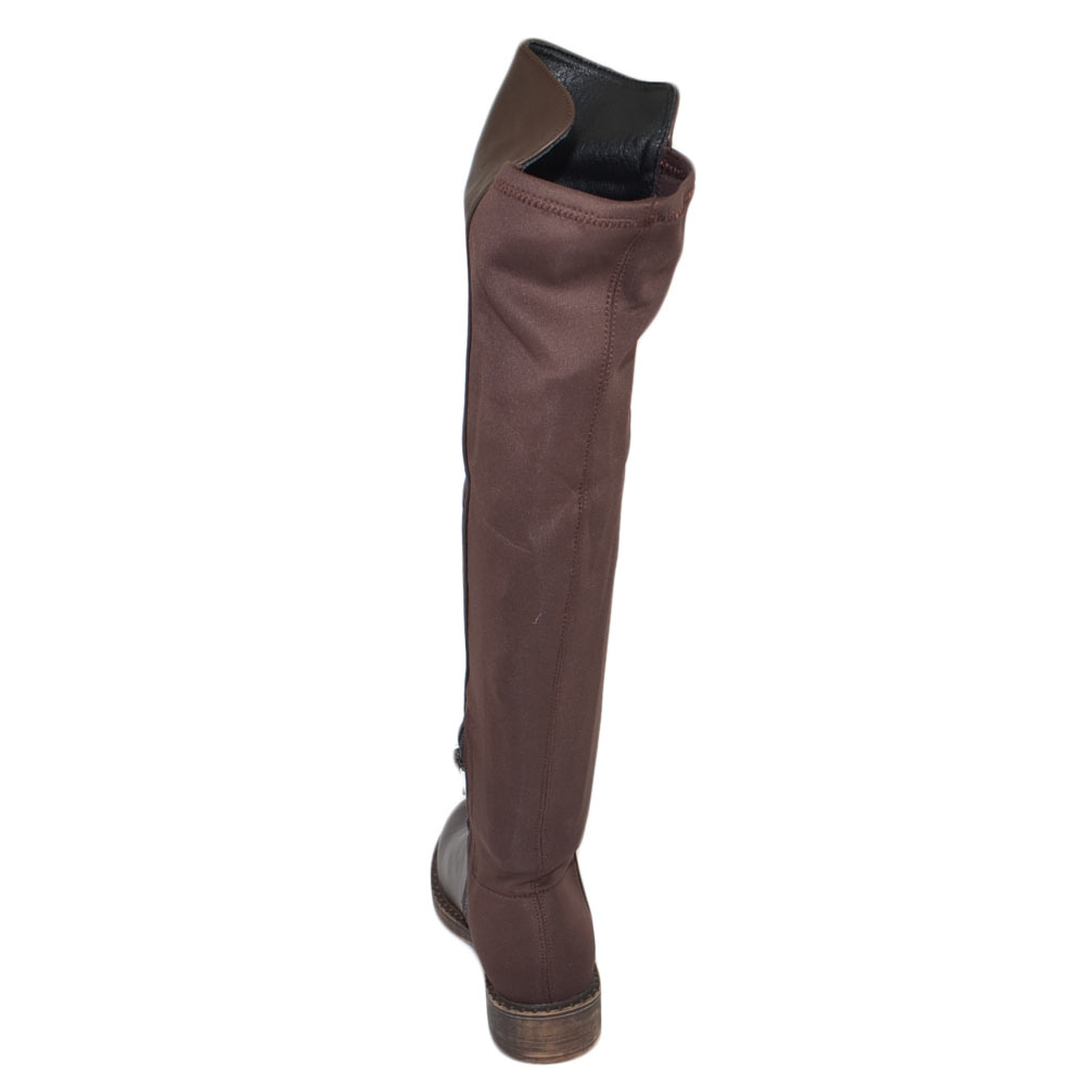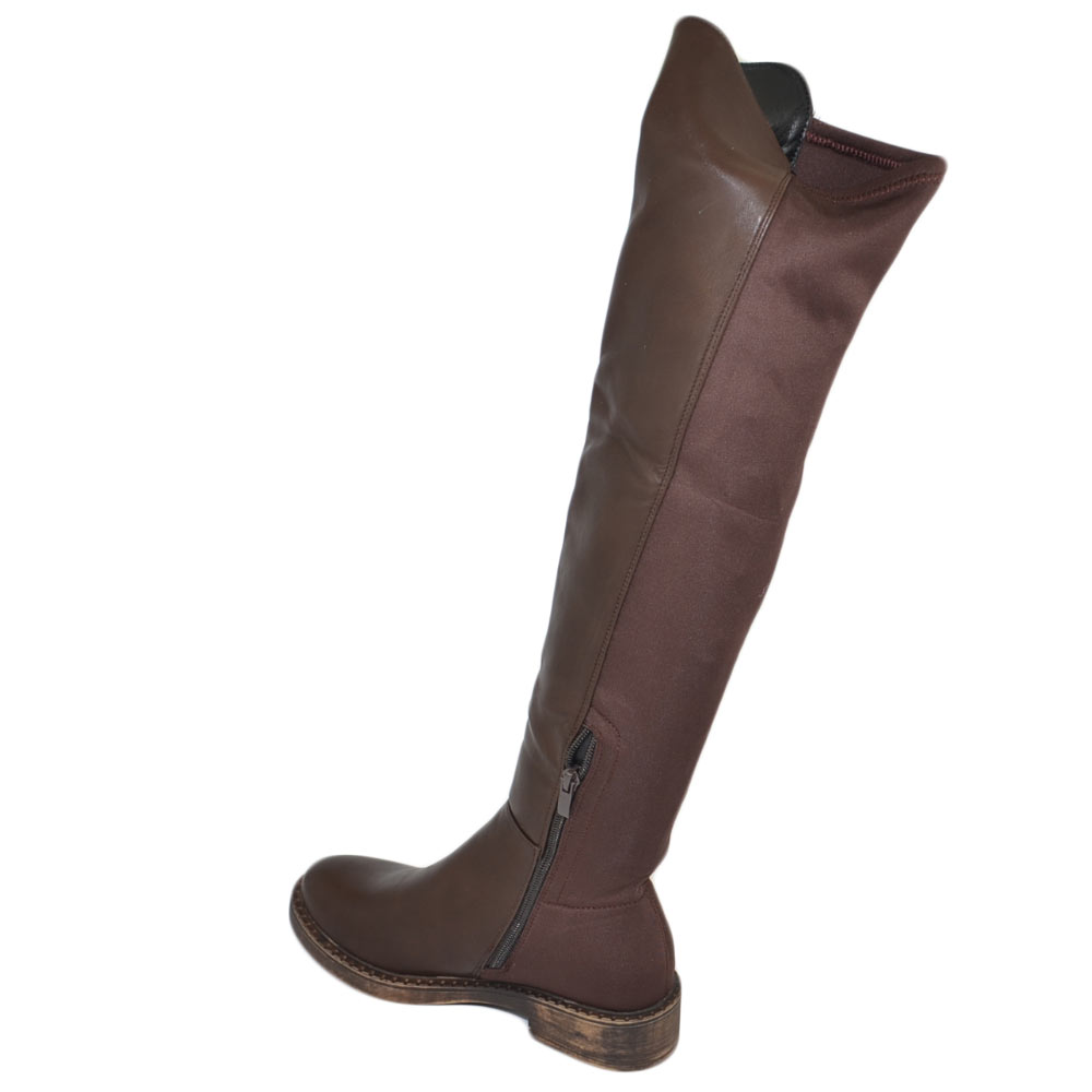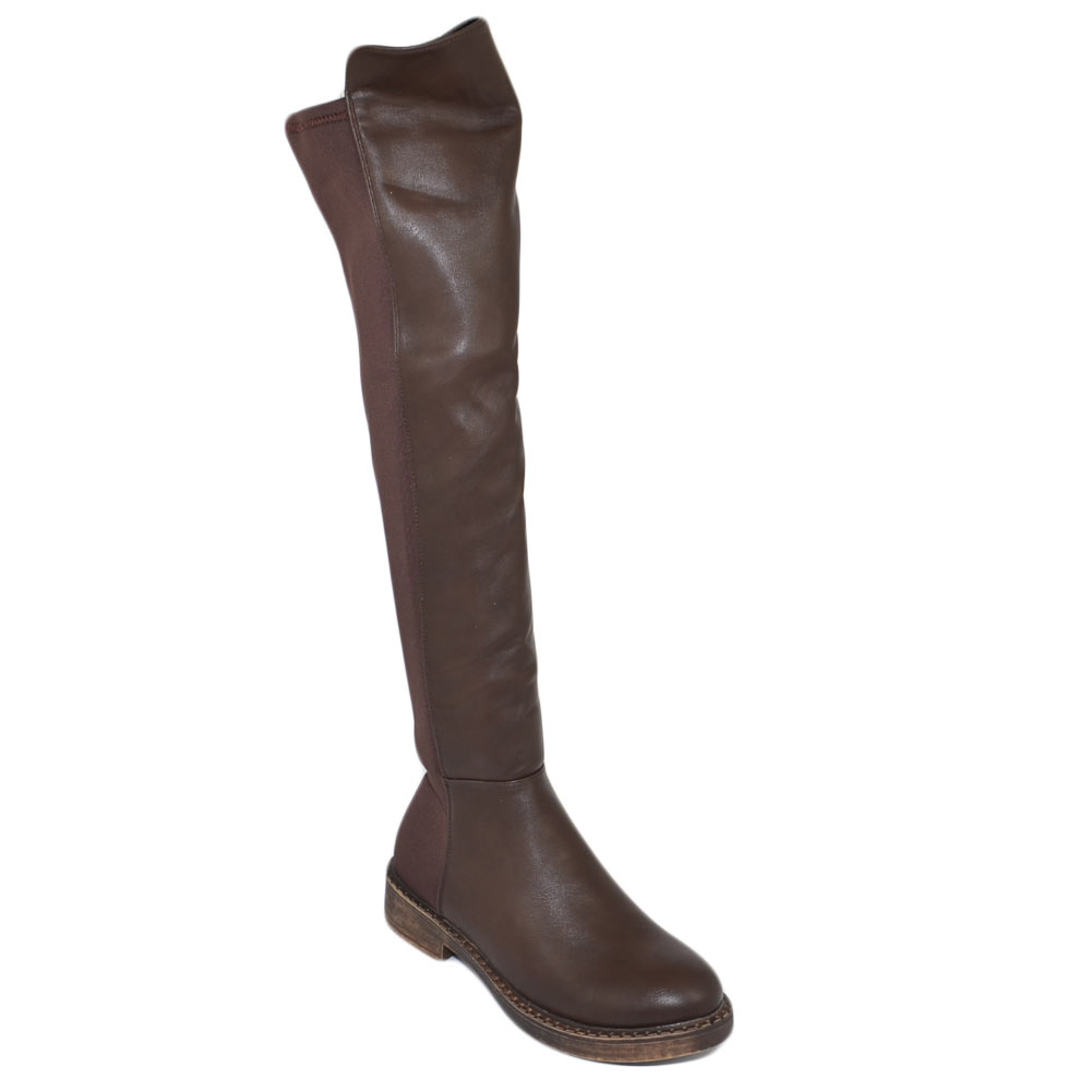 Stivale donna alto marrone sopra ginocchio elastico effetto calzino pelle aderente comodo suola gomma crepla moda