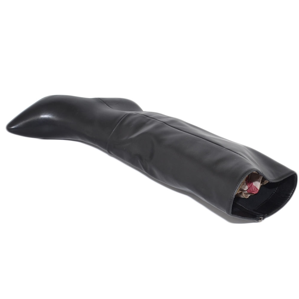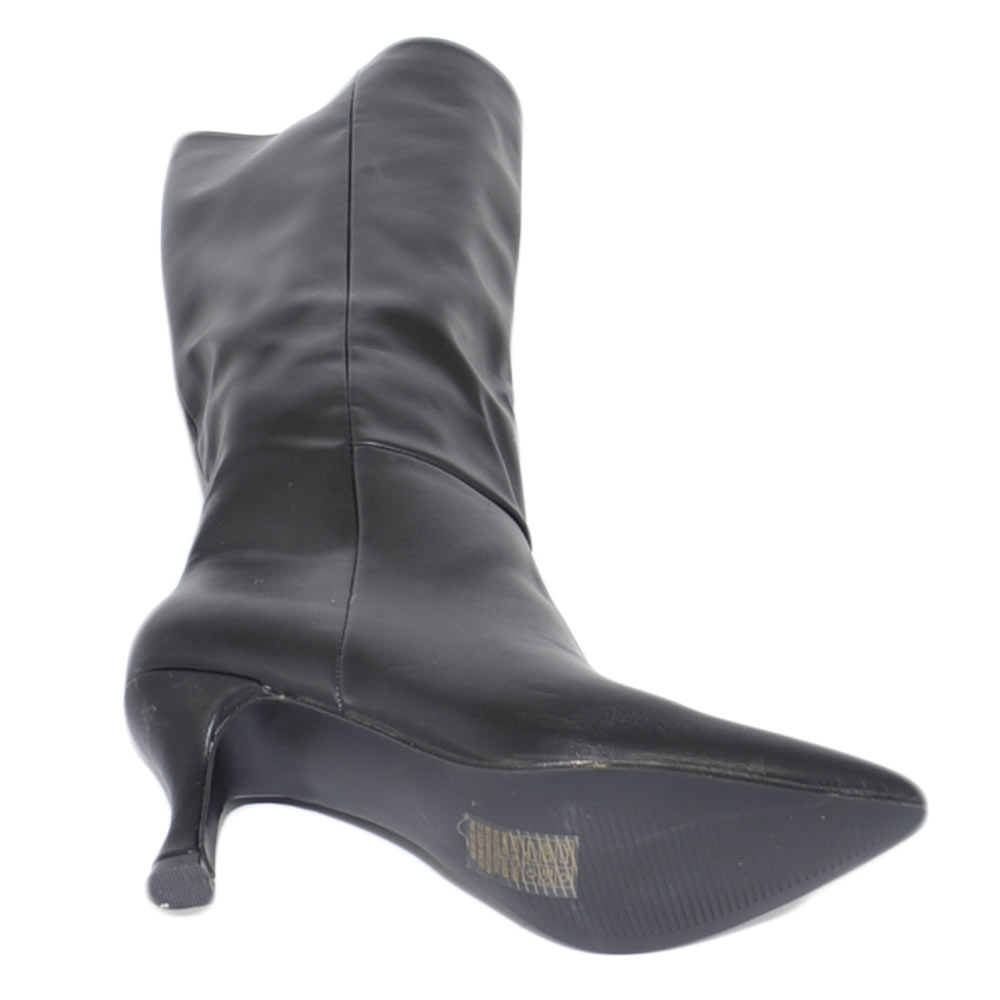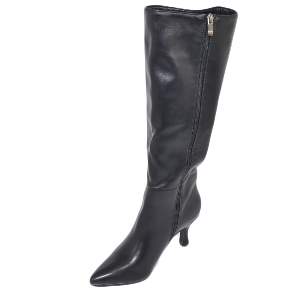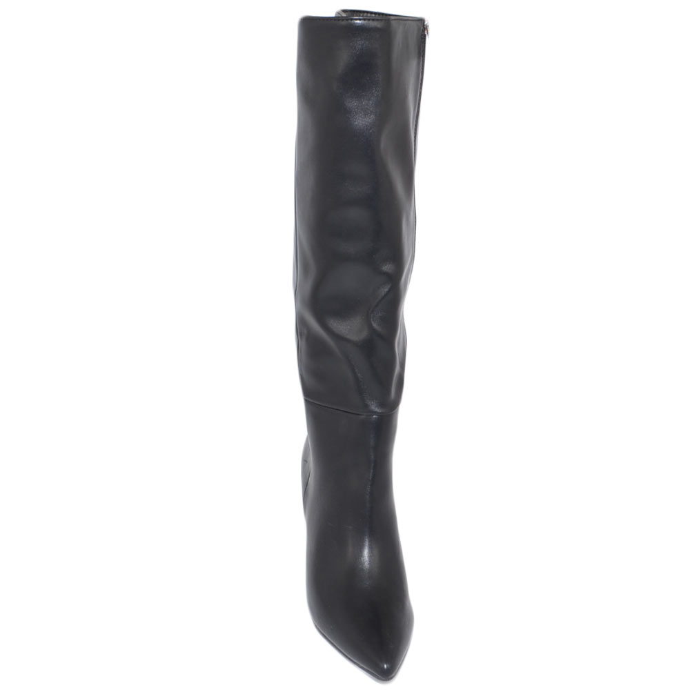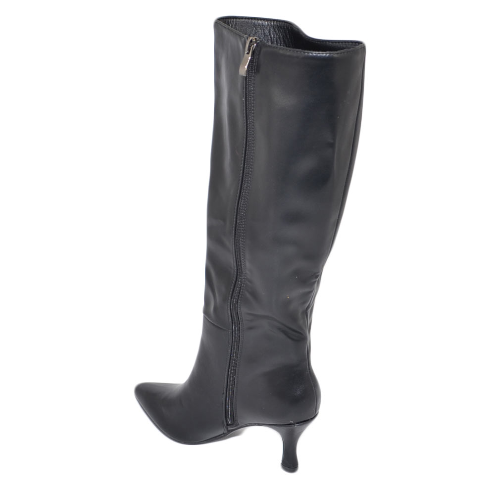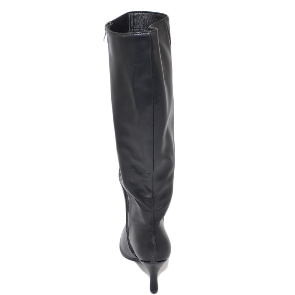 Stivale donna alto a punta rigido pelle nero tacco a spillo basso 5 cm liscio linea basic moda altezza ginocchio zip