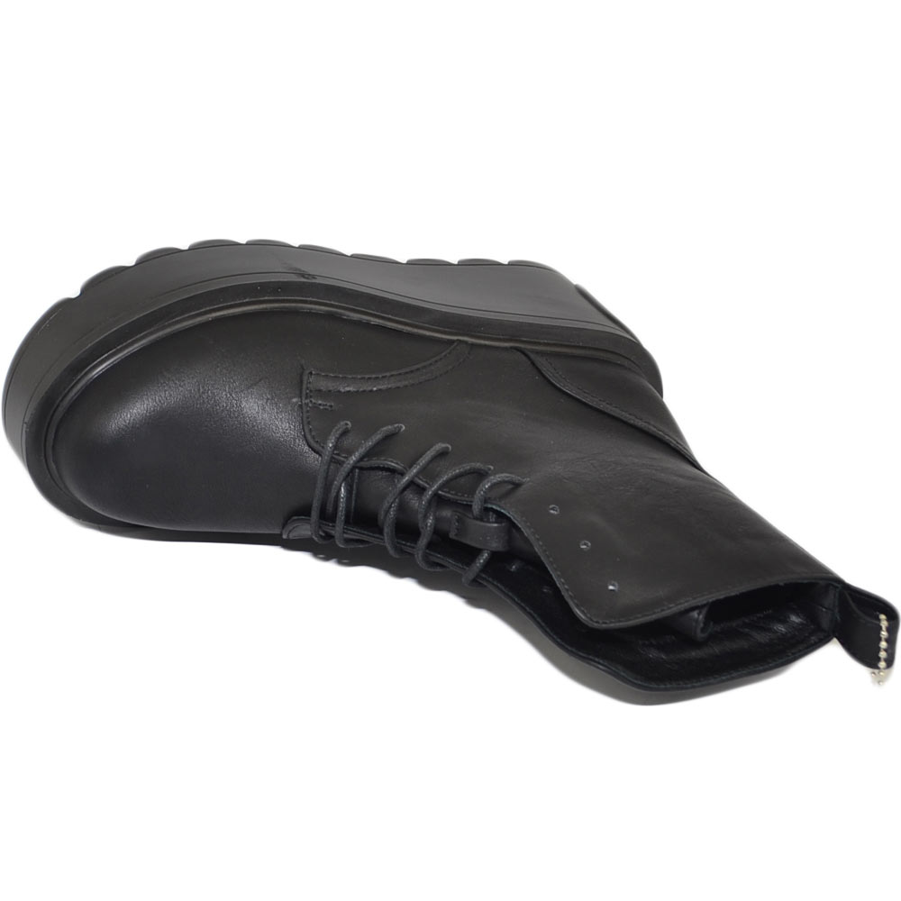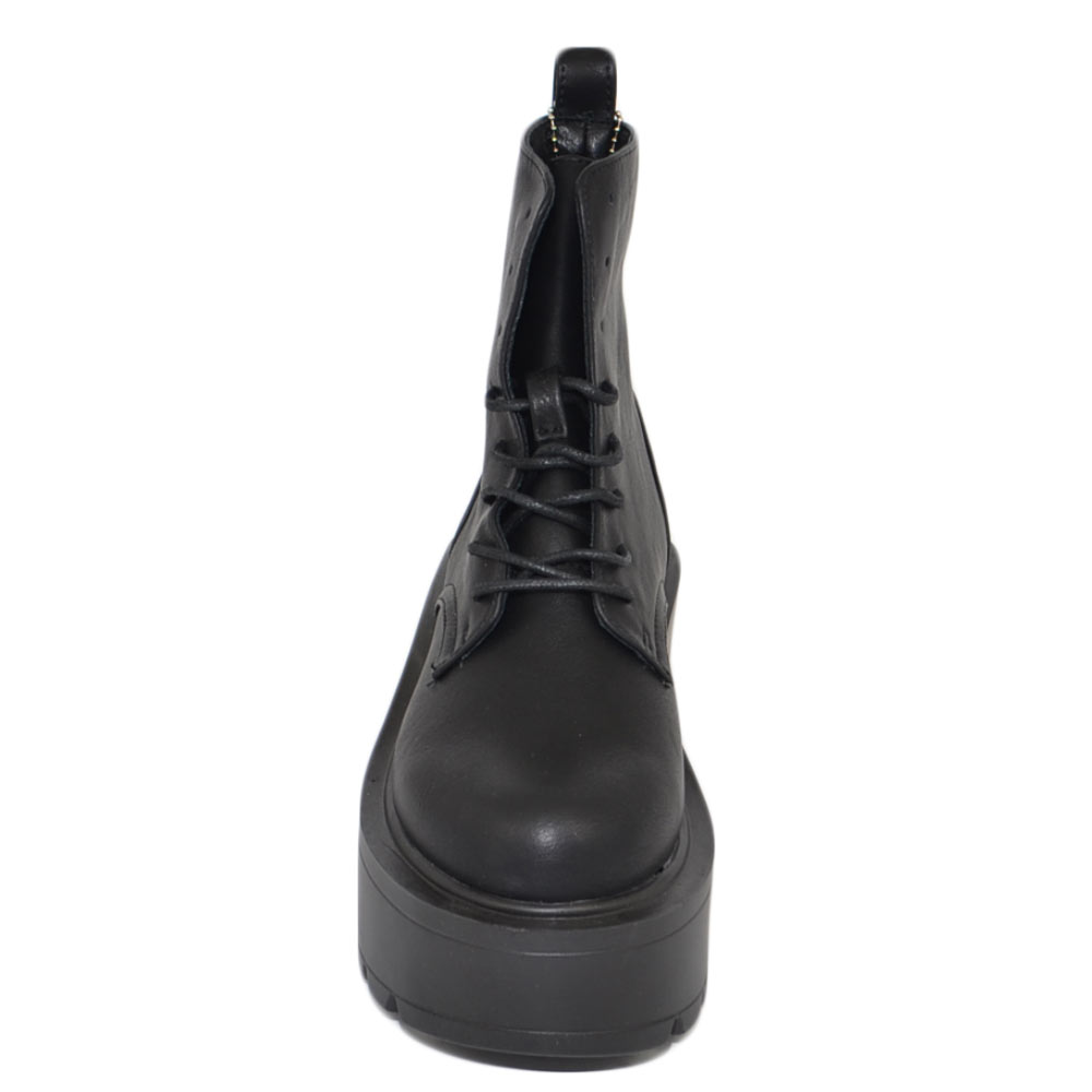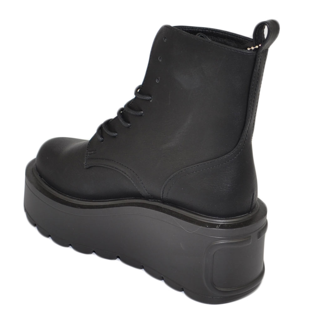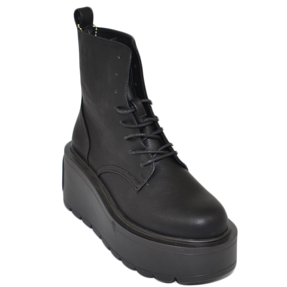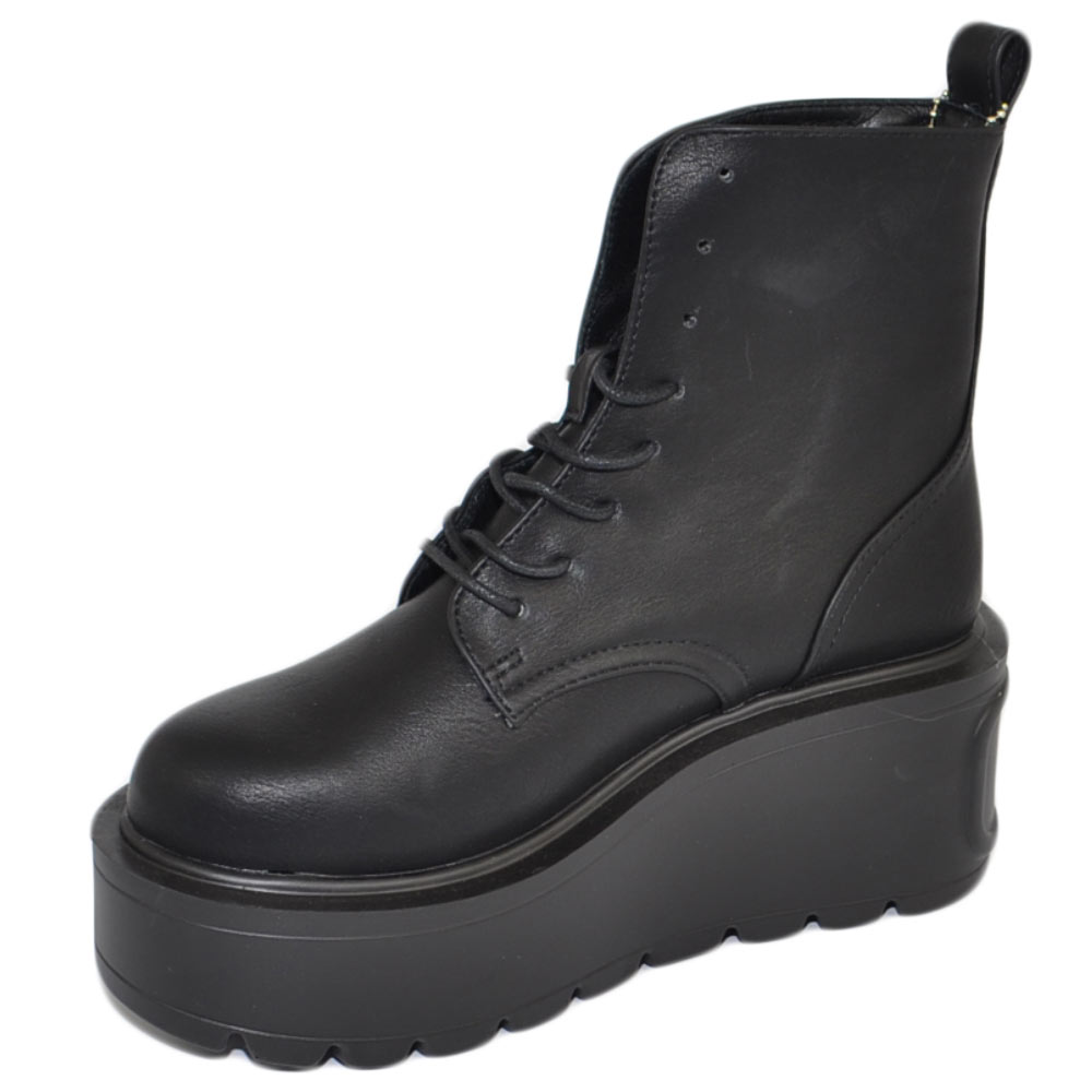 Stivaletto donna nero anfibio lacci platform combat zeppa alta pelle alla caviglia moda