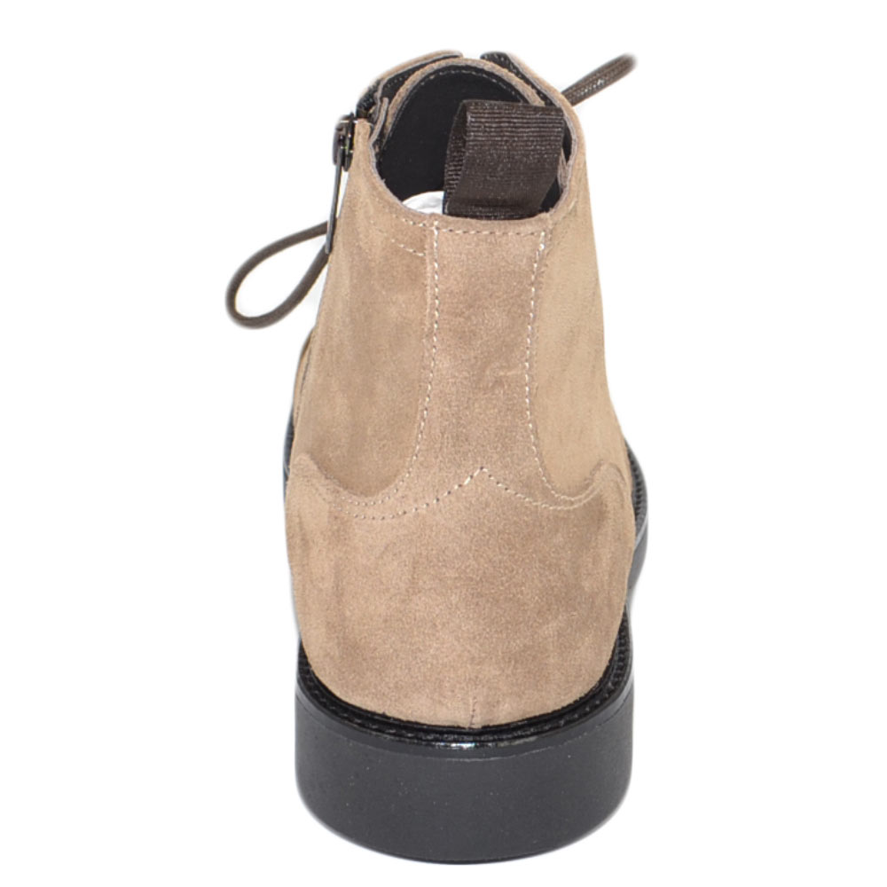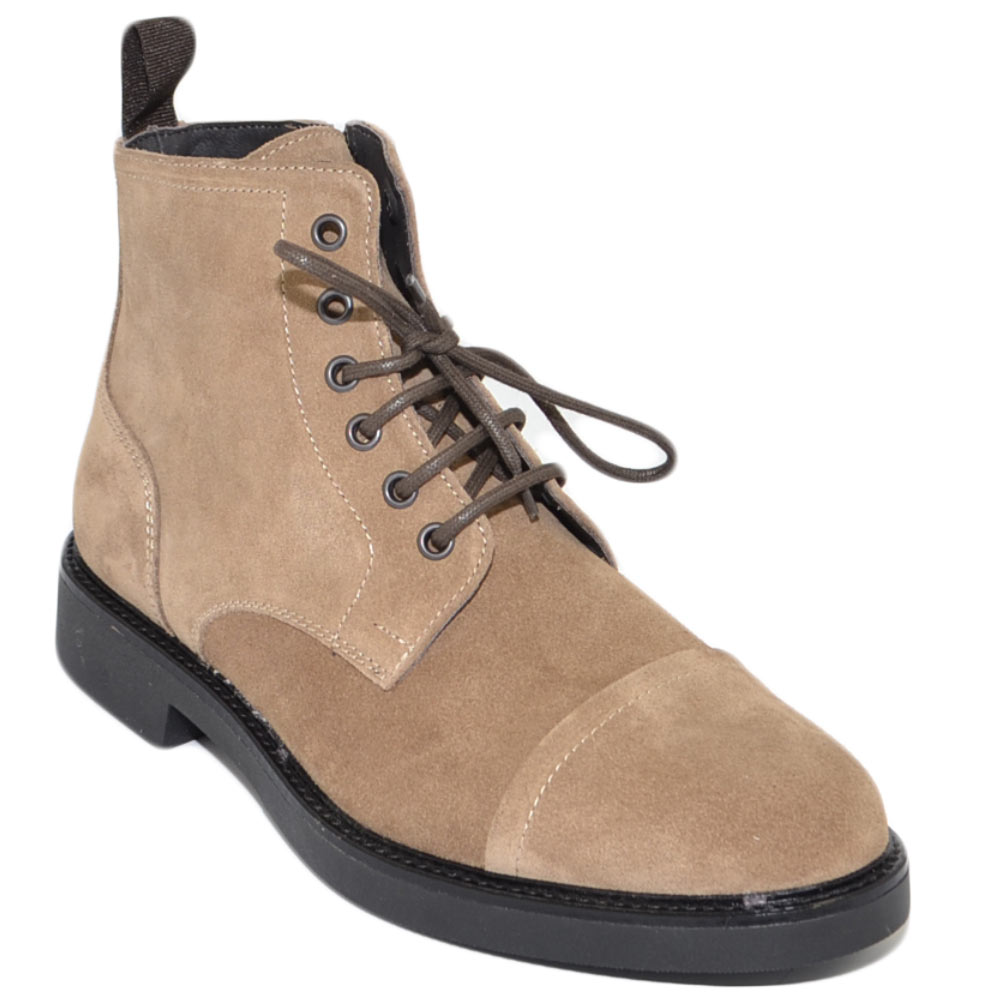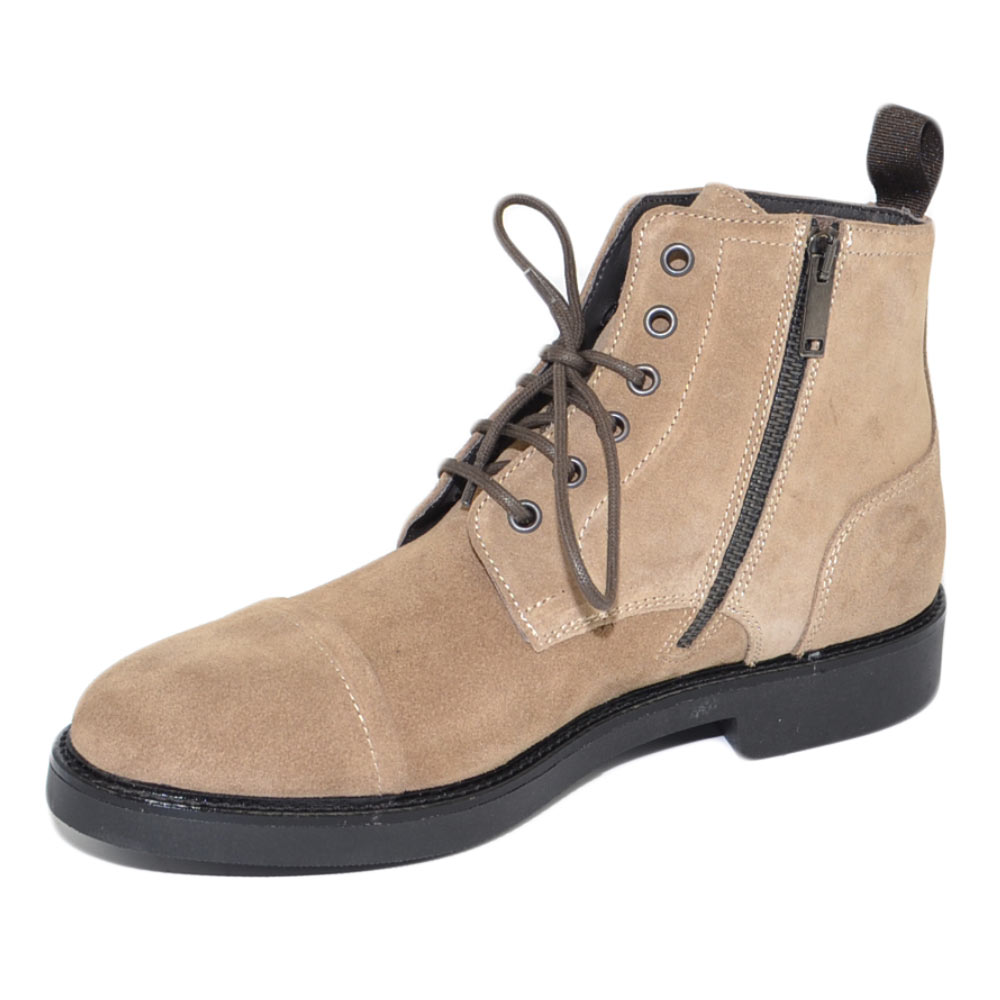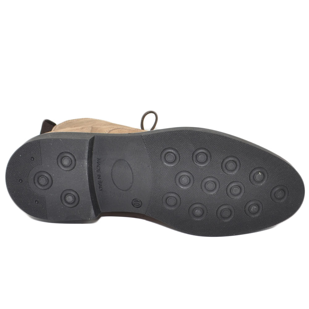 Anfibio stivaletto uomo vera pelle camoscio tortora beige spazzolato fondo gomma lacci in tinta zip moda tendenza