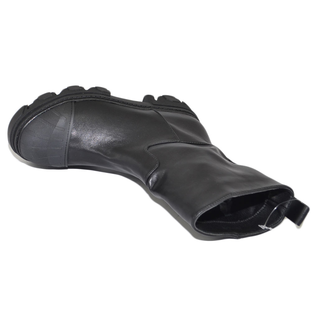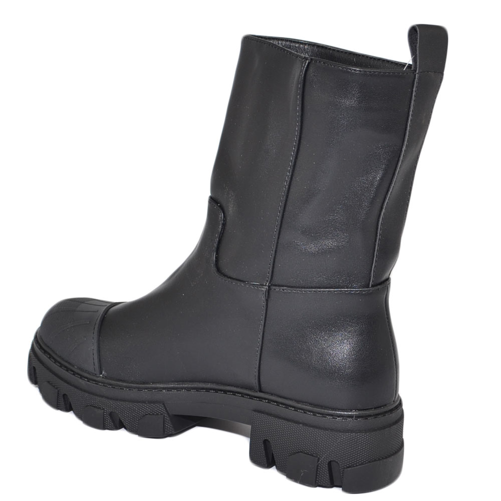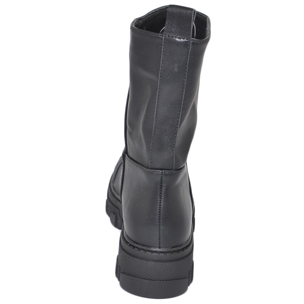 Stivaletto donna combat boots impermeabile e pelle nero gommato punta fondo alto carrarmato moda tendenza