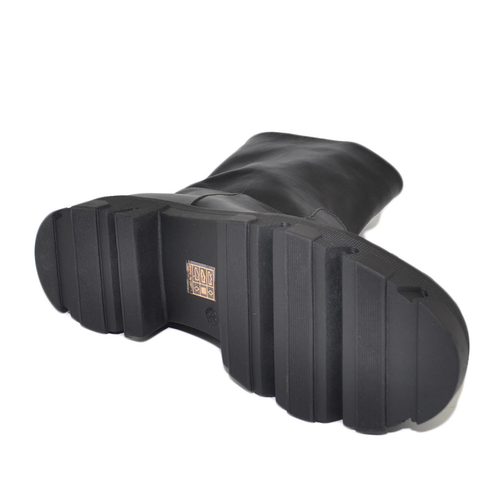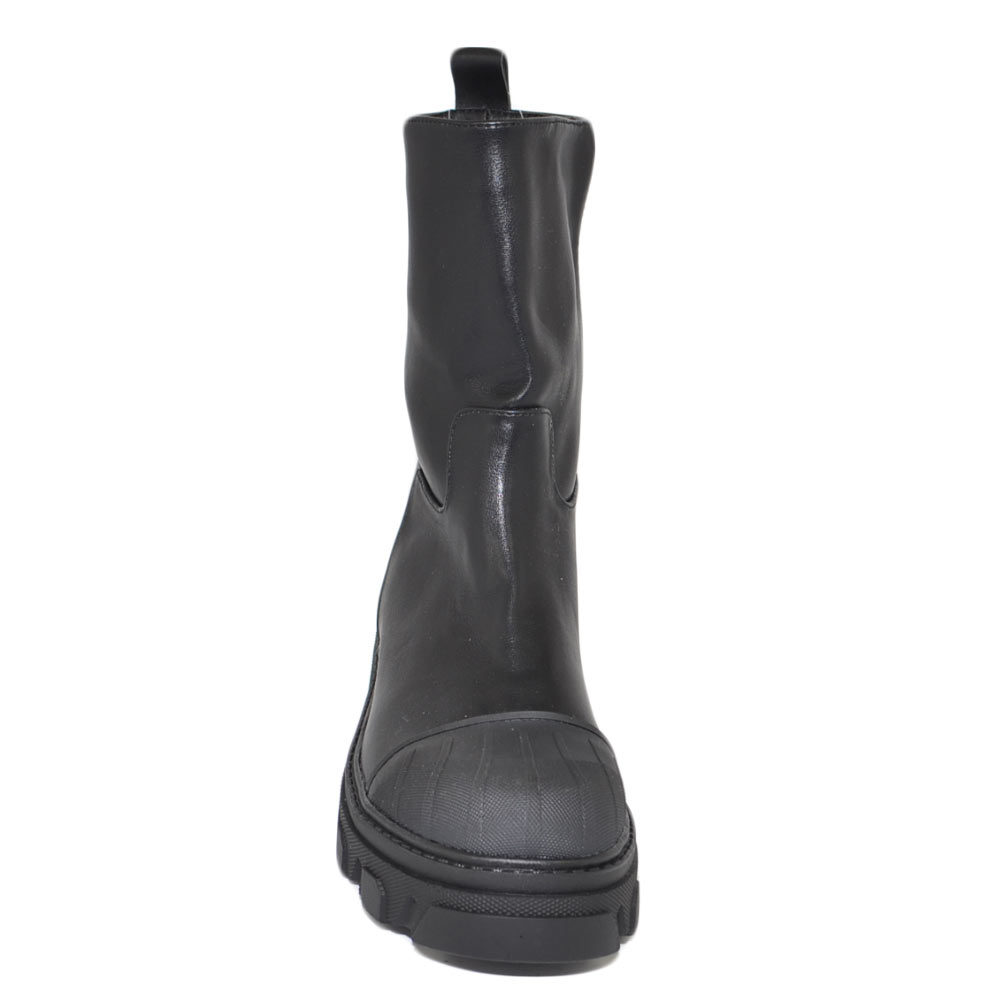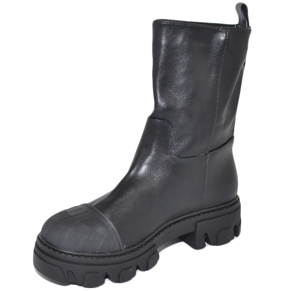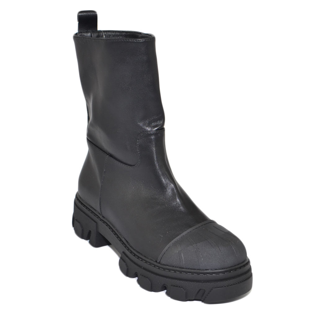 Stivaletto donna combat boots impermeabile e pelle nero gommato punta fondo alto carrarmato moda tendenza
