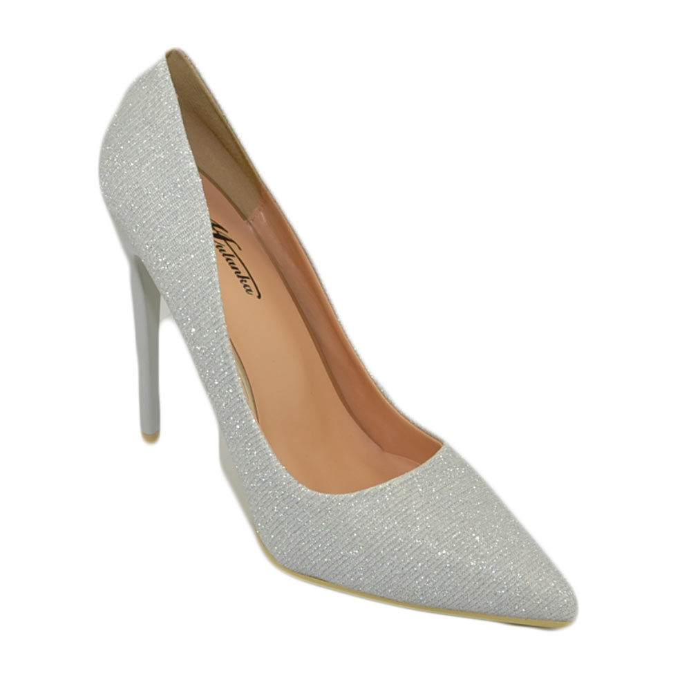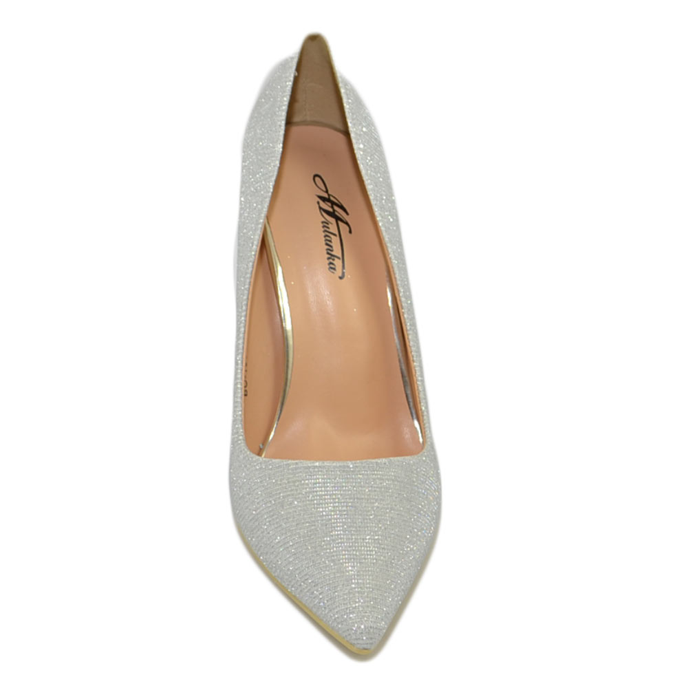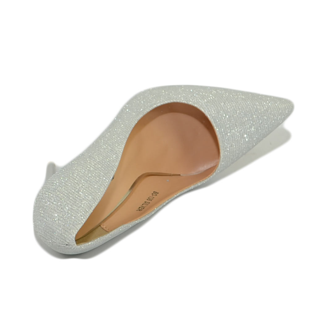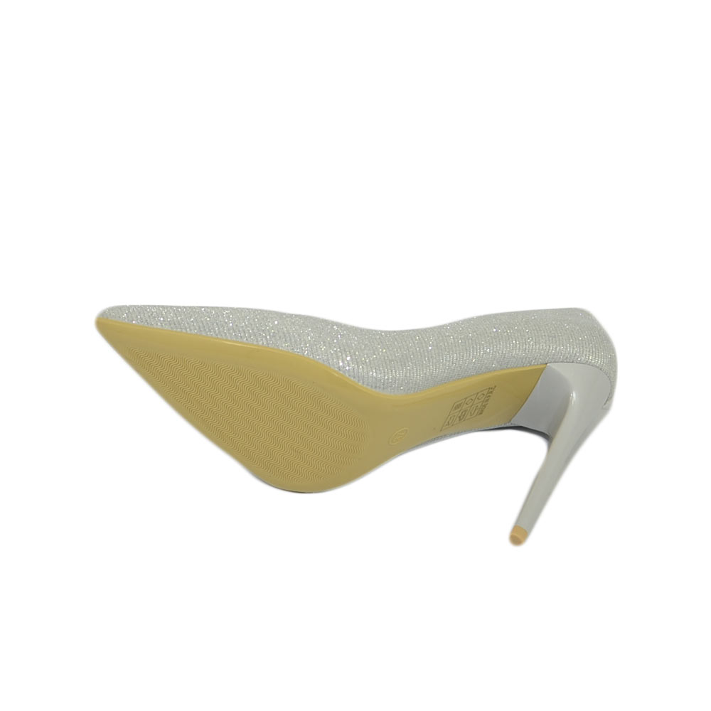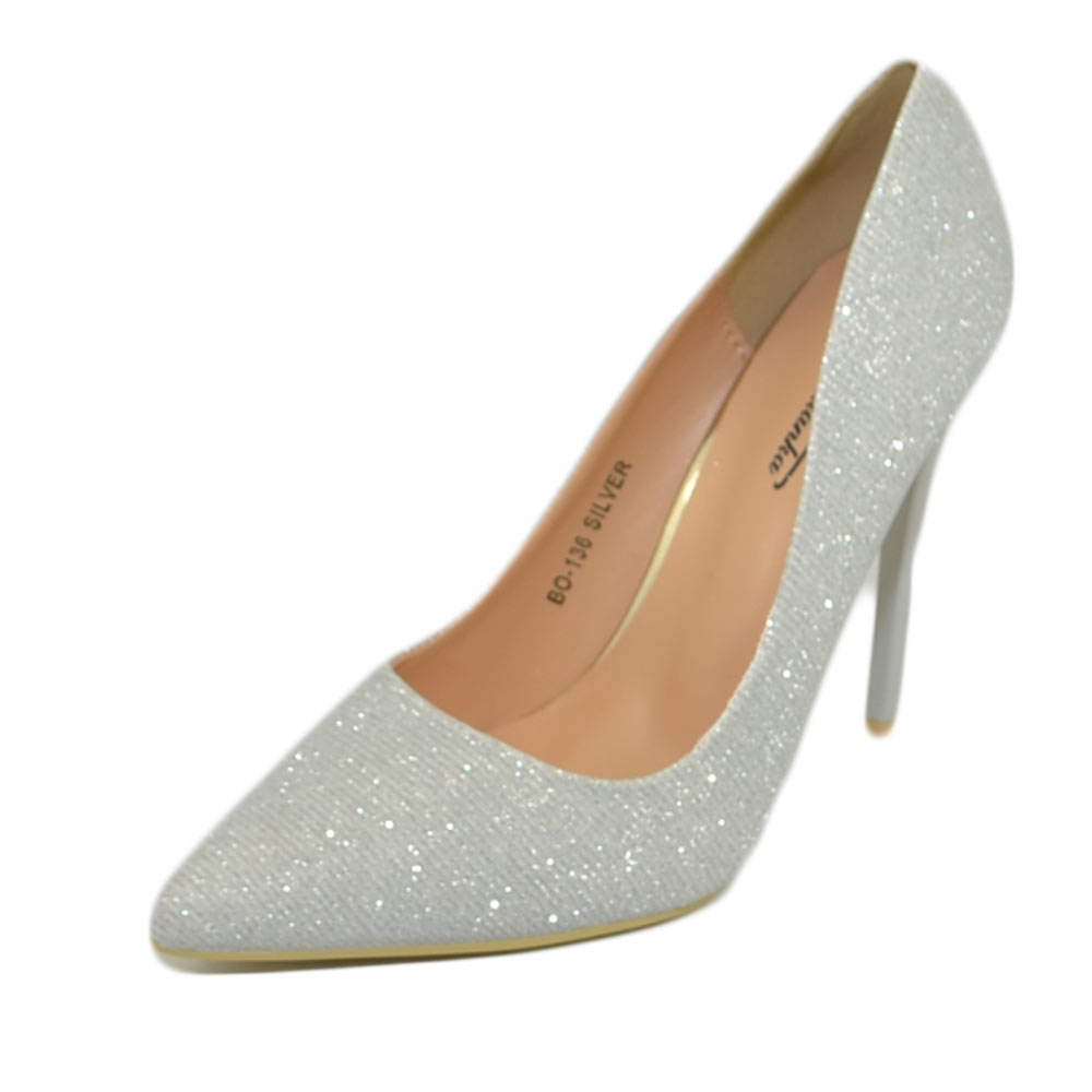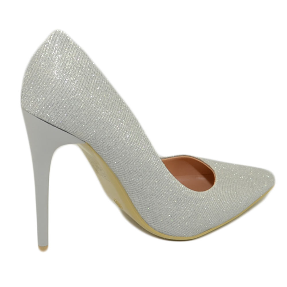 Scarpe donna decollete a punta elegante in lurex glitterato argento tacco a spillo 12 cm moda elegante cerimonia evento