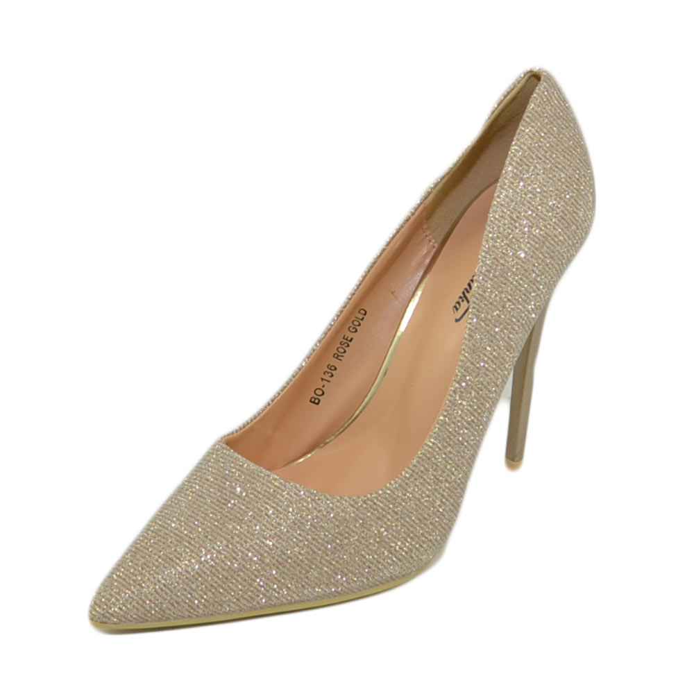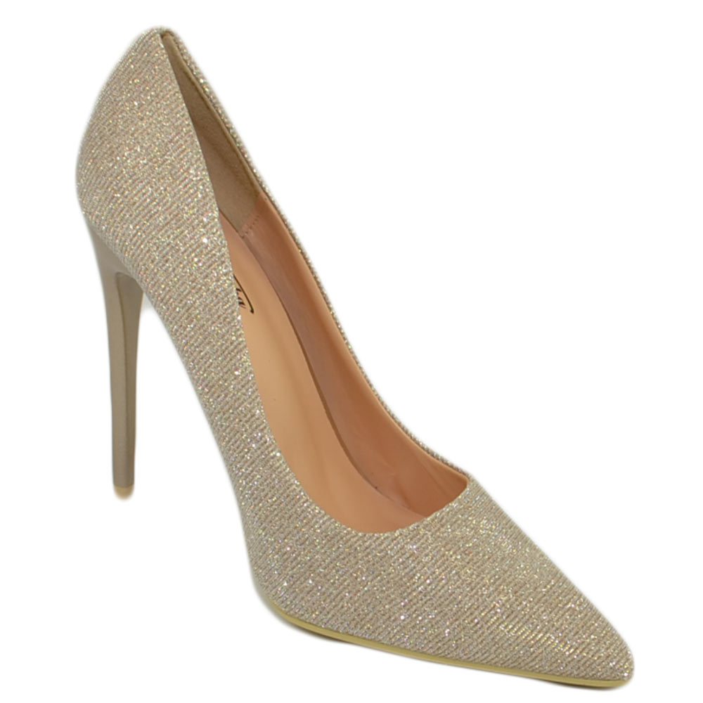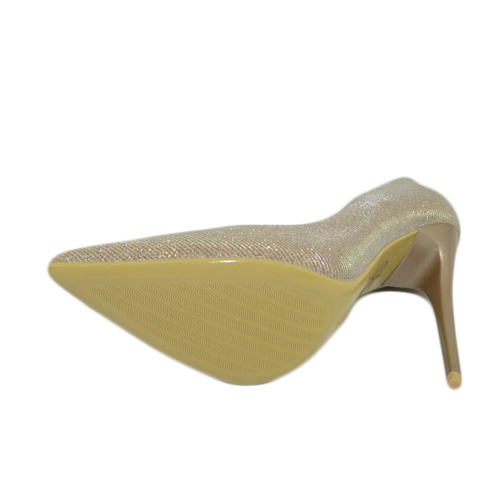Scarpe donna decollete a punta elegante in lurex glitterato oro tacco a spillo 12 cm moda elegante cerimonia evento