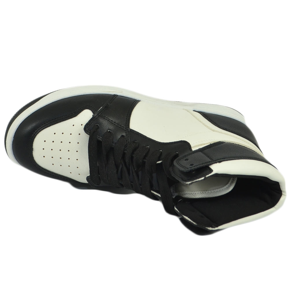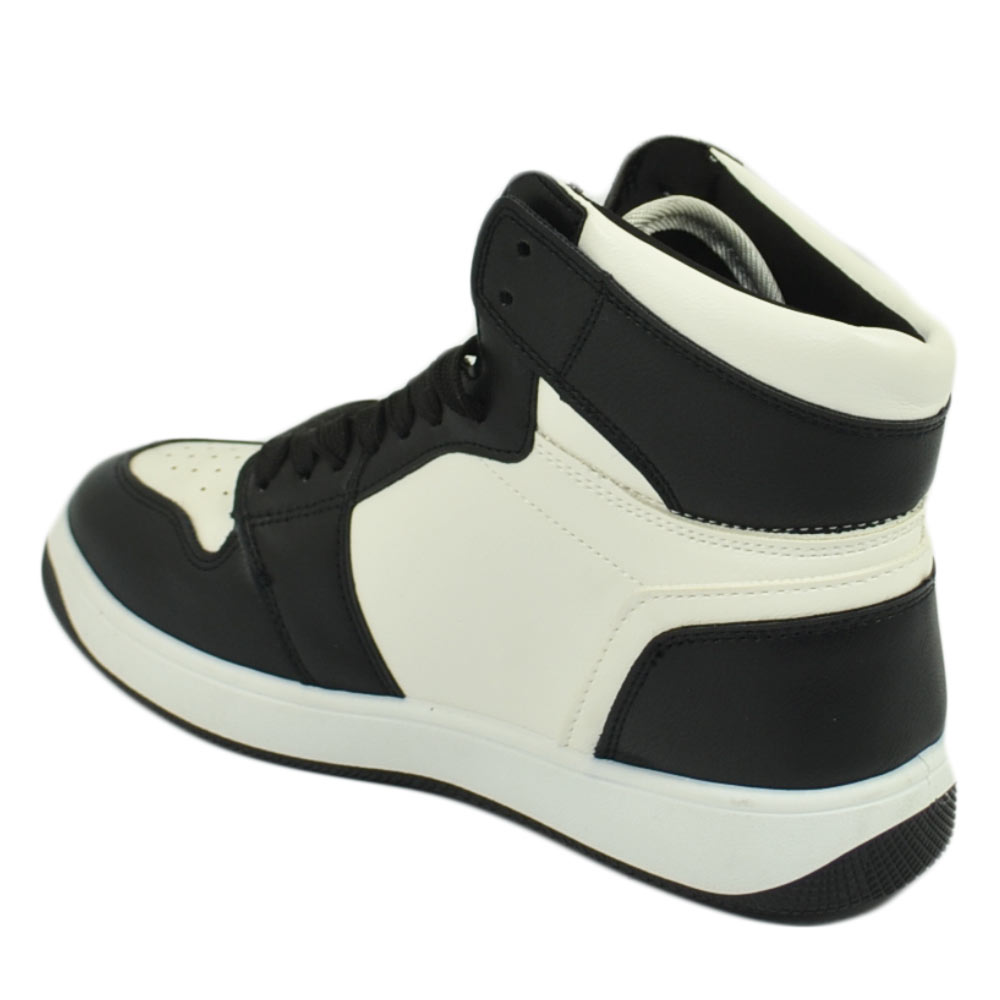 Scarpetta donna sneakers alta bicolore stivaletto bianco nero lacci gomma comoda in tinta moda ragazza scuola