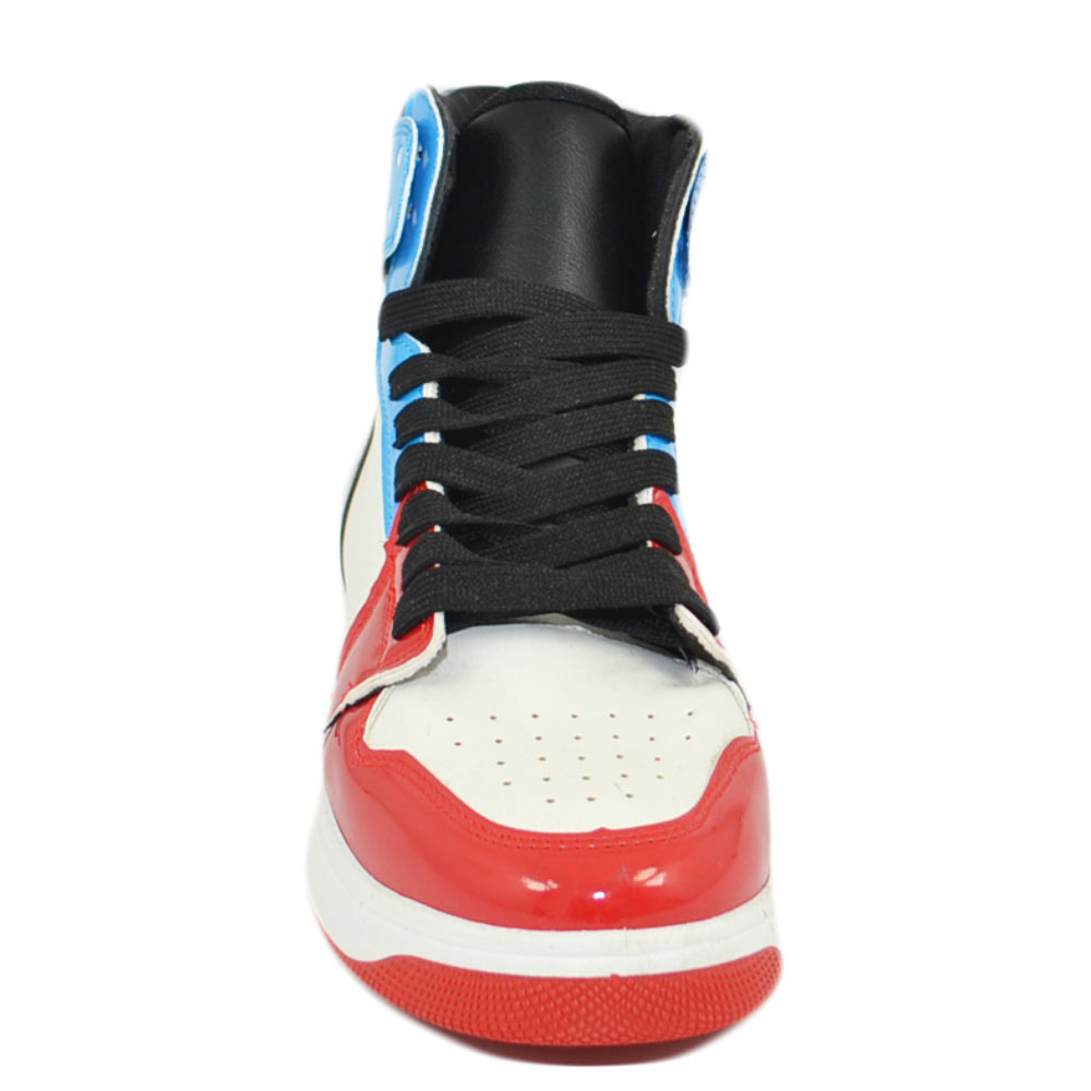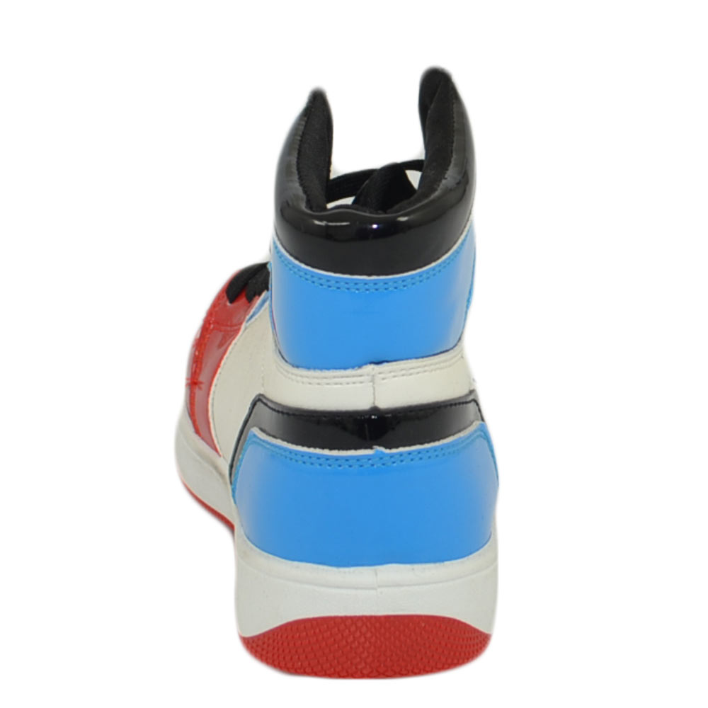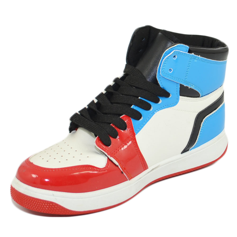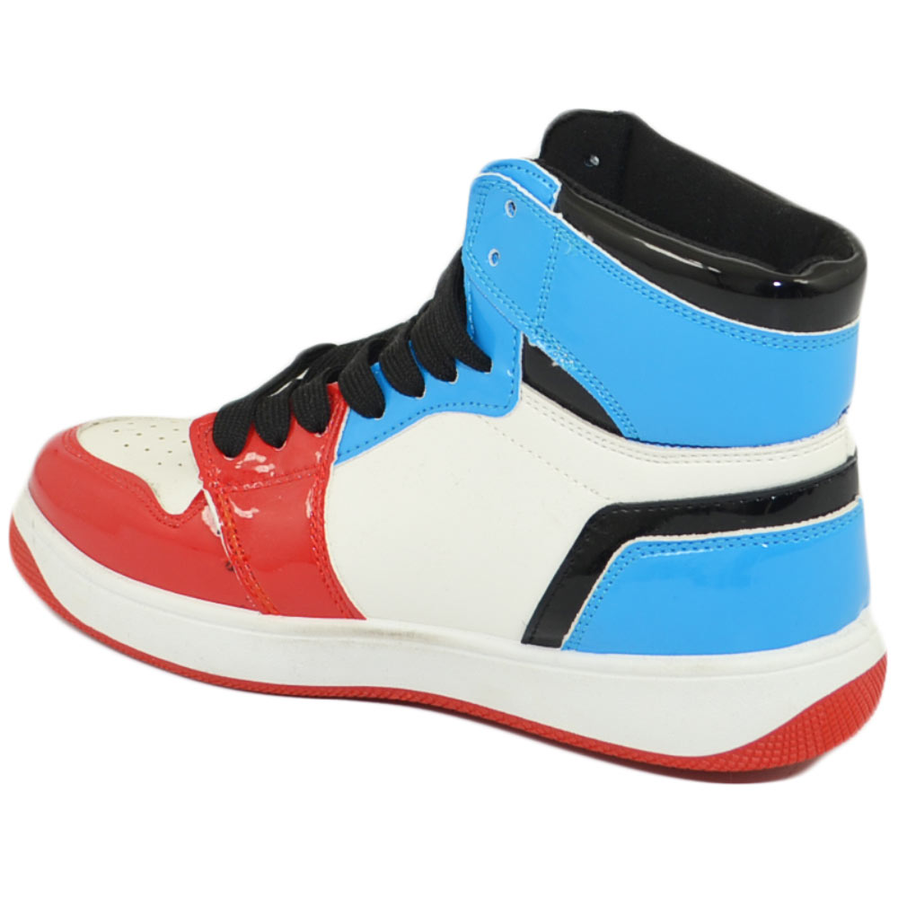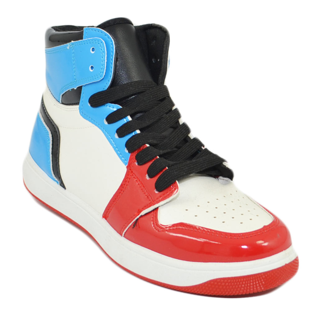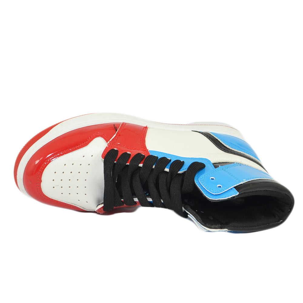 Scarpetta donna sneakers alta bicolore stivaletto bianco nero rosso azzurro lacci gomma comoda tinta moda ragazza scuola