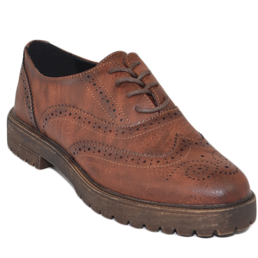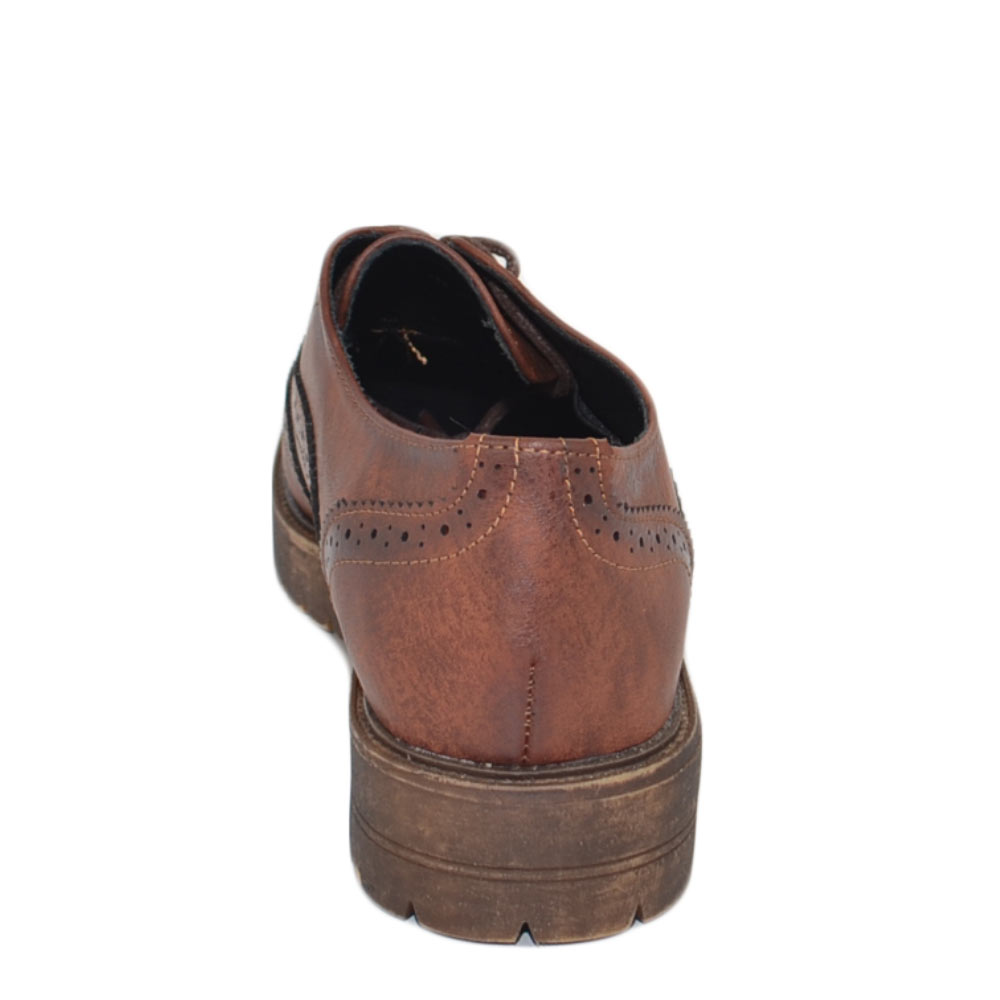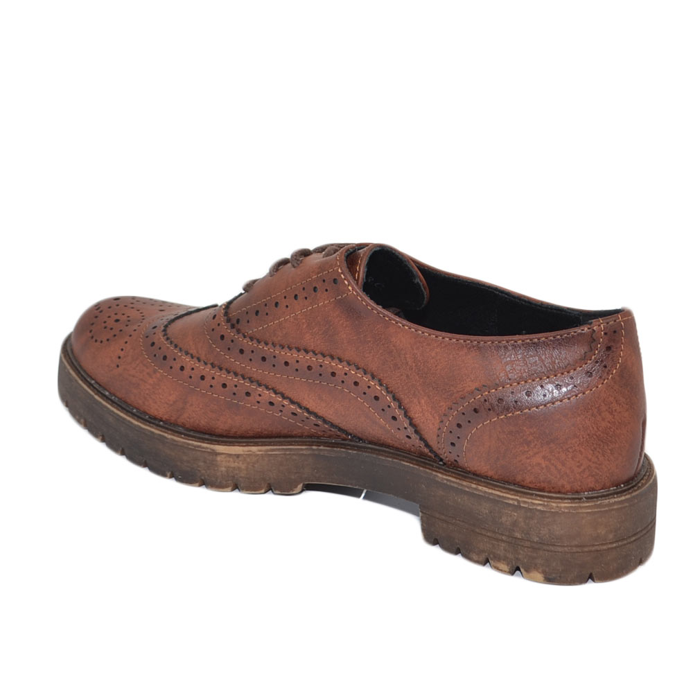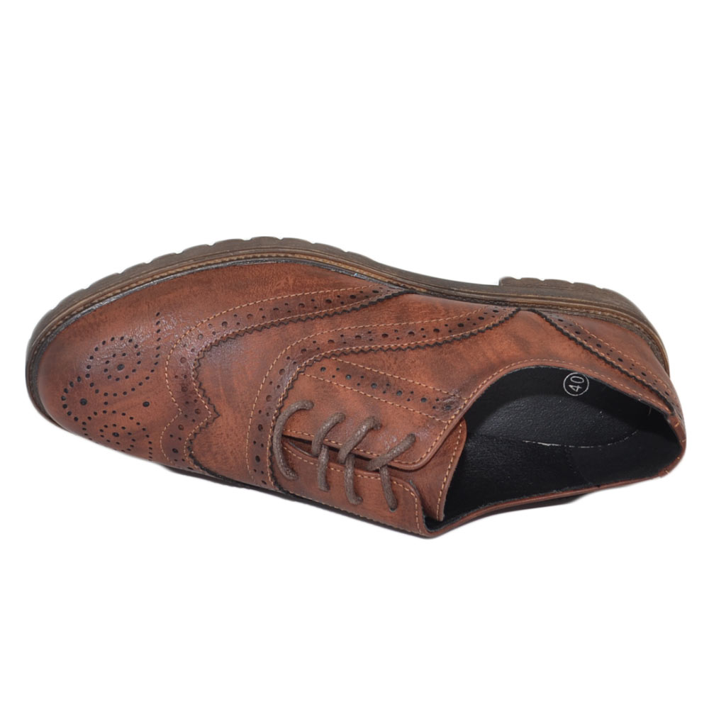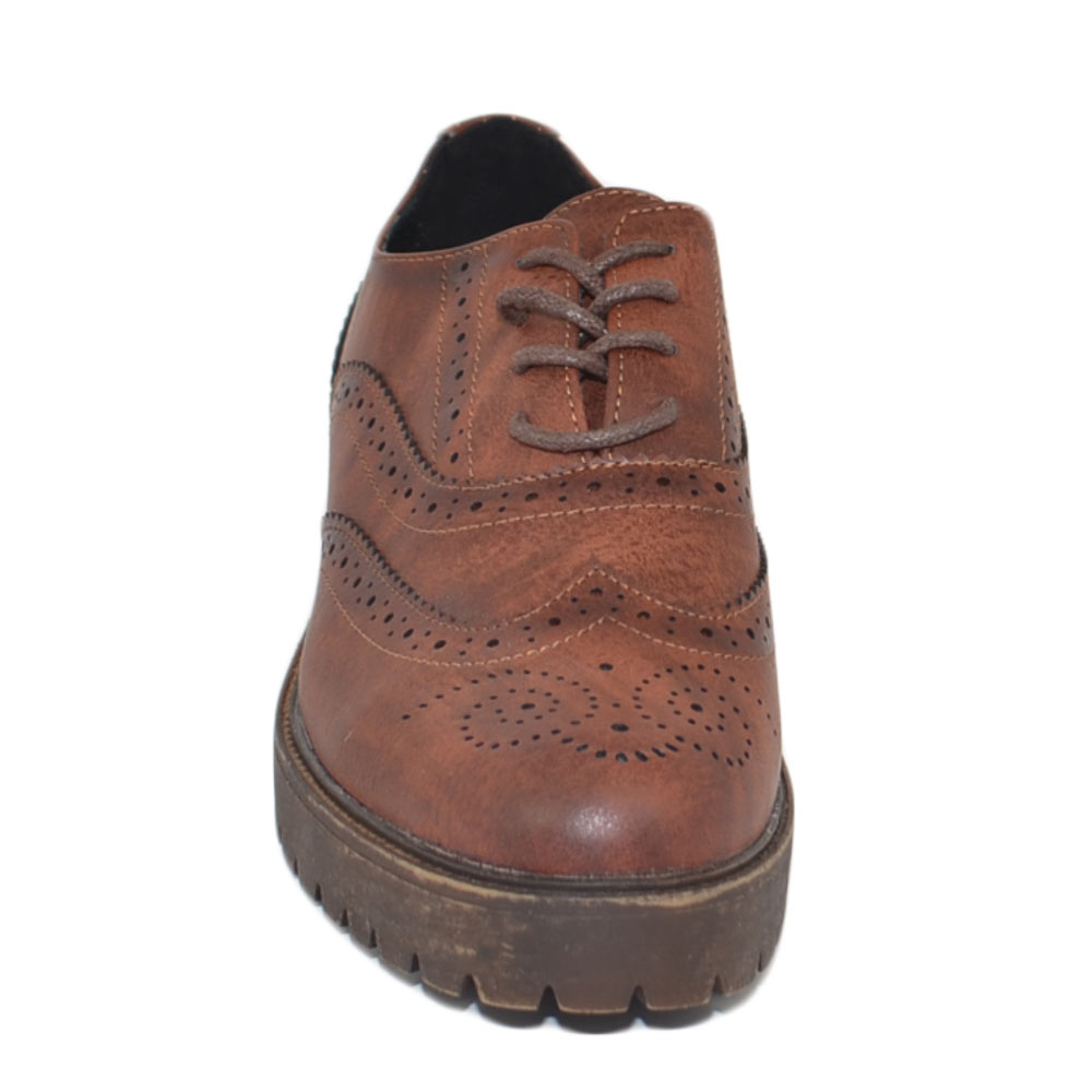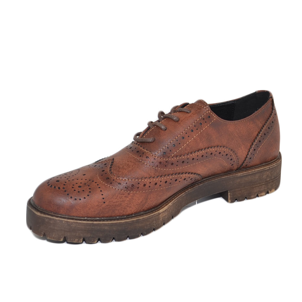 Scarpa francesina donna stringata marrone cognac comoda lacci fondo in gomma tinta unita moda casual