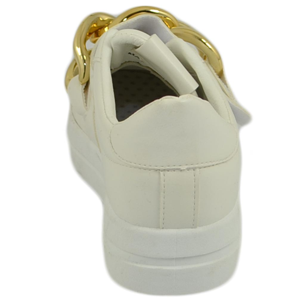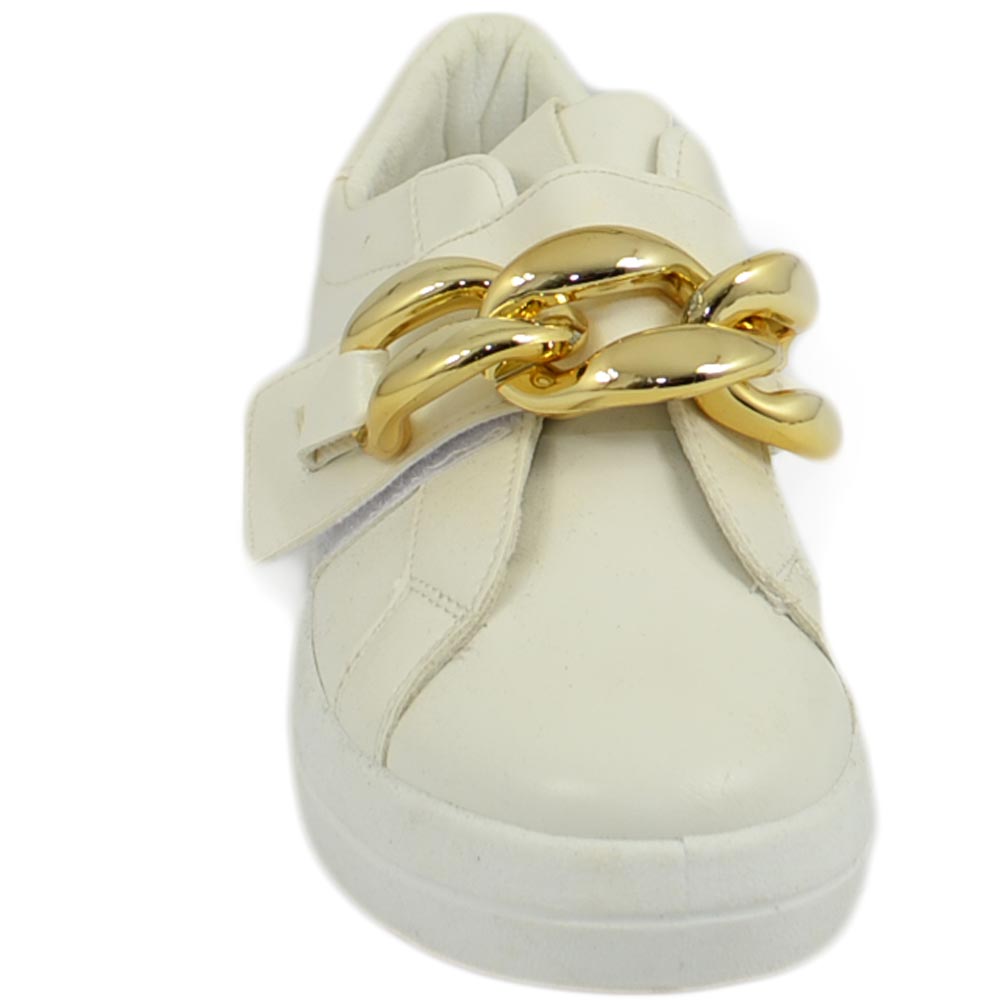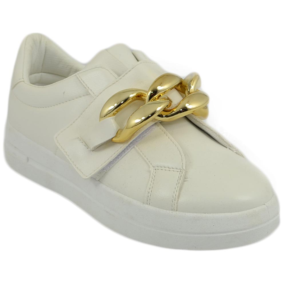 Sneakers bassa donna bianco suola basic gomma con strappo e catena oro rimovibile comodo moda morbido antiscivolo