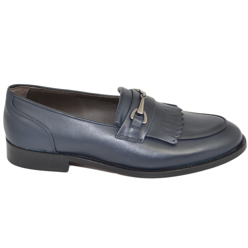 Scarpe uomo mocassini inglese college nappine bon bon vera pelle blu semilucido made in italy suola cuoio.