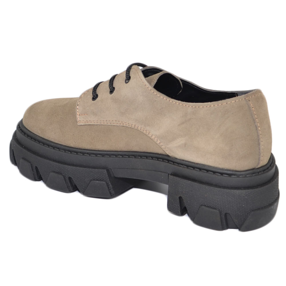 Scarpe donna combat francesina liscia camoscio taupe fondo platform gomma alta vera pelle made in italy moda tendenza