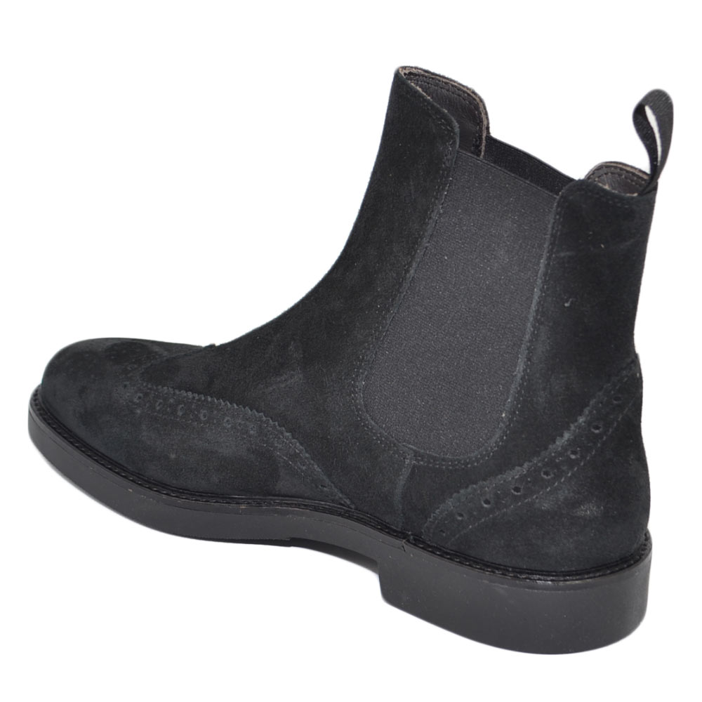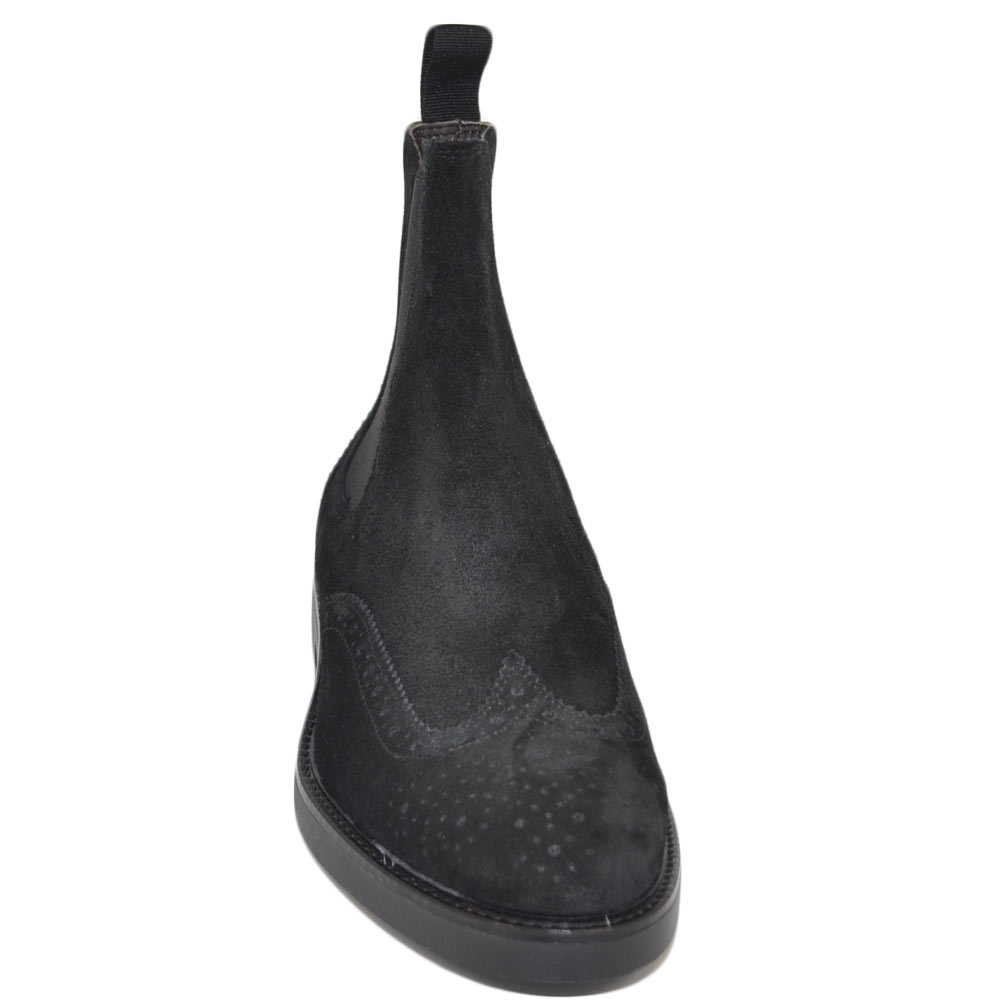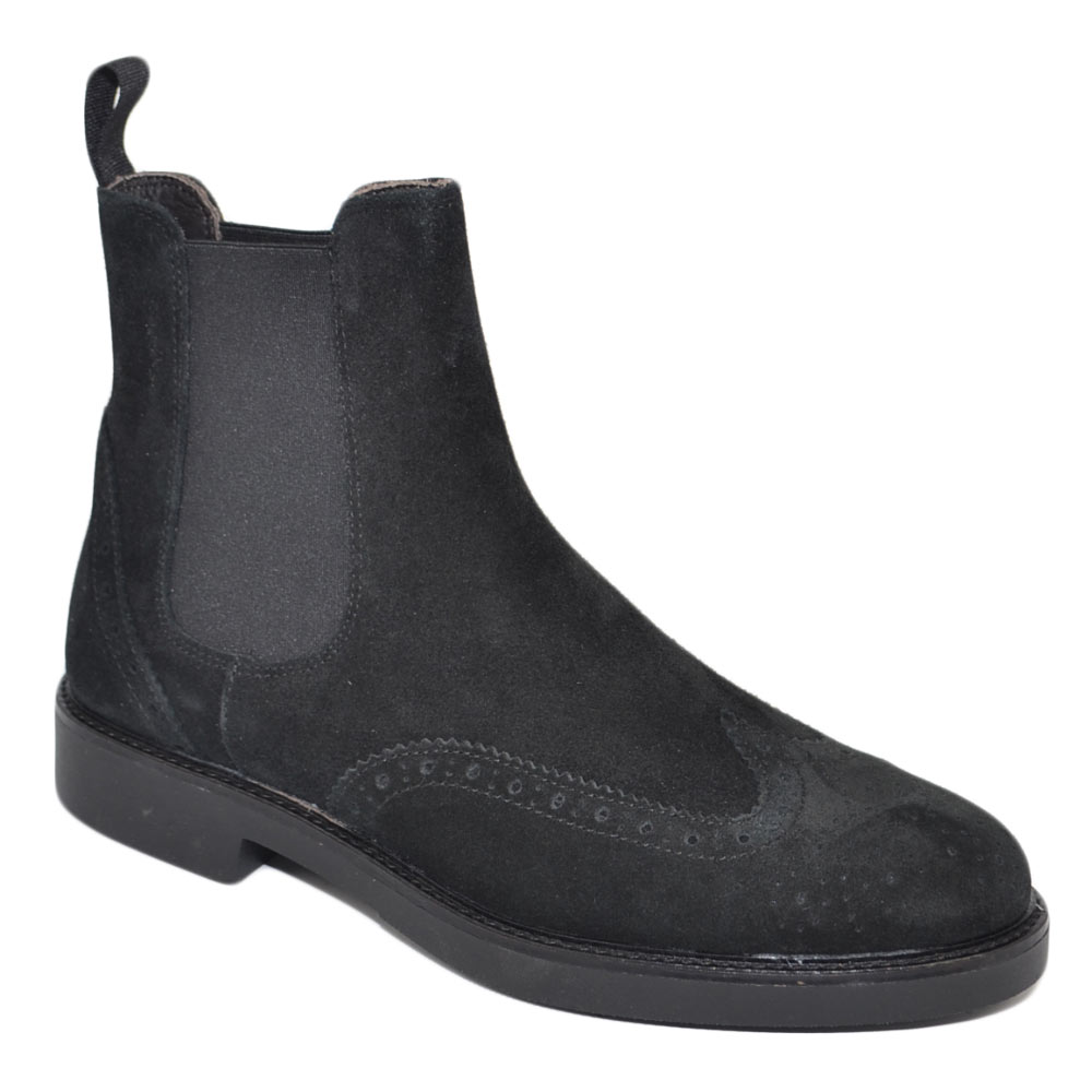 Beatles uomo stivaletto scarpe elastico in vera pelle camoscio nero francesina fondo gomma light made in italy invernale