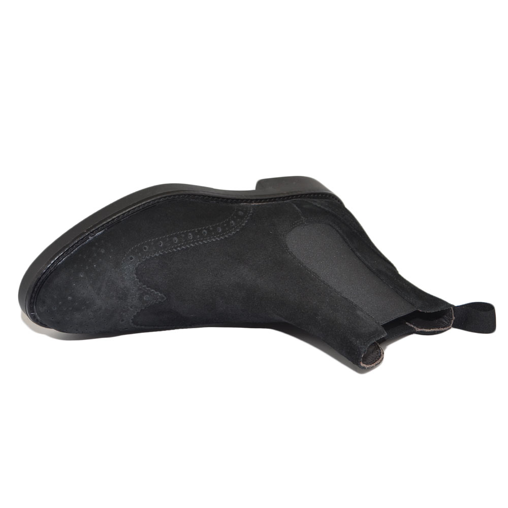 Beatles uomo stivaletto con elastico in vera pelle camoscio nero collo basso liscio fondo roccia made in italy handmade.