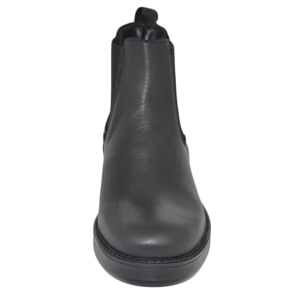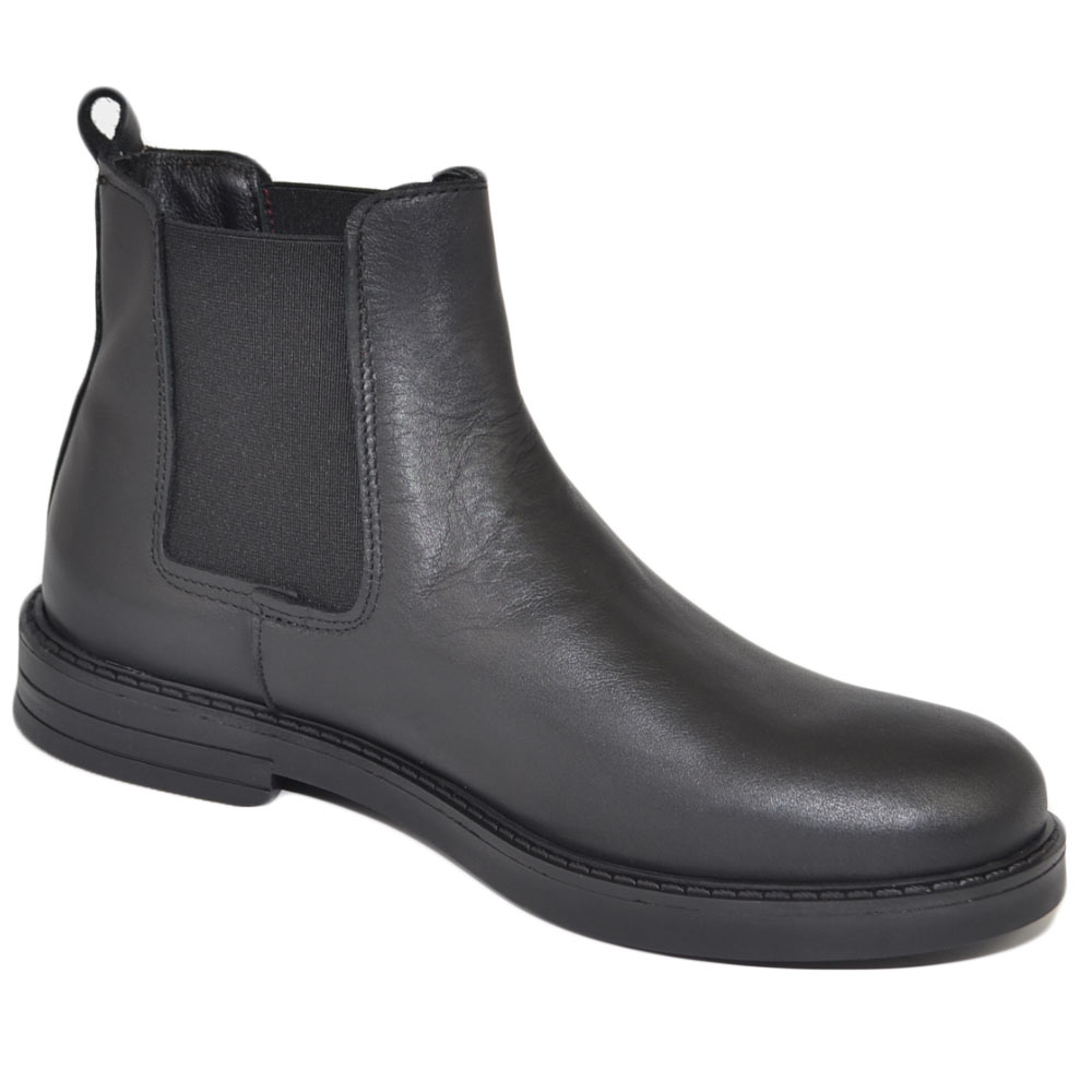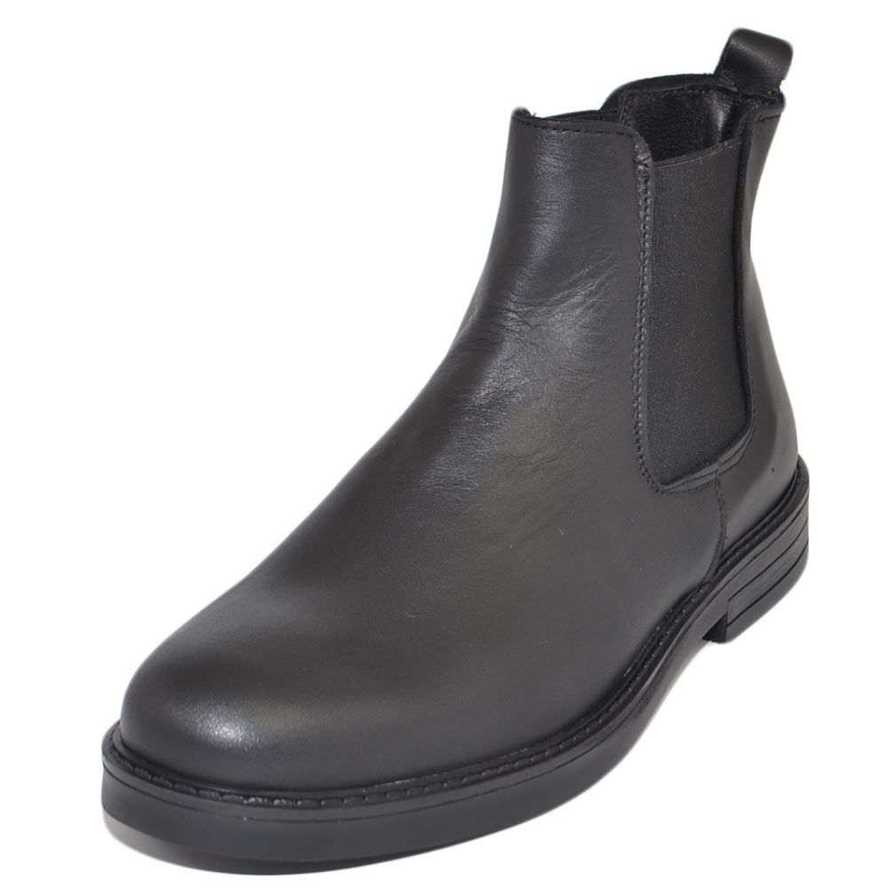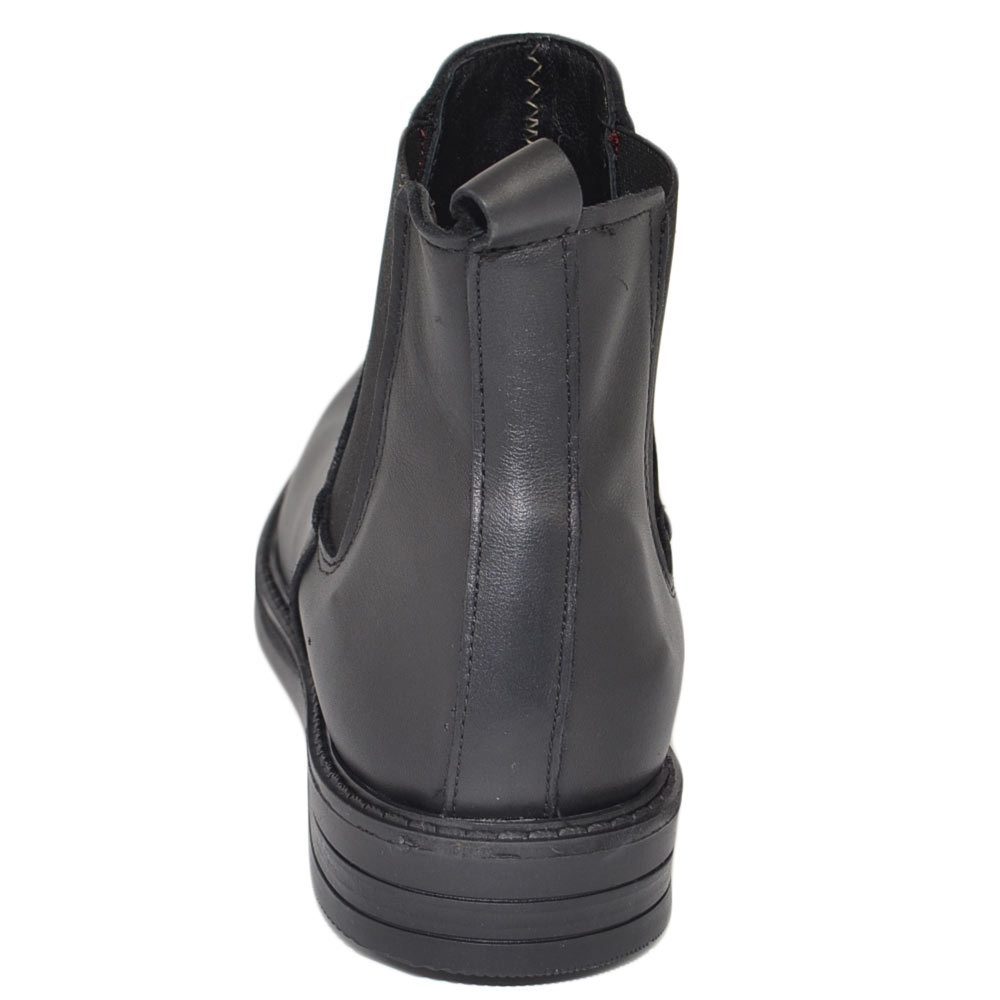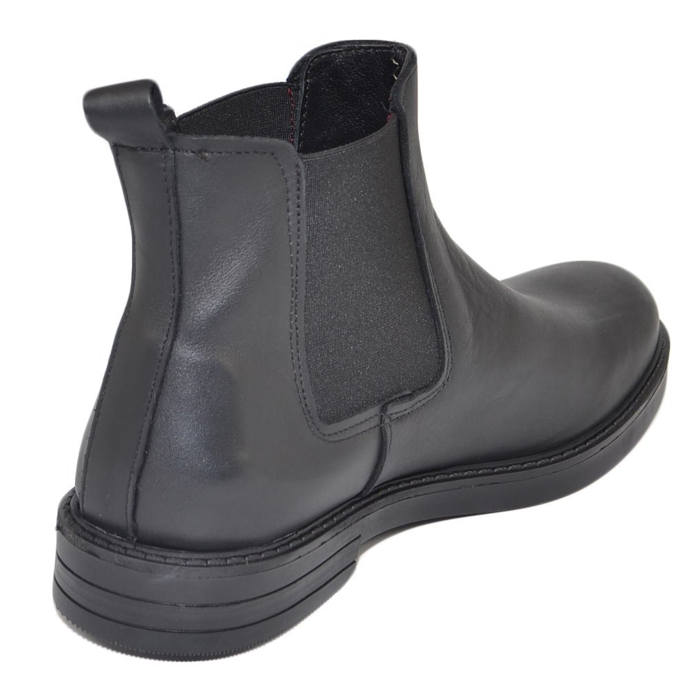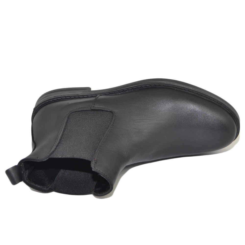 Scarpe beatles uomo stivaletto con elastico in vera pelle nero collo basso chelsea fondo gomma made in italy invernale