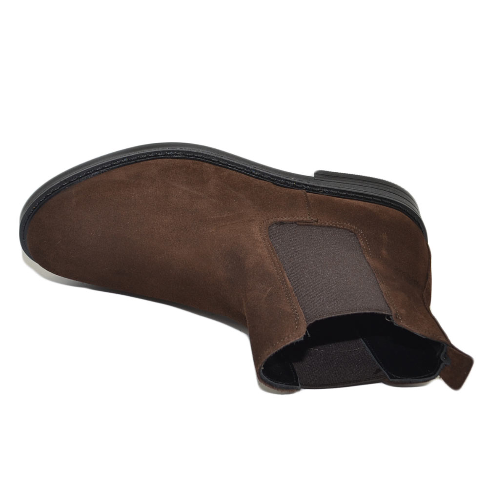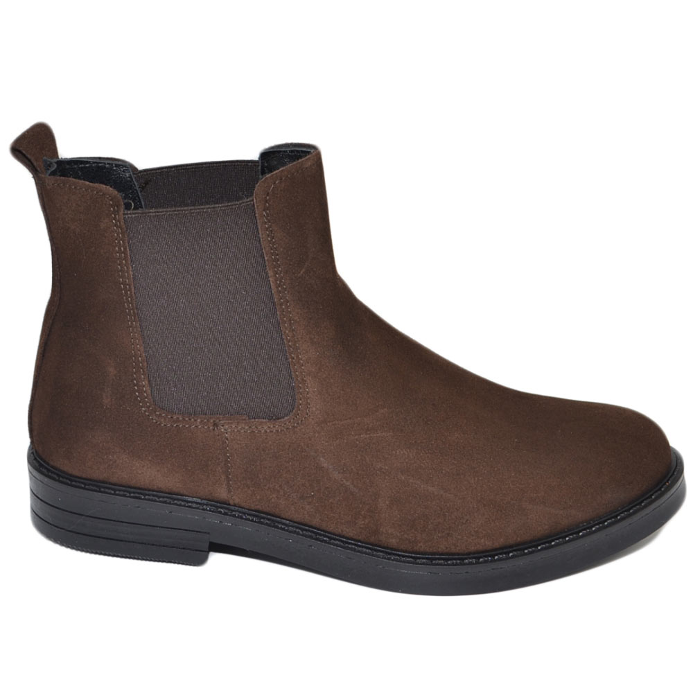Scarpe beatles uomo stivaletto elastico vera pelle camoscio marrone bruciato chelsea fondo gomma made in italy invernale