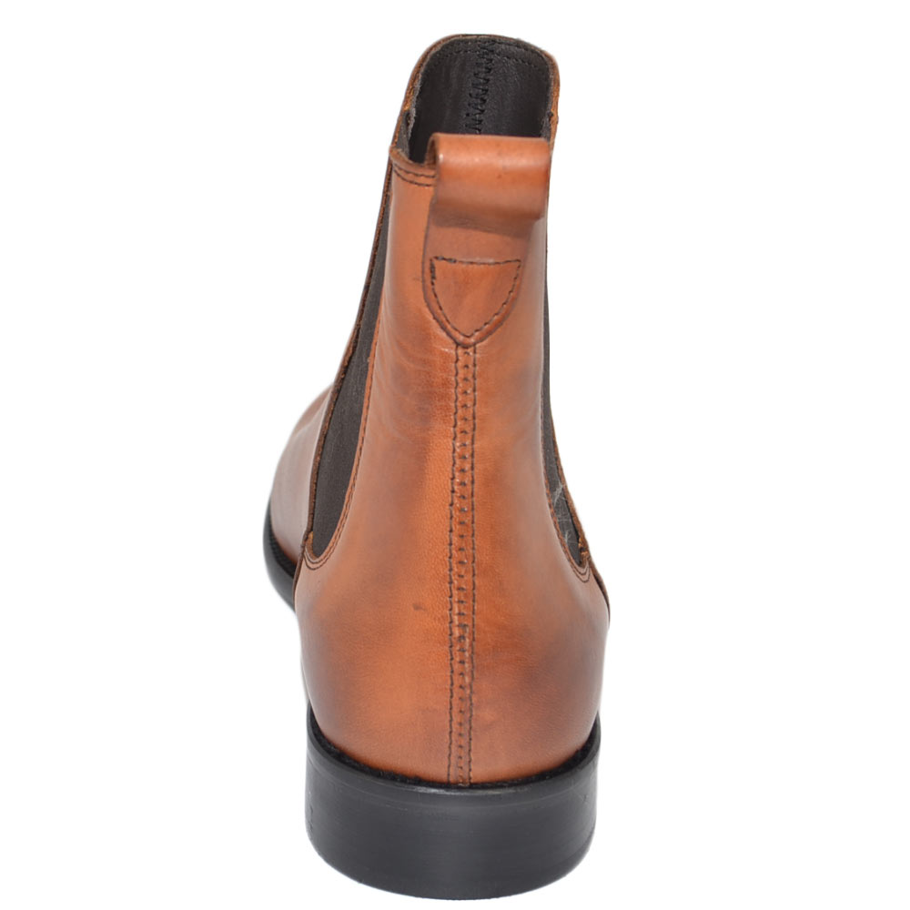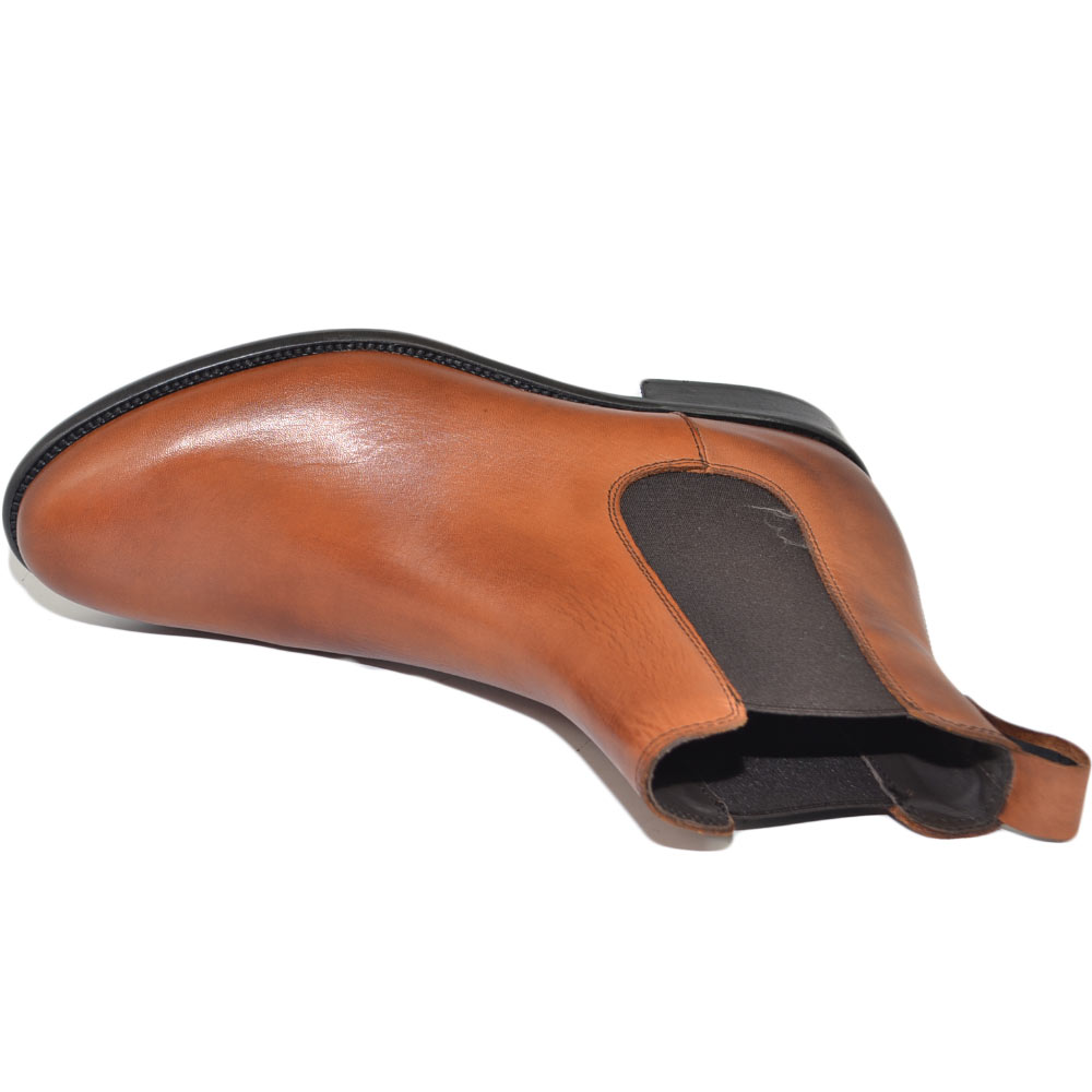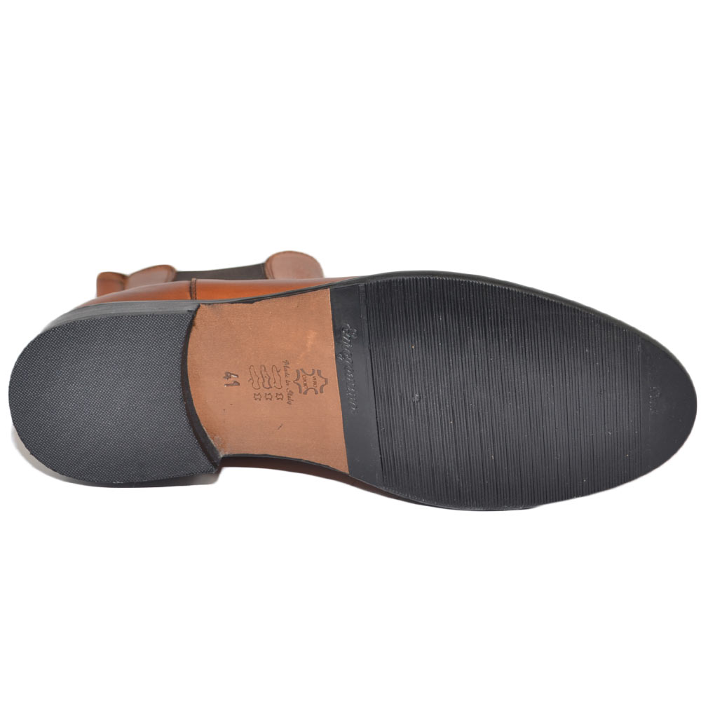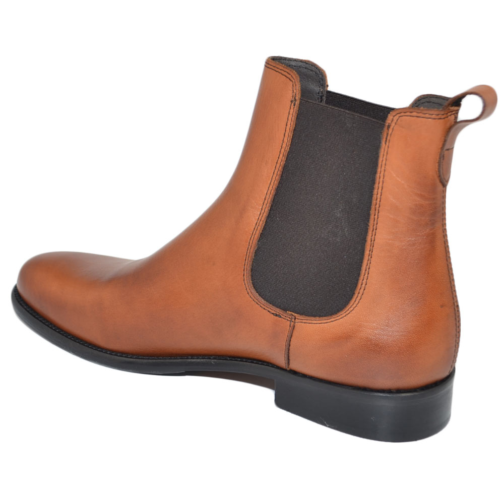 SCARPE UOMO BEATLES CHELSEA VERA PELLE COGNAC SPAZZOLATO CON FIBBIA ORO FONDO GOMMA INVERNALE MADE IN ITALY.