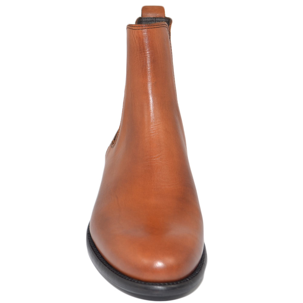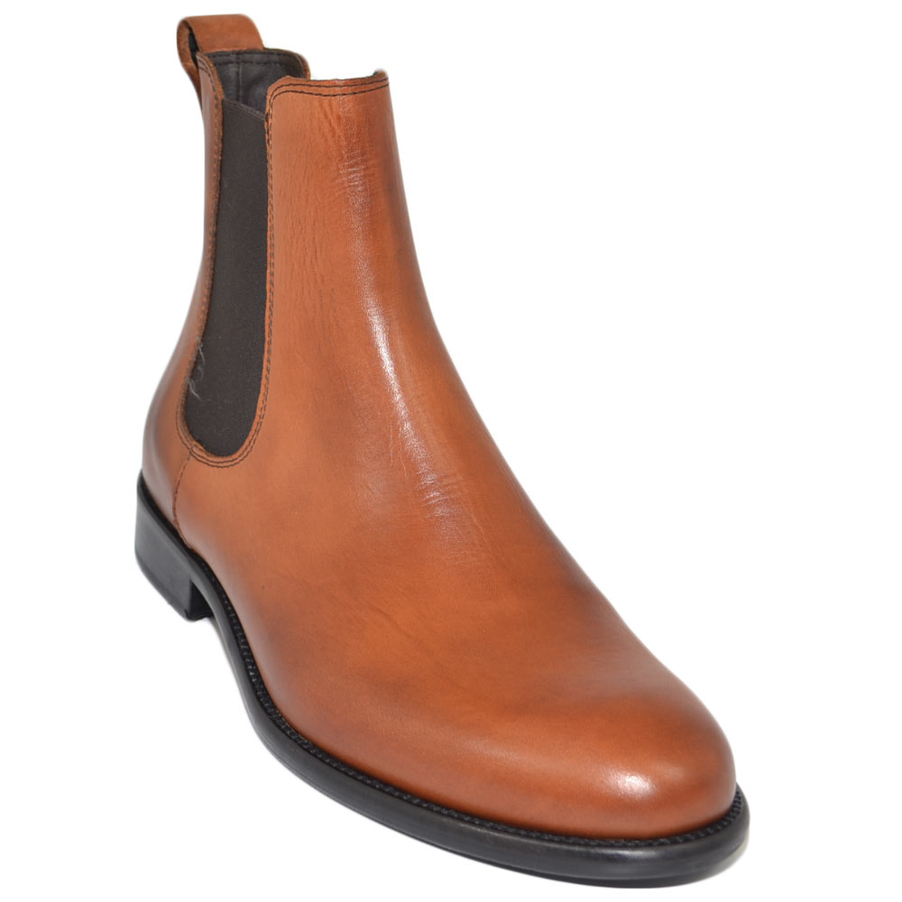 Beatles uomo stivaletto elastico vera pelle nappa marrone spazzolato collo alto suola vero cuoio made in italy handmade