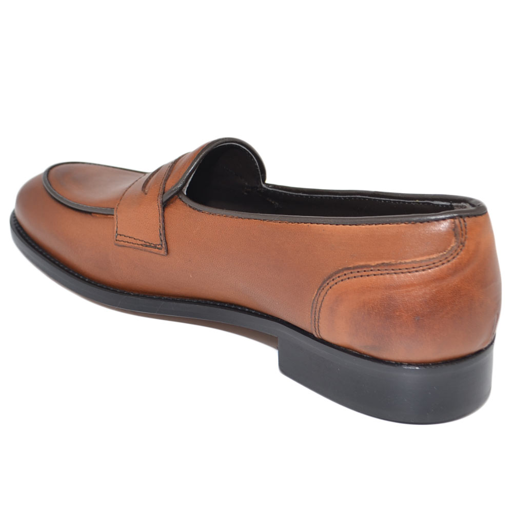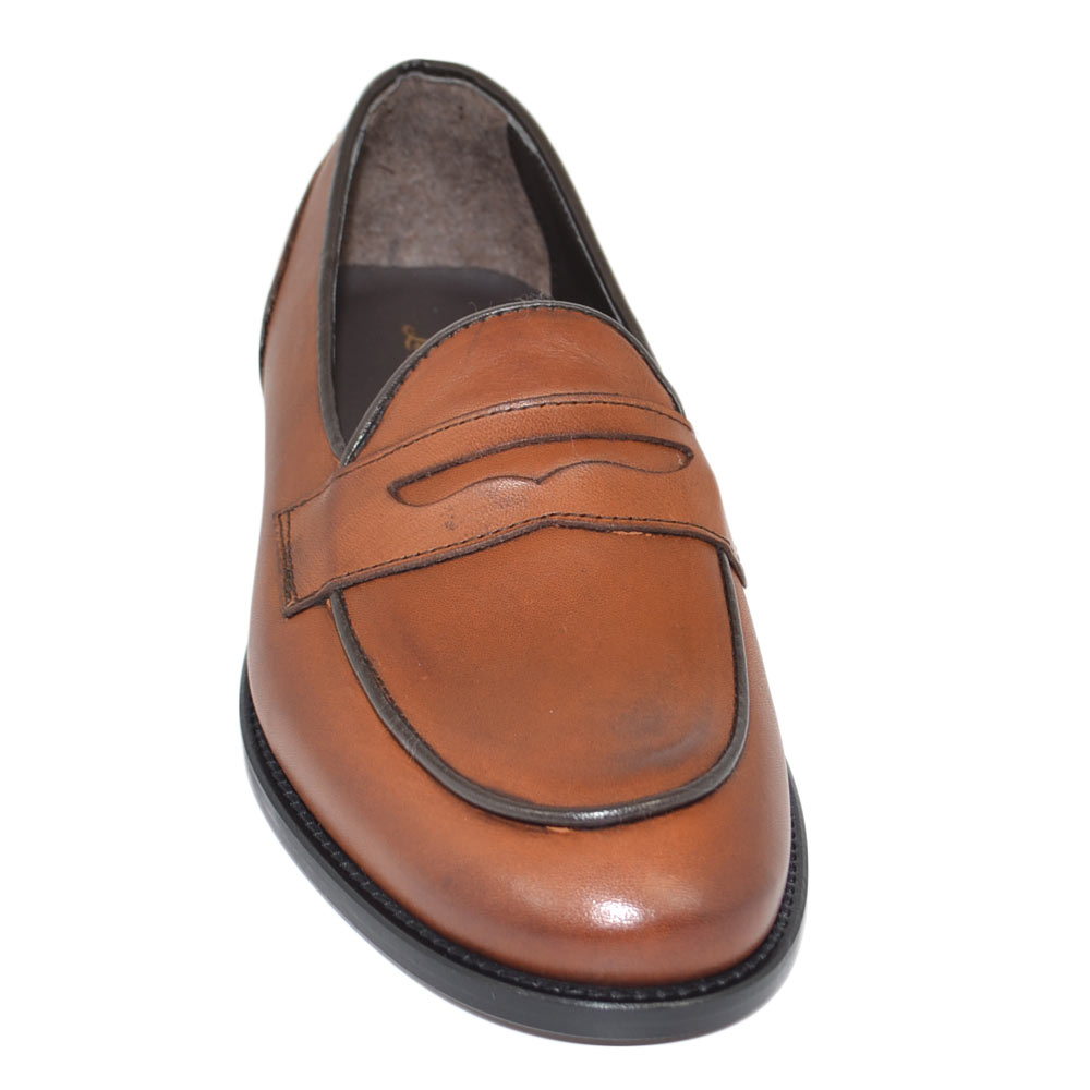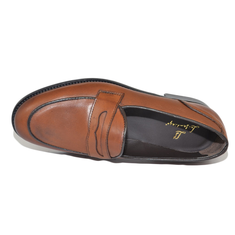 Mocassini LS Luisantiago in vera pelle di nappa quebracho con fondo cuoio ovalino e riferimenti college rivisitati dandy
