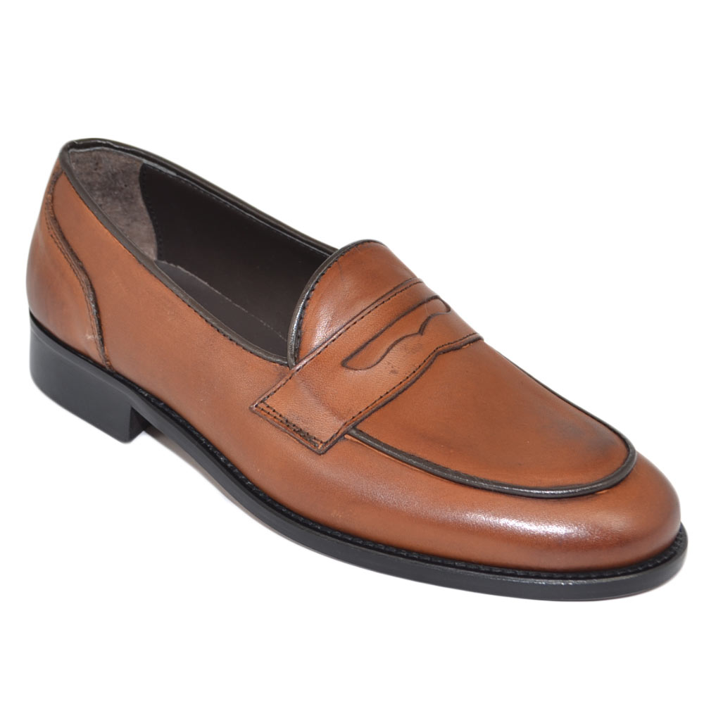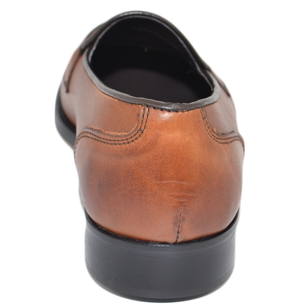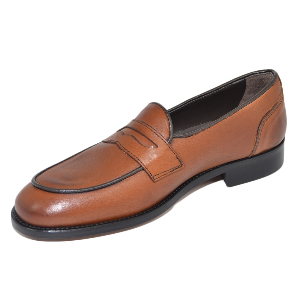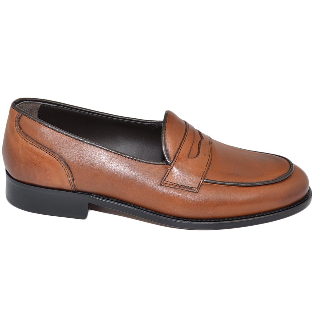 Mocassini LS Luisantiago in vera pelle di nappa quebracho con fondo cuoio ovalino e riferimenti college rivisitati dandy