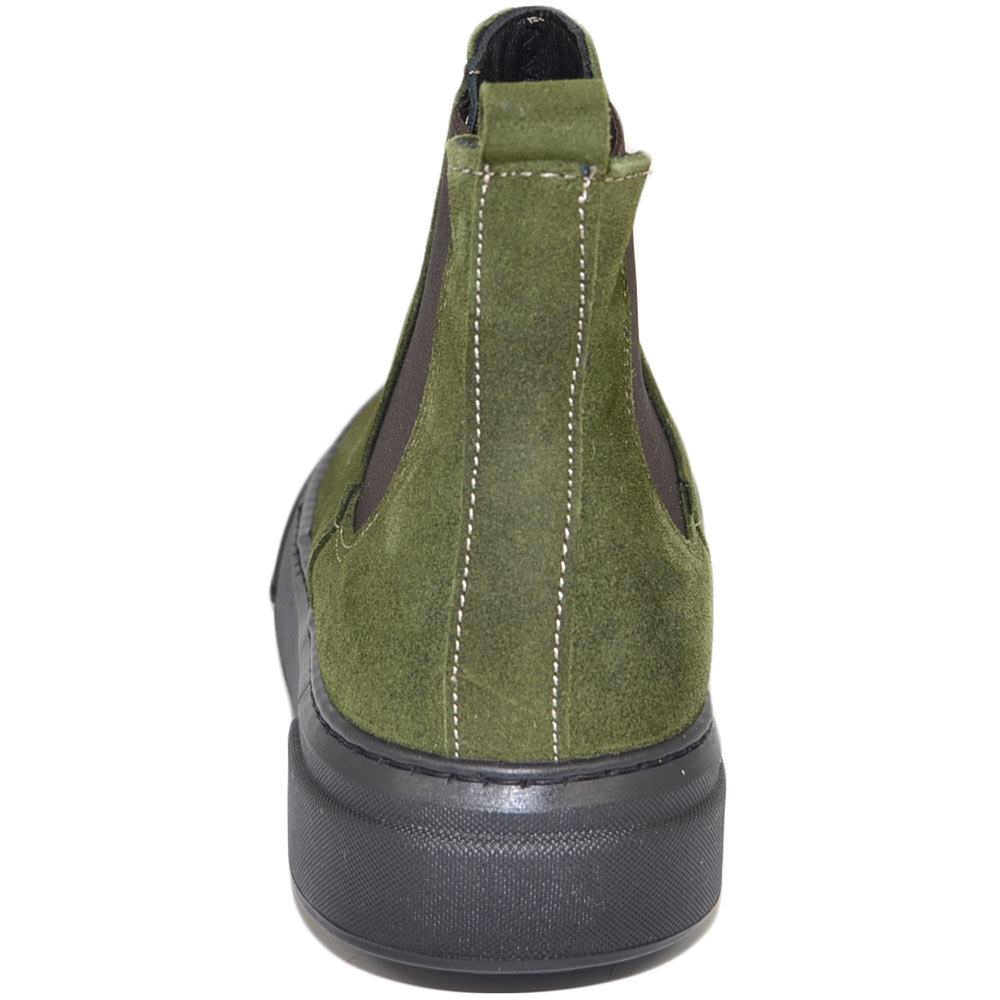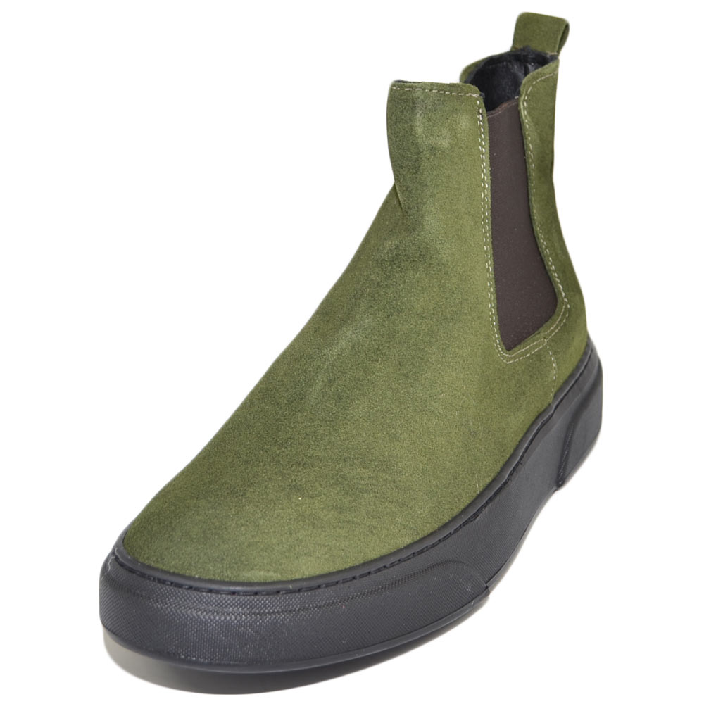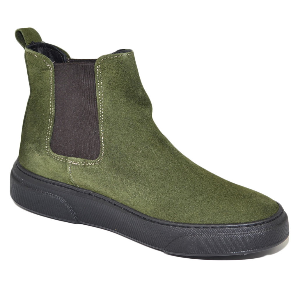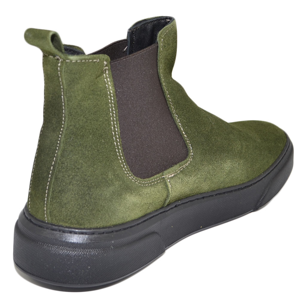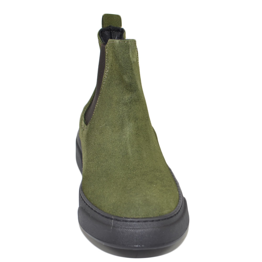 Beatles uomo stivaletto con elastico in vera pelle camoscio verde gomma nero sportiva casual made in italy handmade