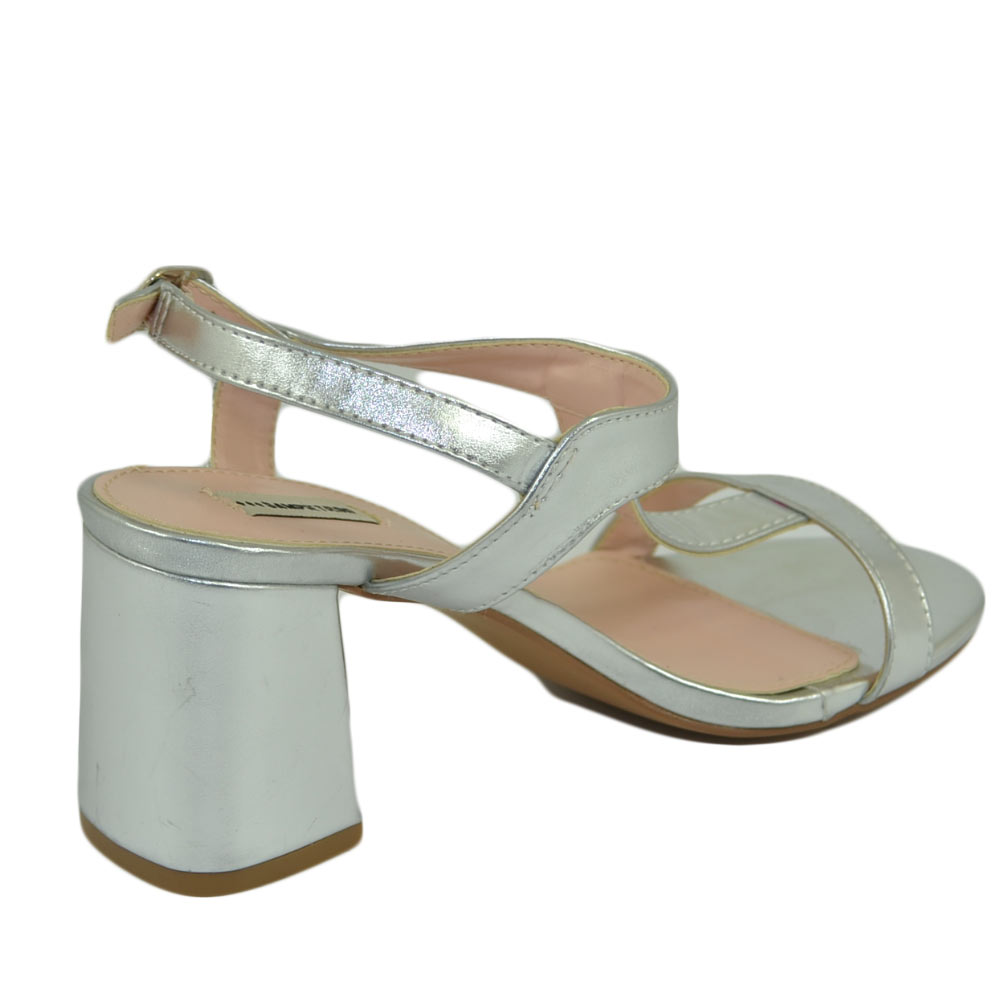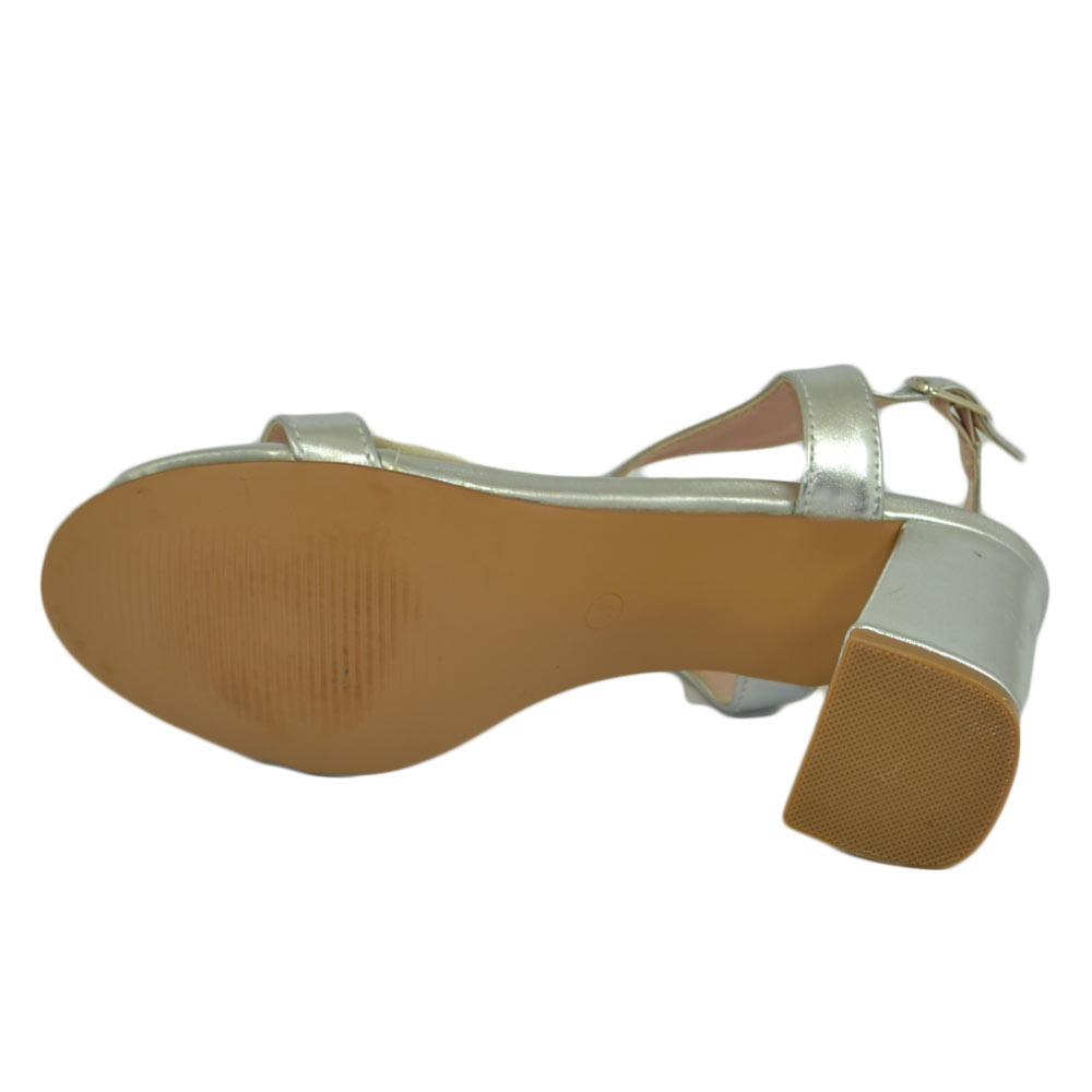 Sandali donna scarpe basic pelle ar4gento punta quadrata tacco basso 5 cm quadrato cinturino a T comodo cerimonia