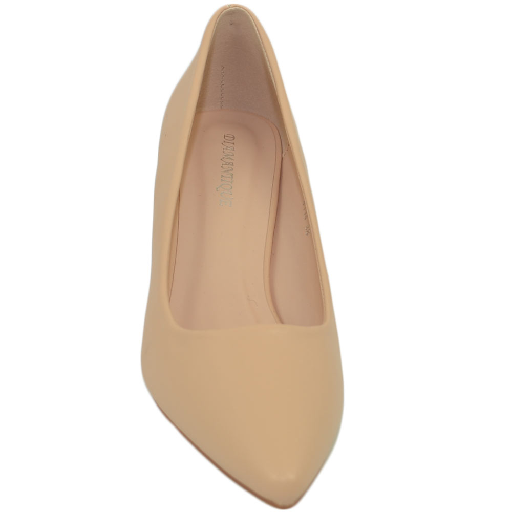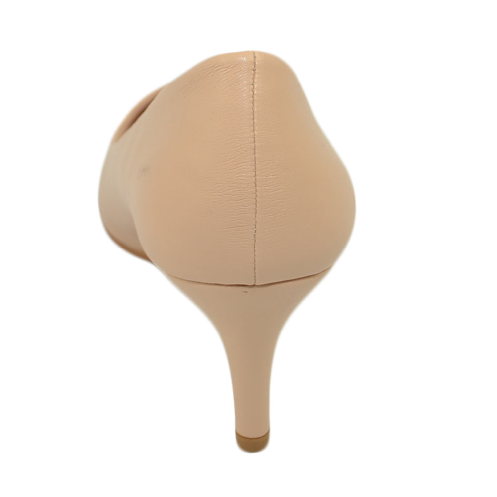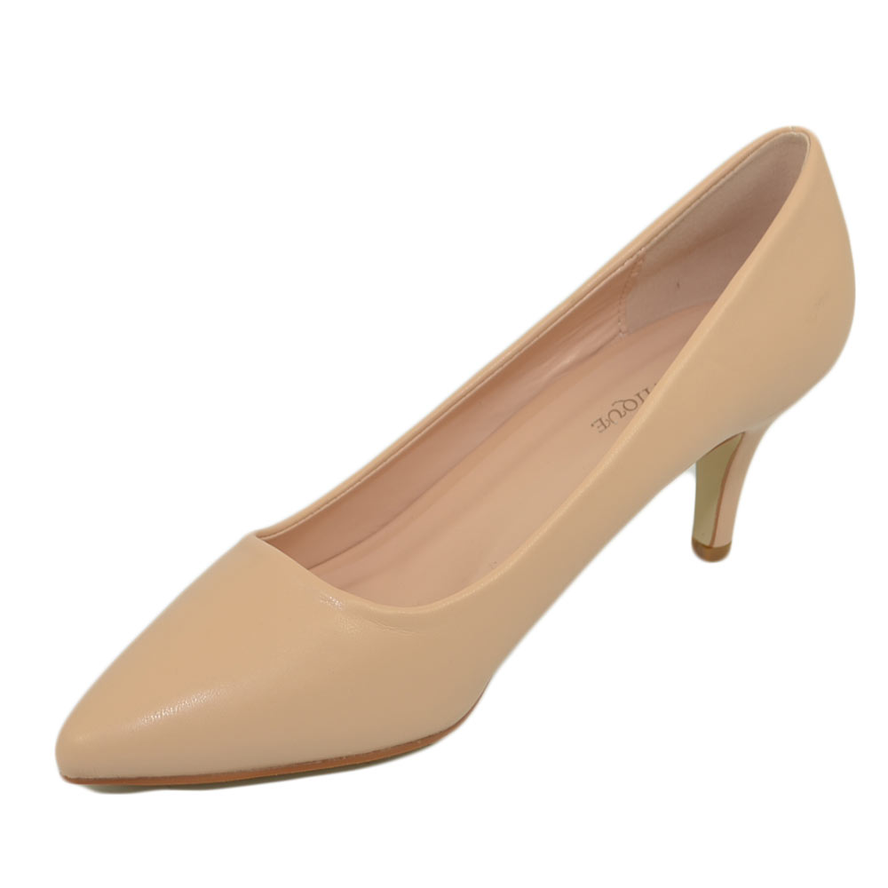 Decollete' scarpe donna a punta nude tacco a spillo midi 5 cm in pelle matte comodo per cerimonie eventi ufficio