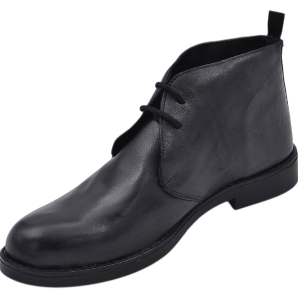Polacchino uomo in vera pelle abrasivata nera alla caviglia comfort gomma sottile 2cm professionista handmade in italy