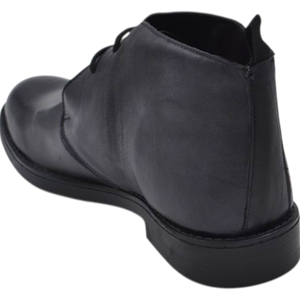 Polacchino uomo in vera pelle abrasivato nero caviglia comfort gomma sottile da professionista handmade in italy.
