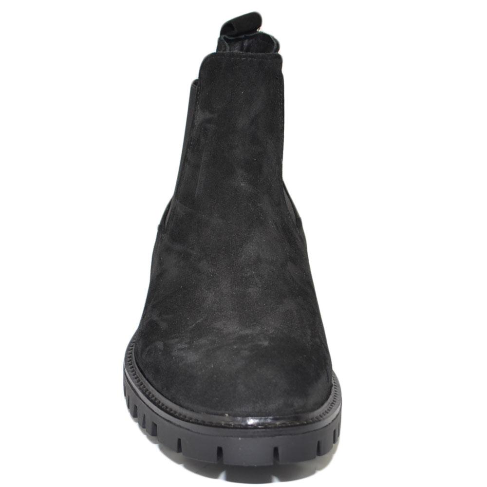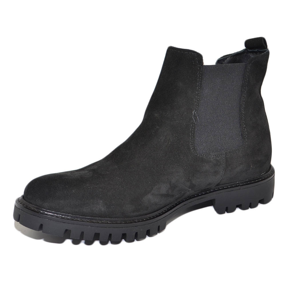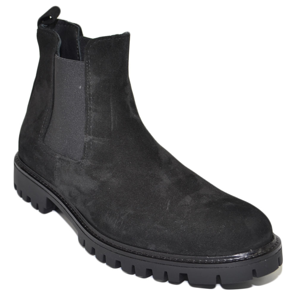 Beatles uomo stivaletto con elastico in vera pelle scamosciato nero suola in gomma ultraleggera casual made in italy.