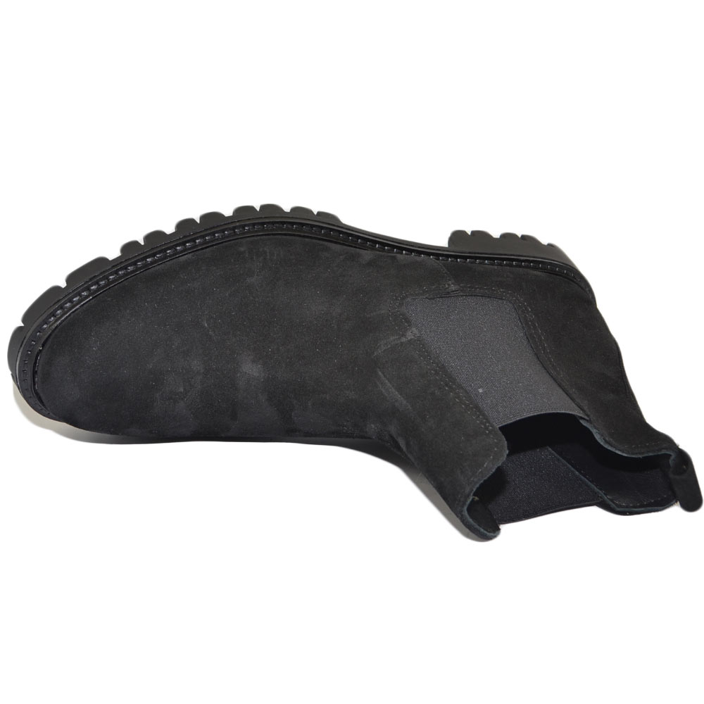 Beatles uomo stivaletto elastico vera pelle scamosciata nero suola roccia zigrinata casual made in italy handmade