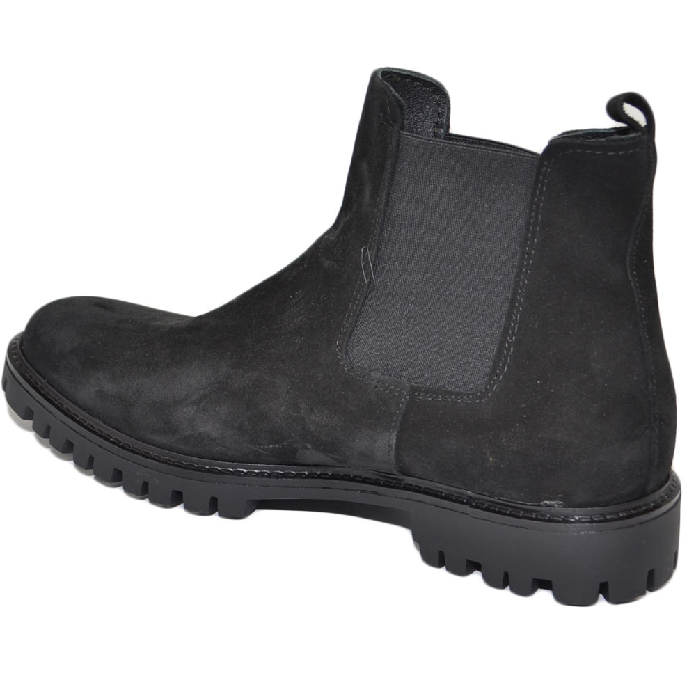 Beatles uomo stivaletto LS elastico vera pelle scamosciata nero suola alta zigrinata Luxury made in italy.