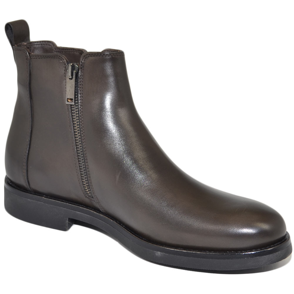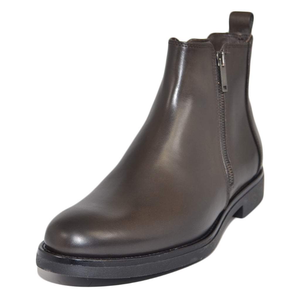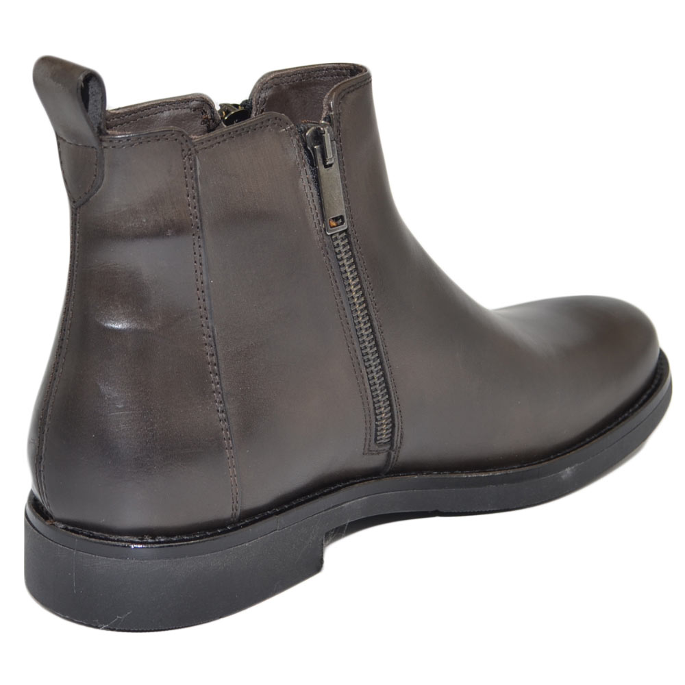 SCARPE UOMO BEATLES CHELSEA VERA PELLE TESTA DI MORO MARRONE CON ZIP FONDO GOMMA INVERNALE ANTISCIVOLO MADE IN ITALY
