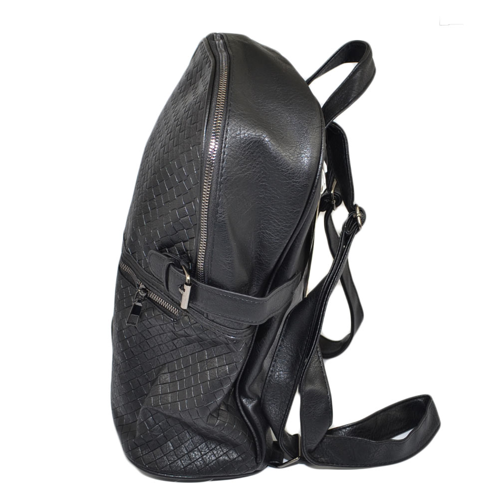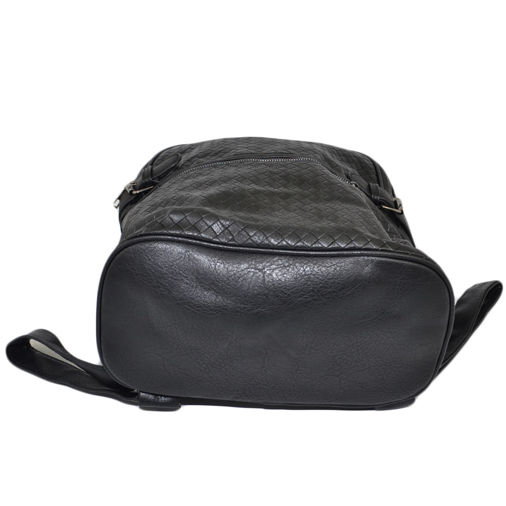 Zaino nero casual uomo borsa medio grande 13 pollici laptop portatile pu pelle zip fantasia intrecciata capiente comodo