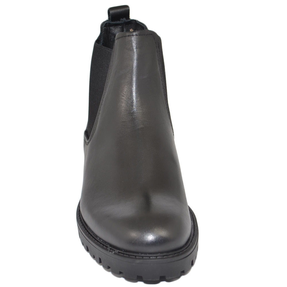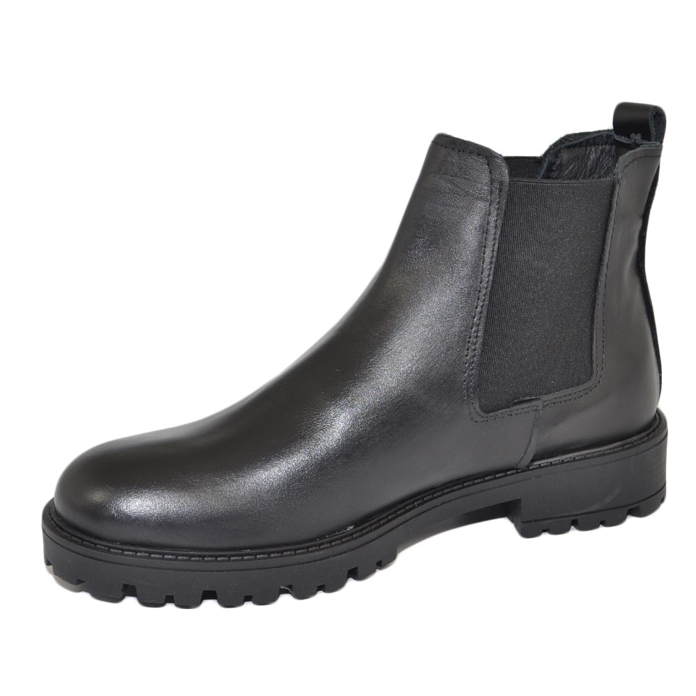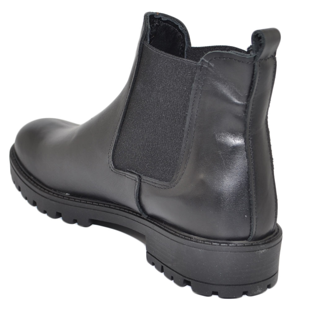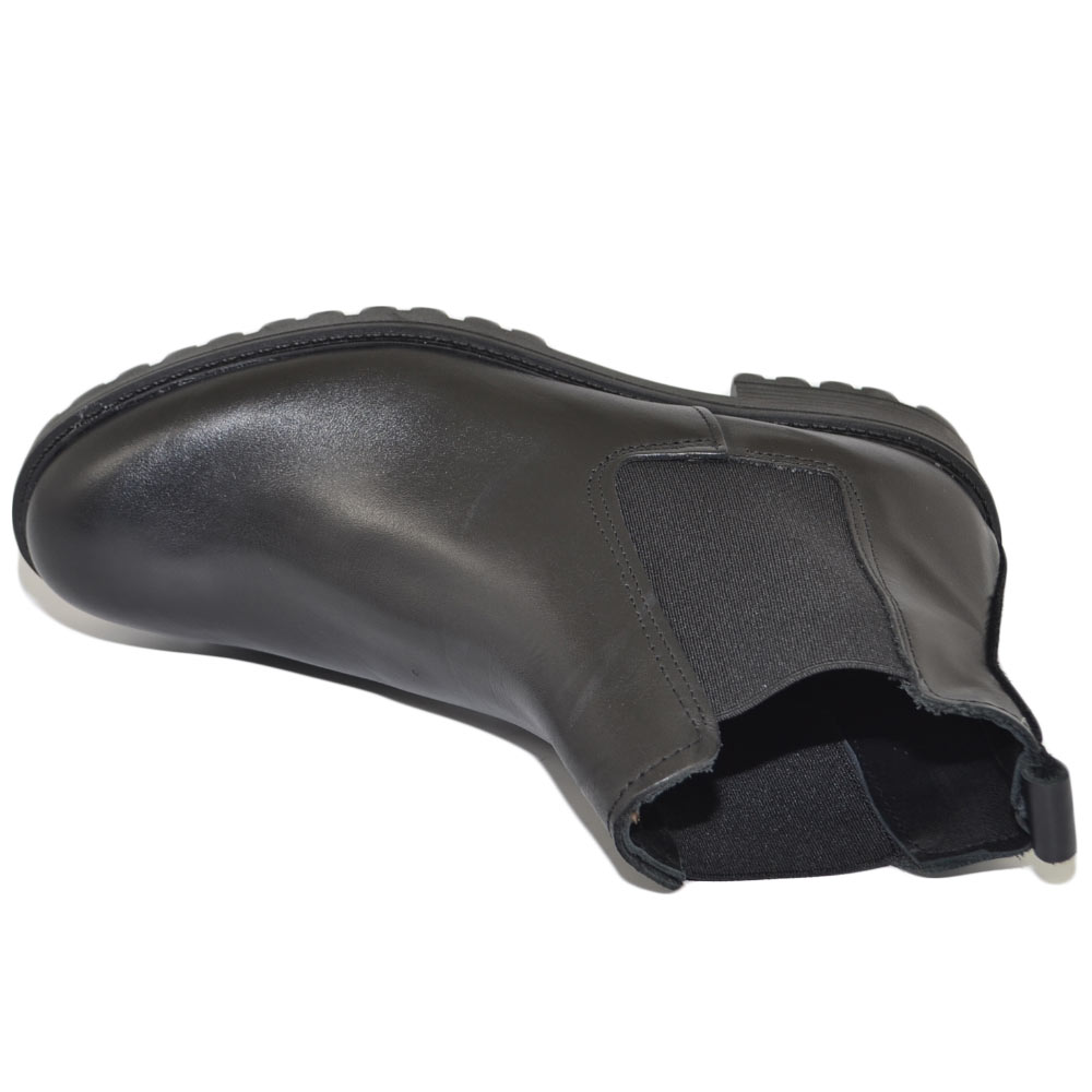 Beatles uomo stivaletto con elastico in vera pelle nera collo basso liscio fondo roccia made in italy handmade.