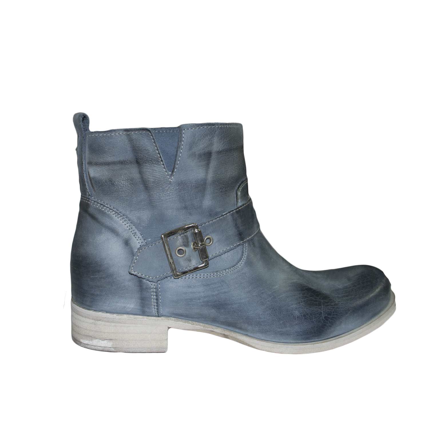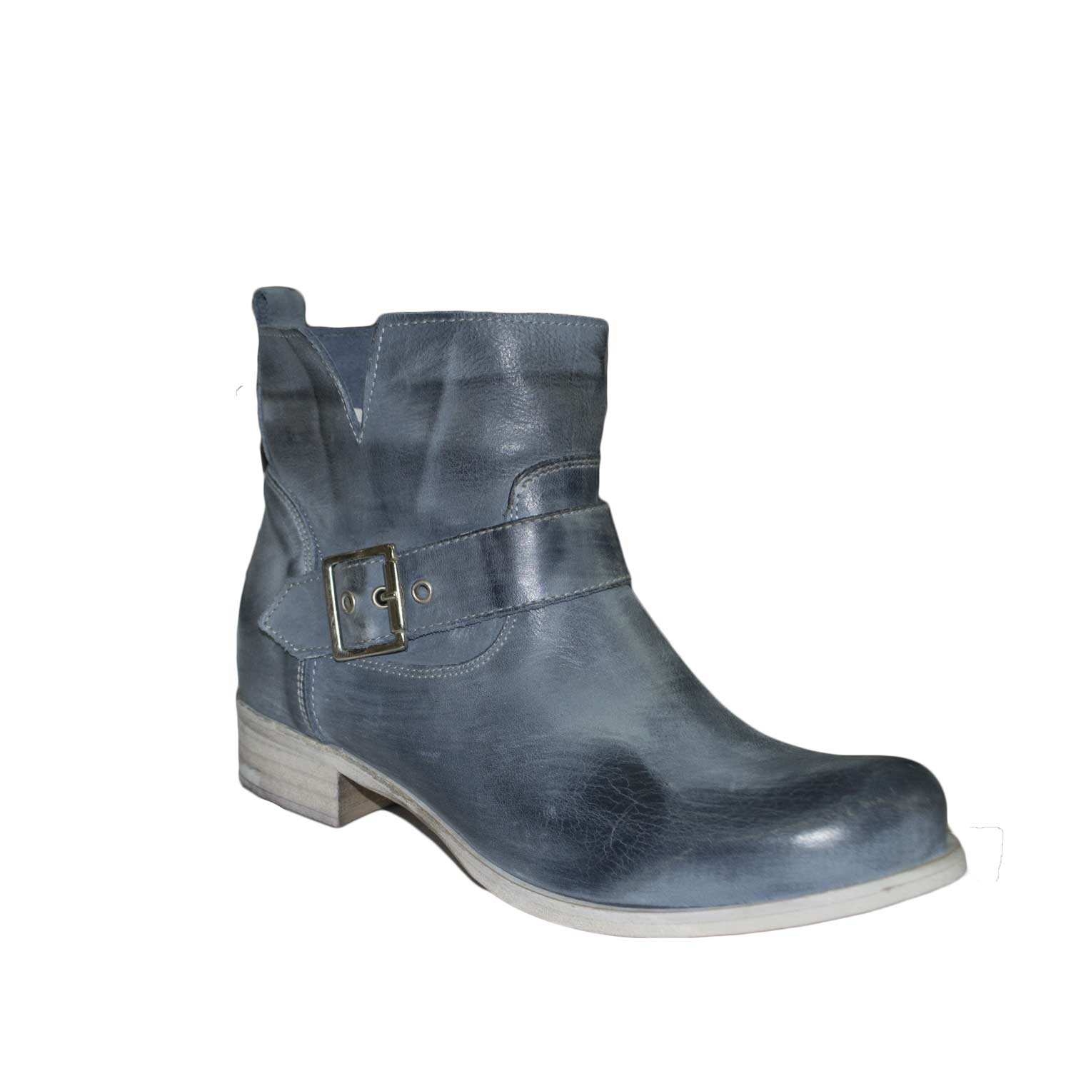 Stivaletto donna basso estivo cuoio forato con zip dorata fondo in gomma light bianco comodo moda .