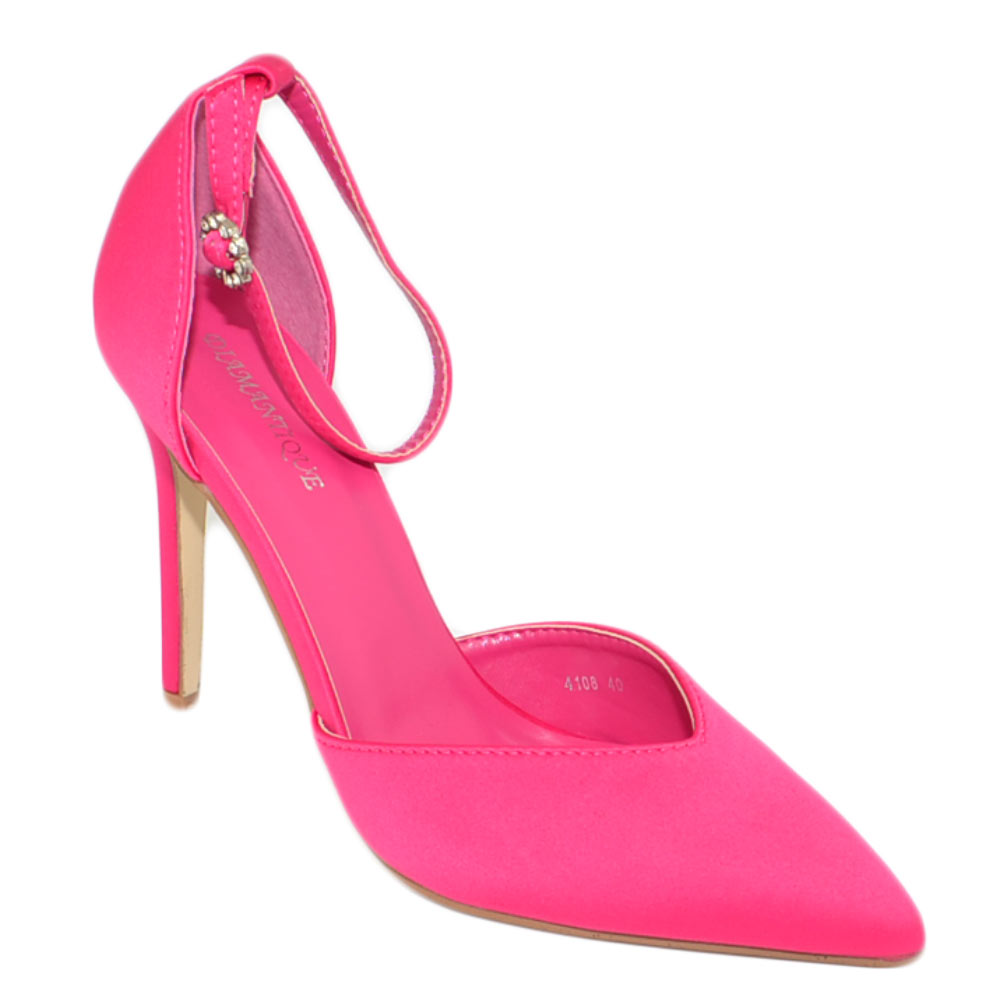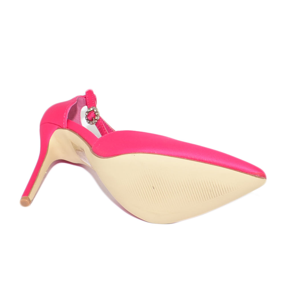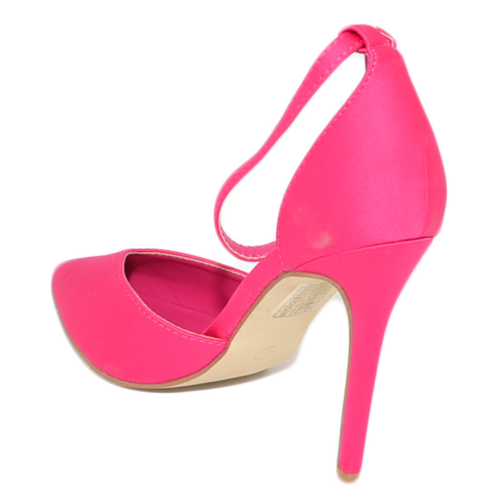 Scarpe decollete donna elegante punta raso fucsia intenso tacco 10 spillo comodo moda cinturino caviglia cerimonia