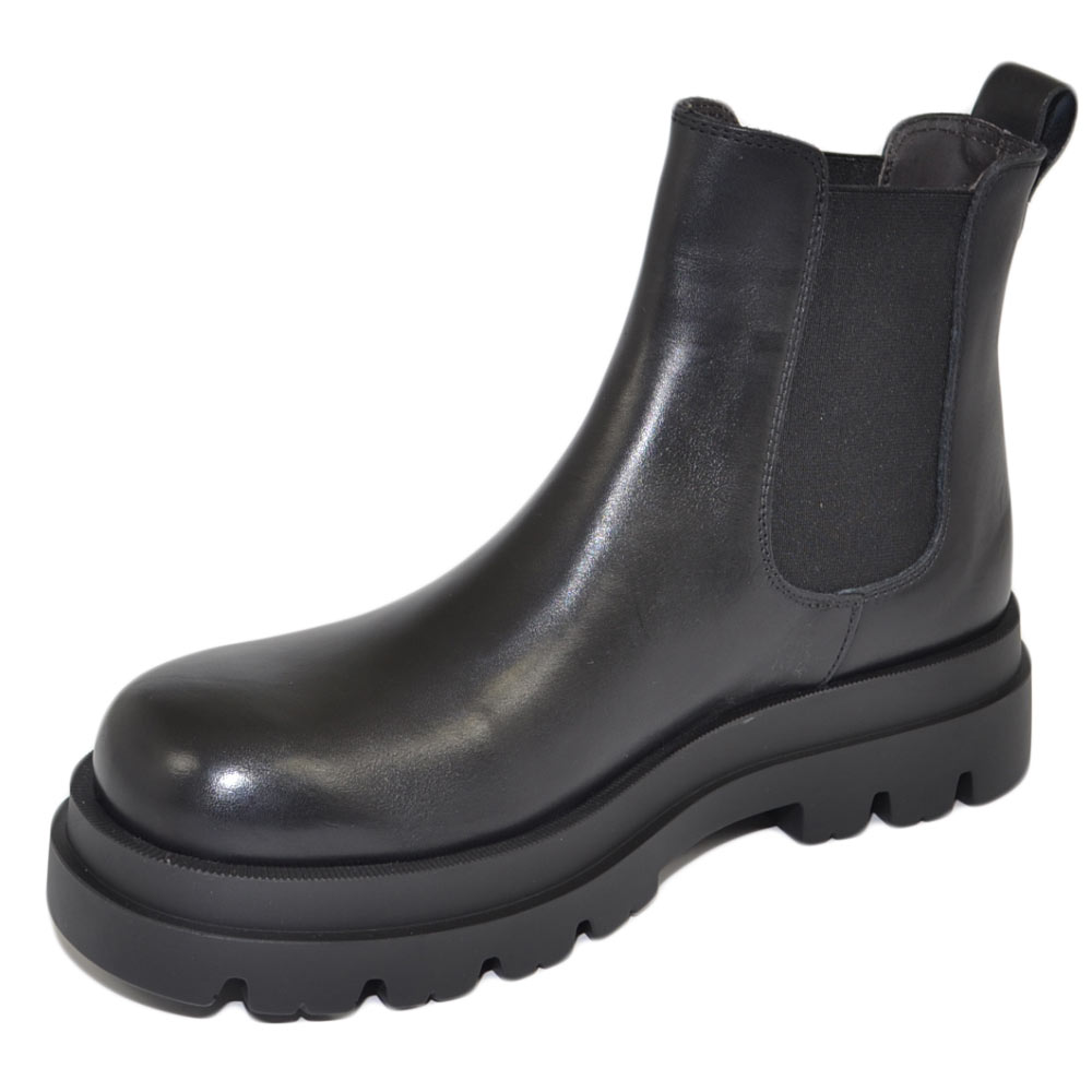 Beatles uomo stivaletto ls elastico vera pelle di nappa spazzolato nero suola alta zigrinata luxury made in italy.