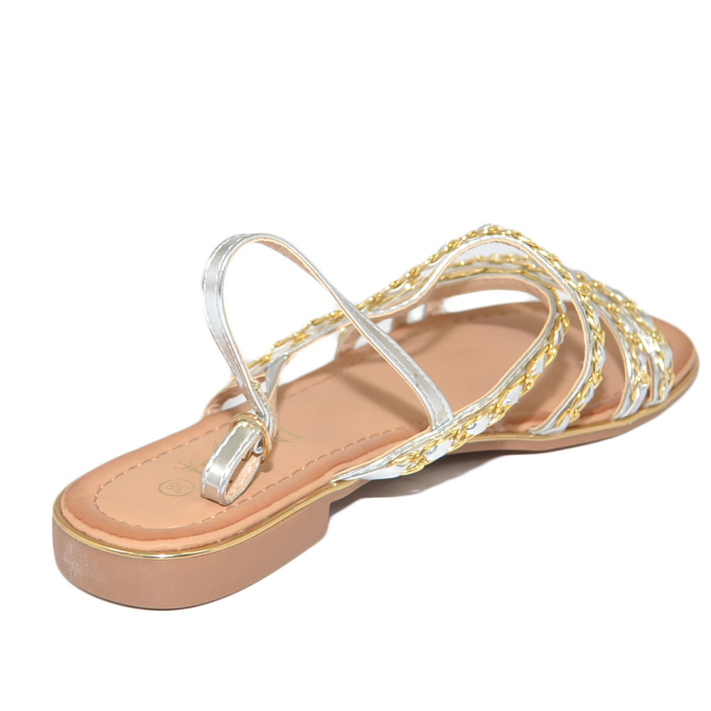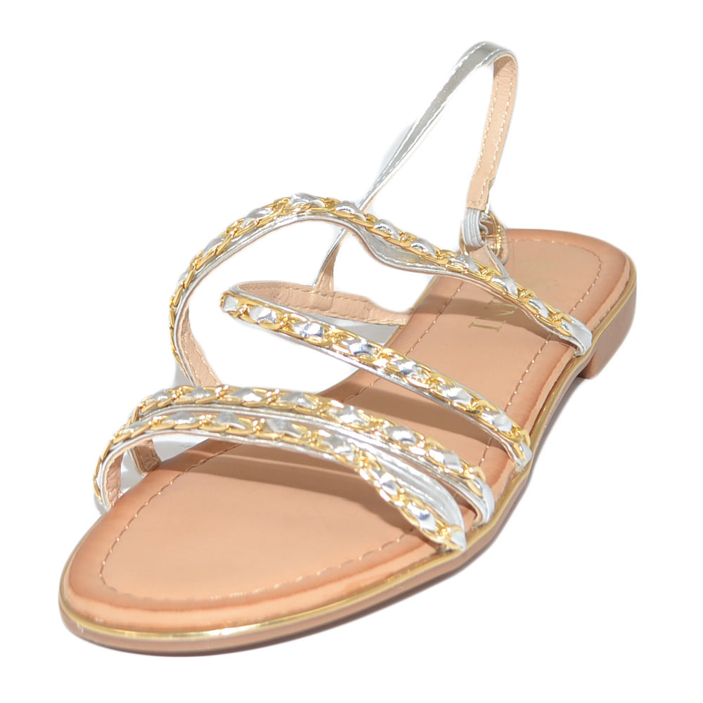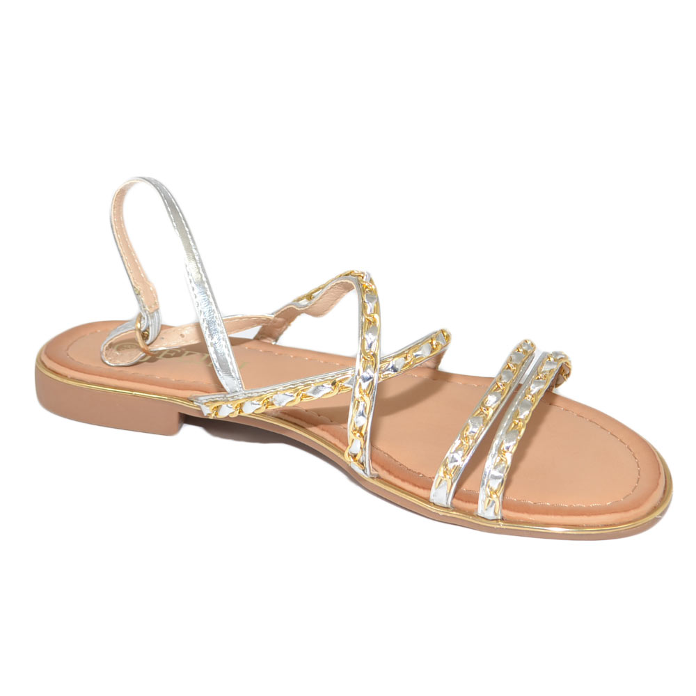 Sandalo basso positano donna fascetta con catena oro incrociata argento cinturino caviglia antiscivolo linea basic