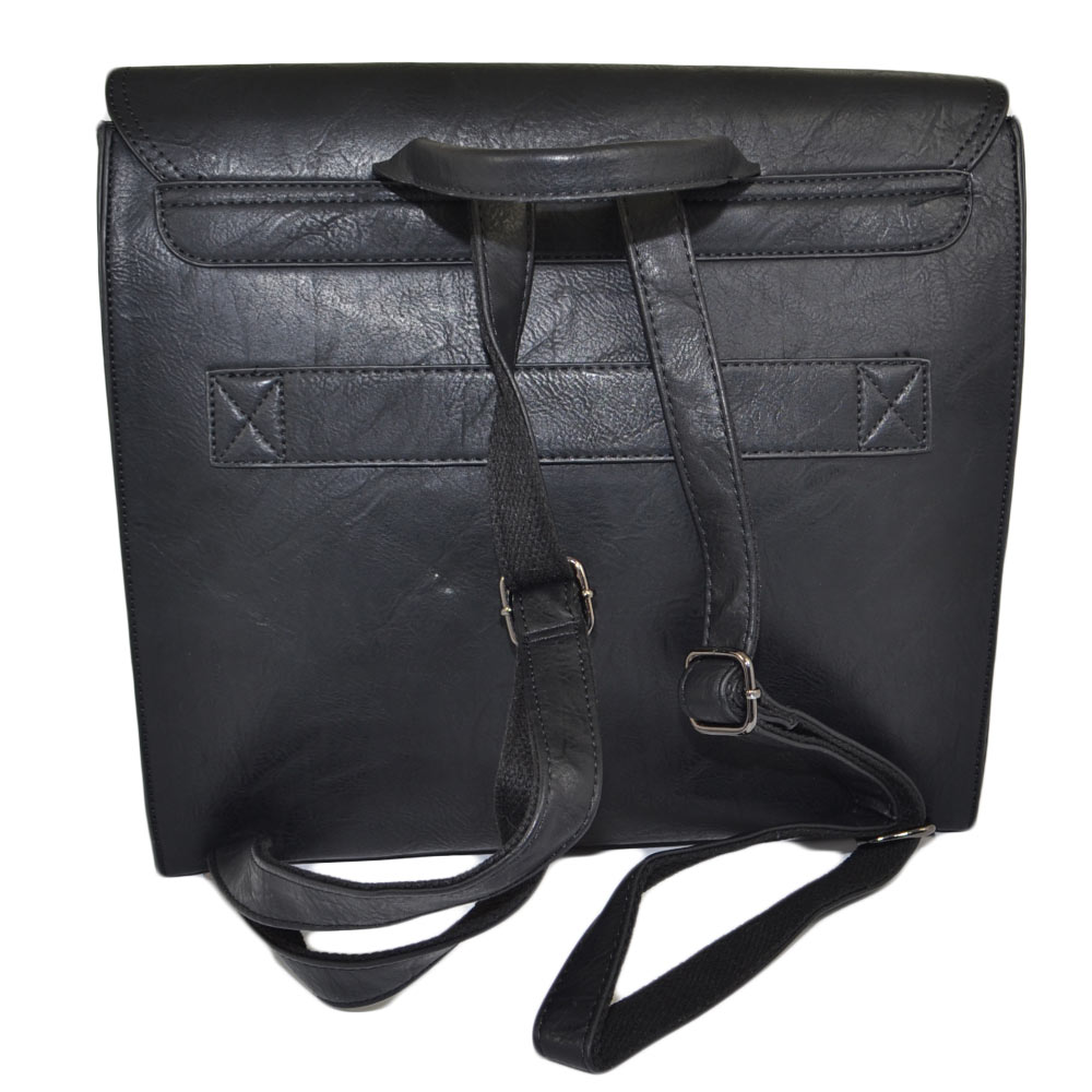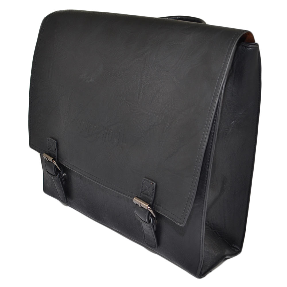 ZAINO UOMO NERO CARTELLA CON FIBBIE REGOLABILI ZAINO DA LAVORO MEDIO GRANDE RETTANGOLARE 13 POLLICI LAPTOP PORTATILE PU .